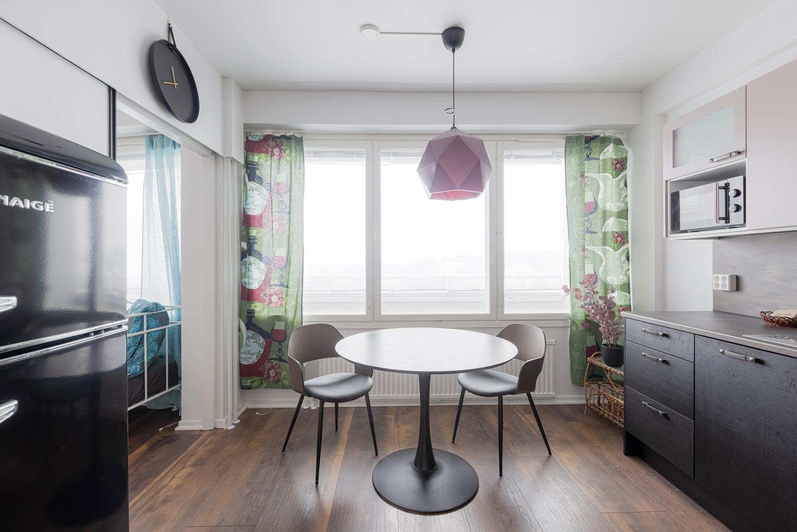 - Jenkkikaappi, erillisuuni, liesitaso, mikroaaltouuni, astianpesukone. Keittiö uusittu 2024.
