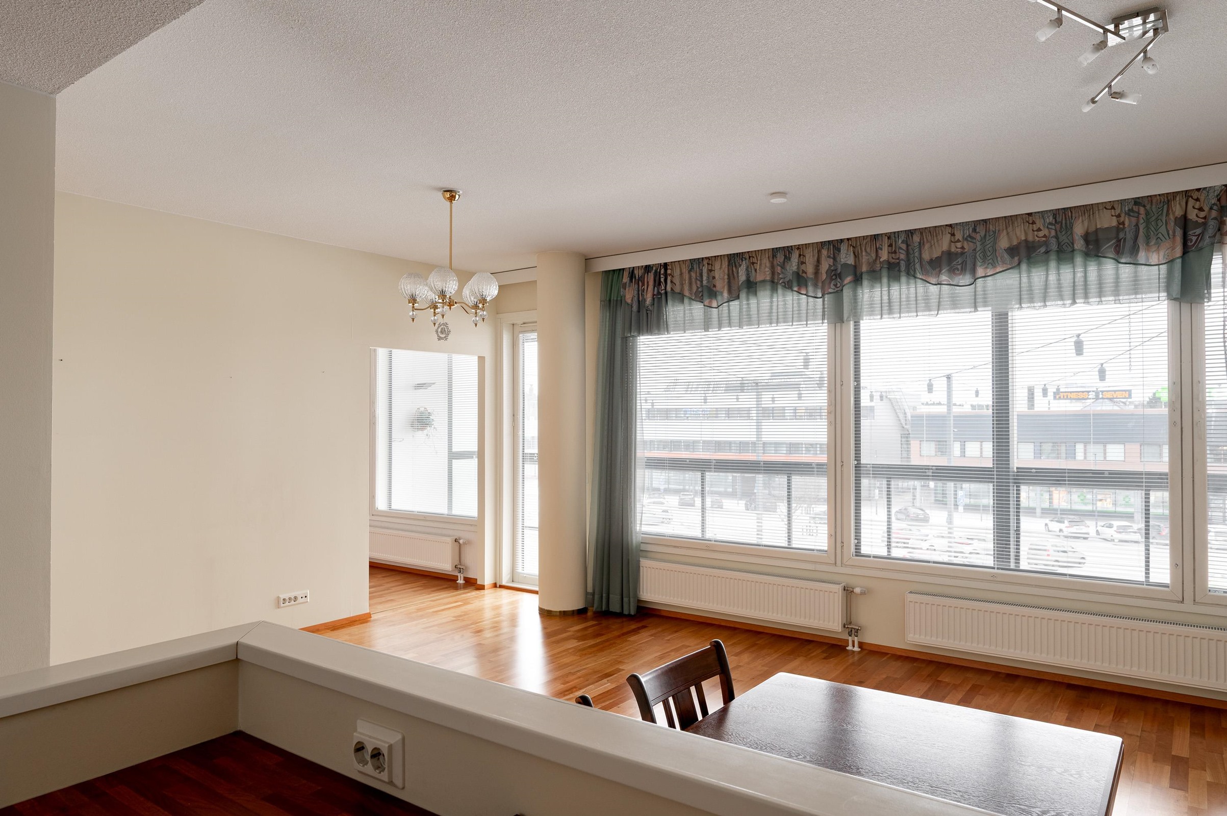 Kaupungin keskustan sydämessä sijaitseva kahden huoneen koti etsii uusia asukkaita. Kodin tiloina avokeittiö ja olohuone, josta käynti isolle lasitetulle terassiparvekkeelle, kylpyhuone/wc ja sauna, sekä makuuhuone, jossa säilytyskaapistot ja vaatehuone.