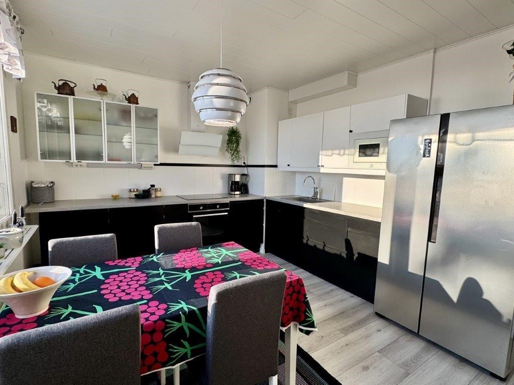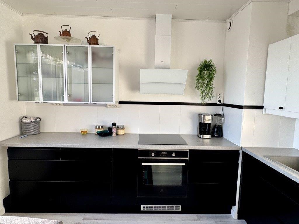 - Jääkaappi, pakastekaappi, erillisuuni, liesitaso, liesituuletin, mikroaaltouuni intekroitu, kiinteät valaisimet.