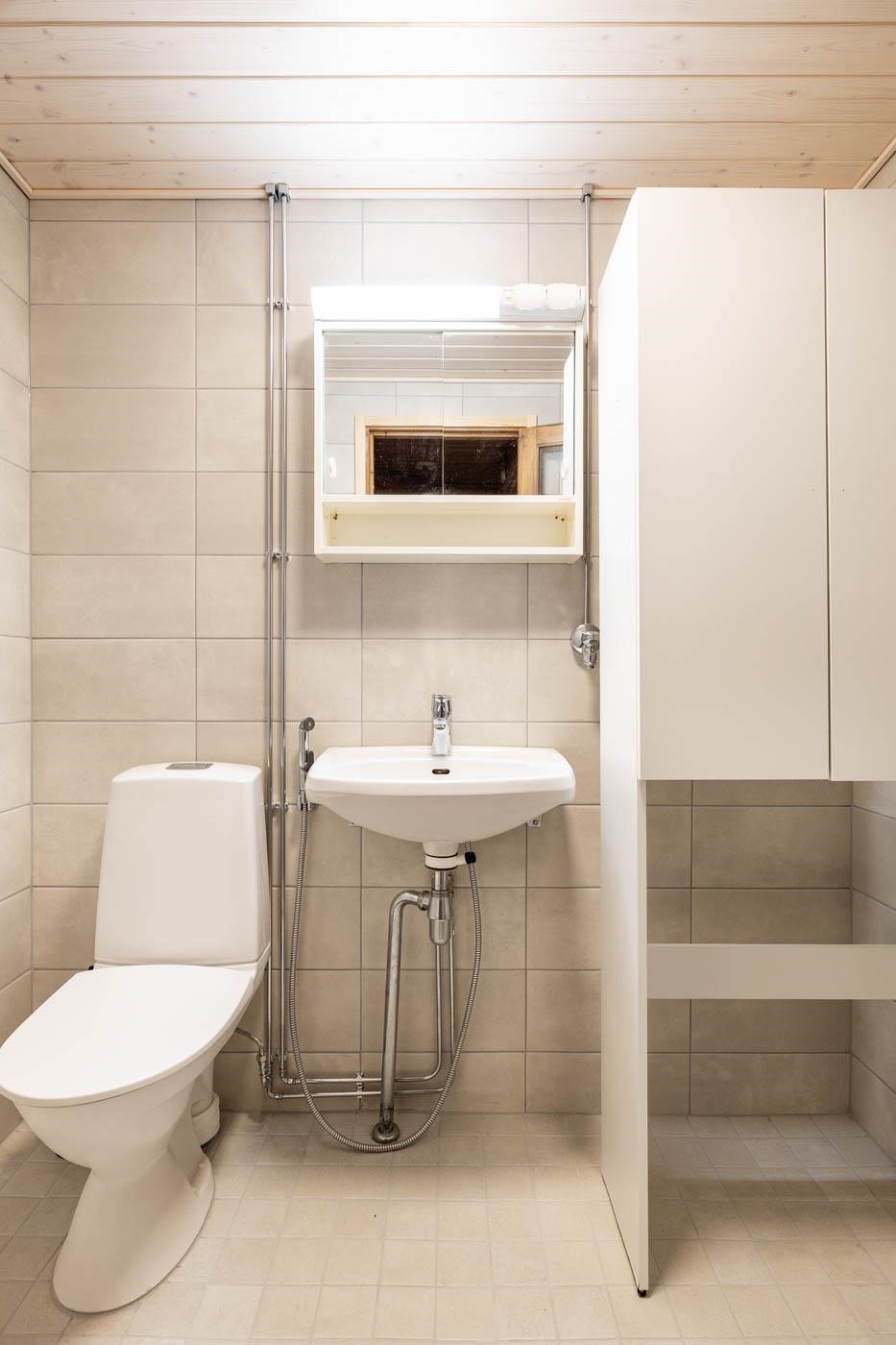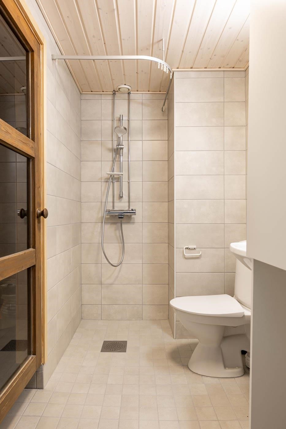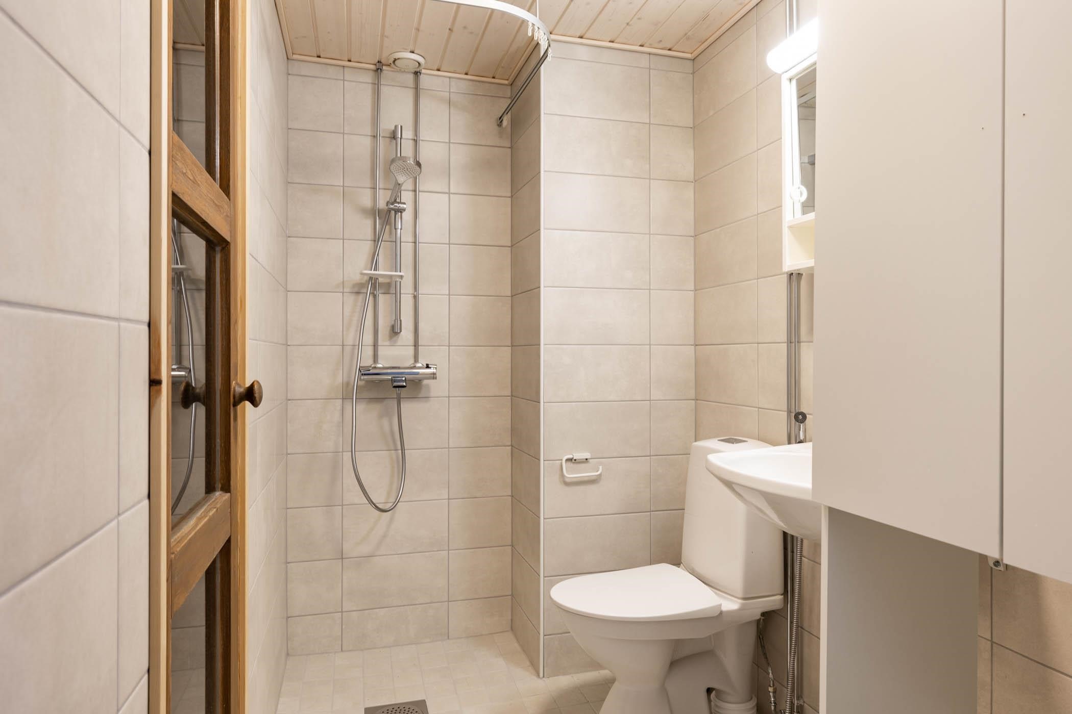 - Sauna, sähkökiuas v.2022, kylpyhuone, suihku, peilikaappi, pesukoneliitäntä, lattialämmitys kulutus huoneiston sähkömittariin, kiinteät valaisimet. Kylpyhuone uusittu 10/2025 (osa kalusteista uusittiin samalla) Kylpyhuone laatoitettu