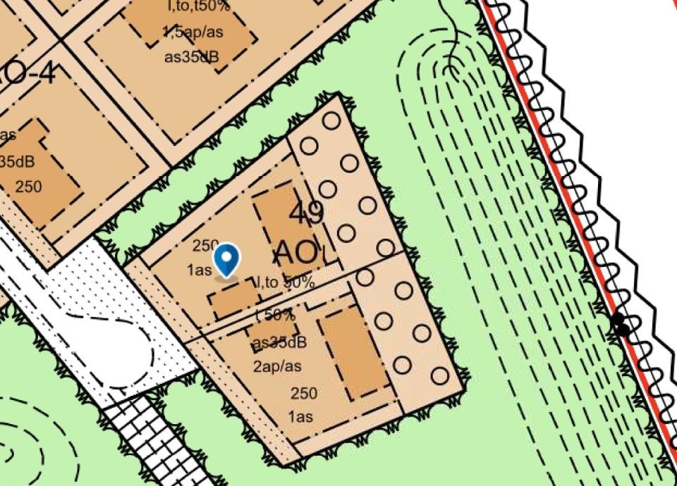 - Alue on kaavamerkinnällä AO, erillispientalojen korttelialue. Tontille voidaan rakentaa yhden asunnon rakennus (asemakaavan muutos 10.6.2008). Kiinteistöllä on kaavassa merkintä I, to 50 %. Merkintä tarkoittaa, että 50 % sallitusta kerrosalasta saadaan käyttää liike- ja toimistotiloja varten. Tontteja koskee melumääräys, jonka mukaan rakennusten ääneneristävyyden liikennemelua vastaan tulee olla vähintään 35 dB.