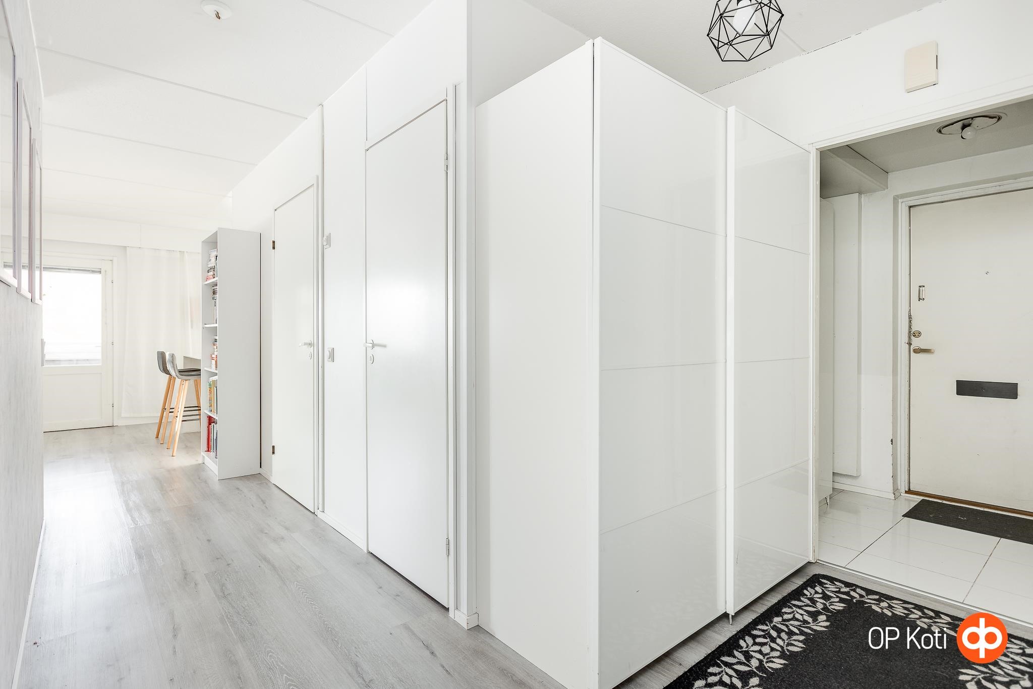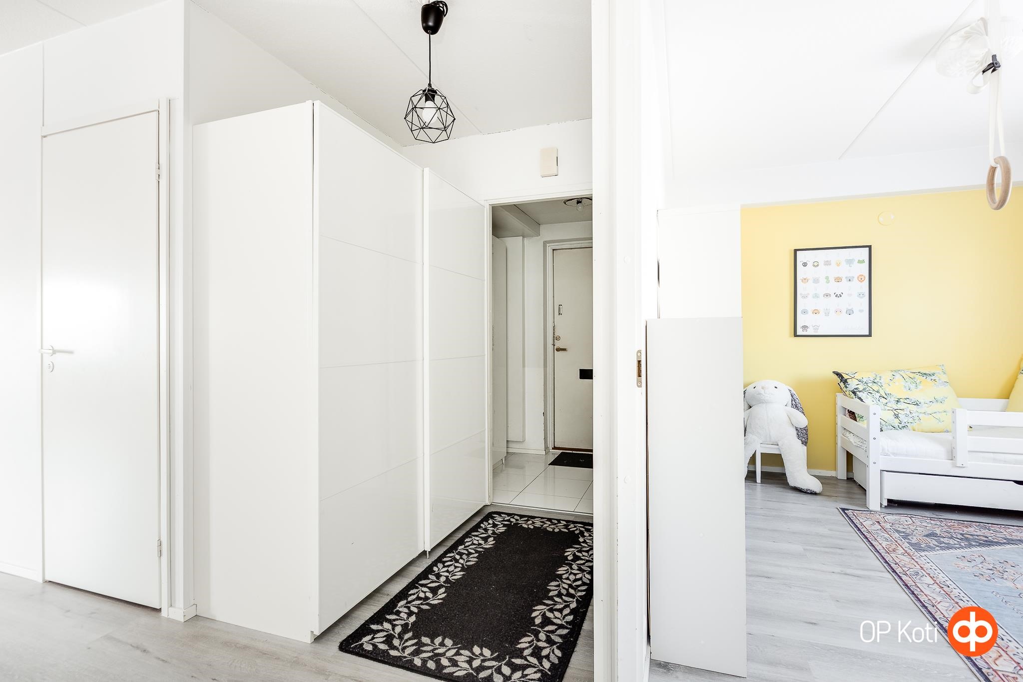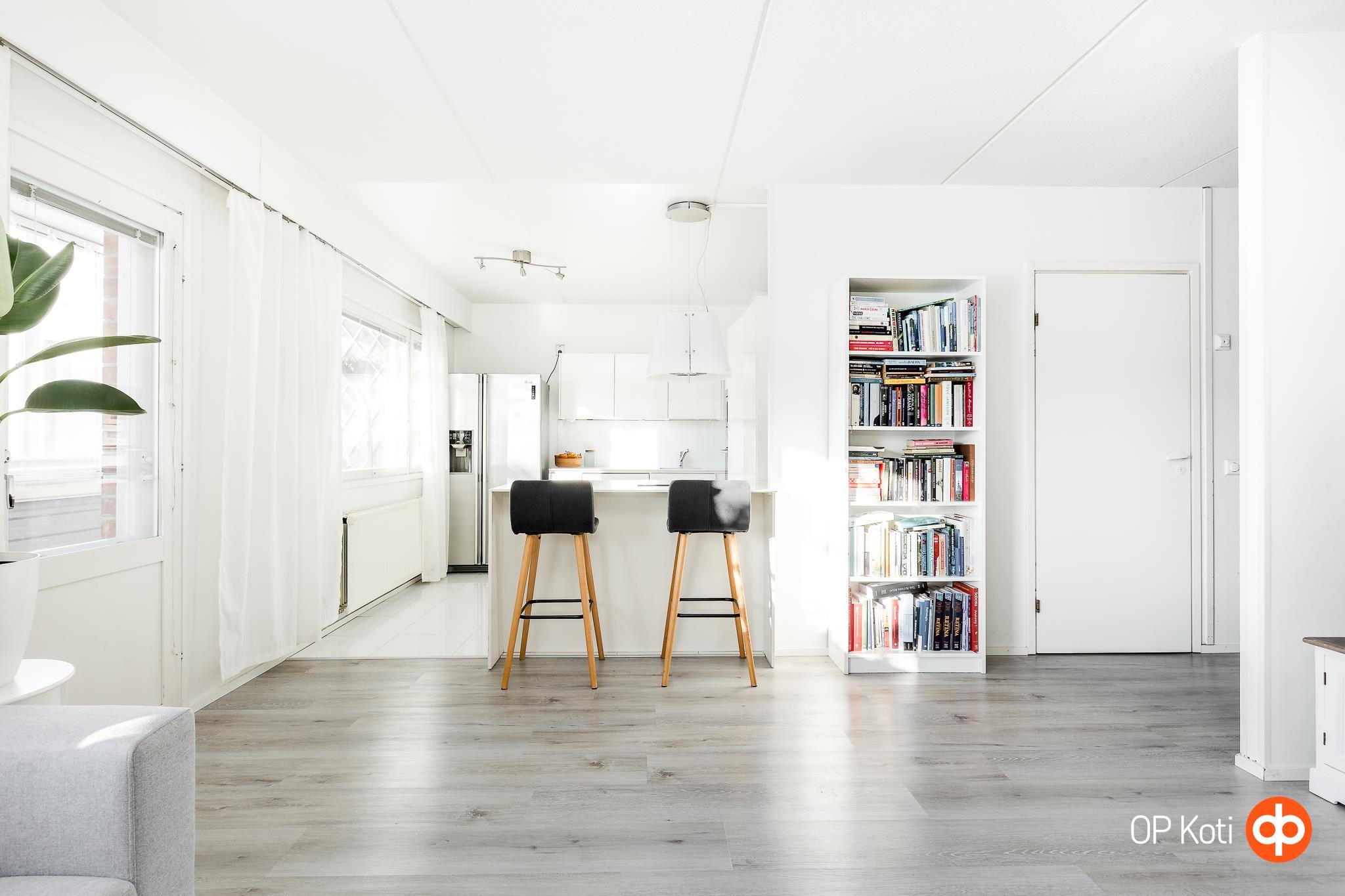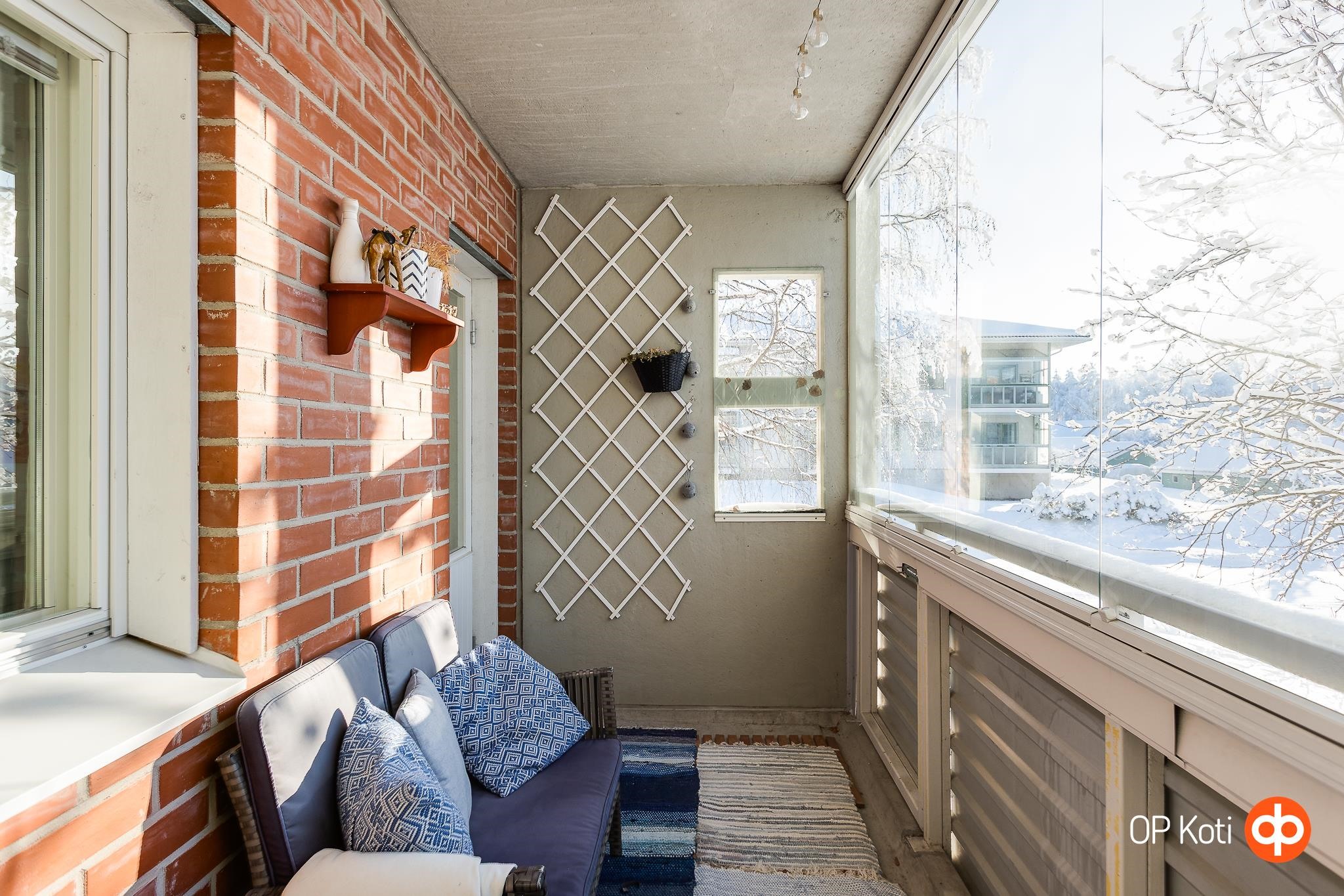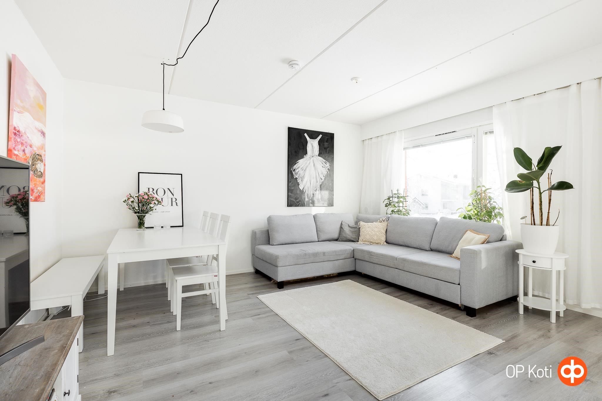 Tämän kodin avaran ja harkitun pohjaratkaisun ansiosta arki on sujuvaa, olohuone ja keittiö muodostavat yhtenäisen tilan, joka kutsuu viihtymään yhdessä. Kolmen makuuhuoneen ansiosta jokaiselle löytyy oma rauhallinen soppi, ja lasitettu parveke tuo mukavasti lisätilaa niin kesäaamujen kahvihetkiin kuin iltaisin rentoutumiseen.