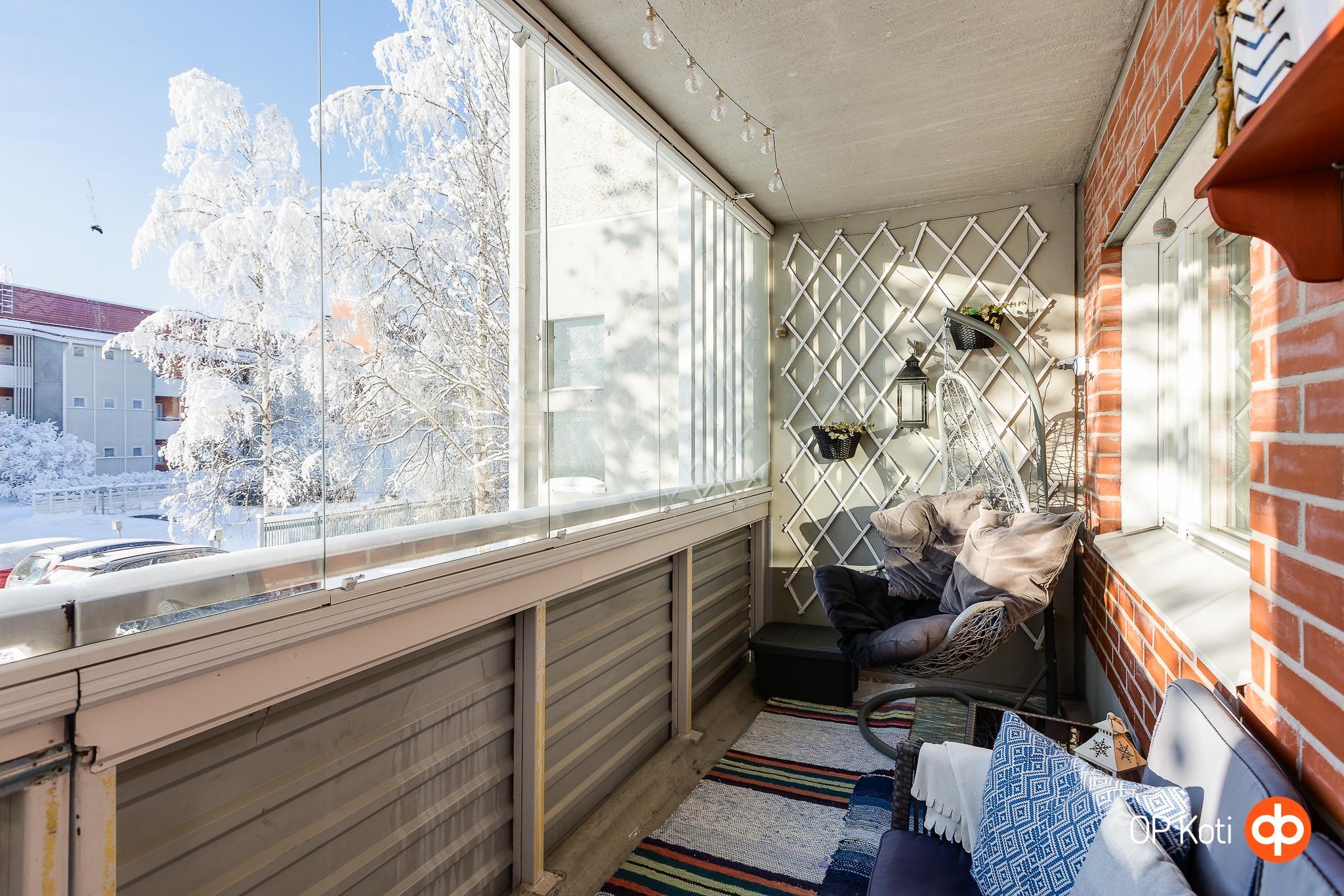 Valoisa ensimmäisen kerroksen luhtitalohuoneisto Svaaninsuolla, jossa suuri lasitettu parveke, laadukkaat remontit tehty ja erinomainen sijainti OYS:n läheisyydessä!