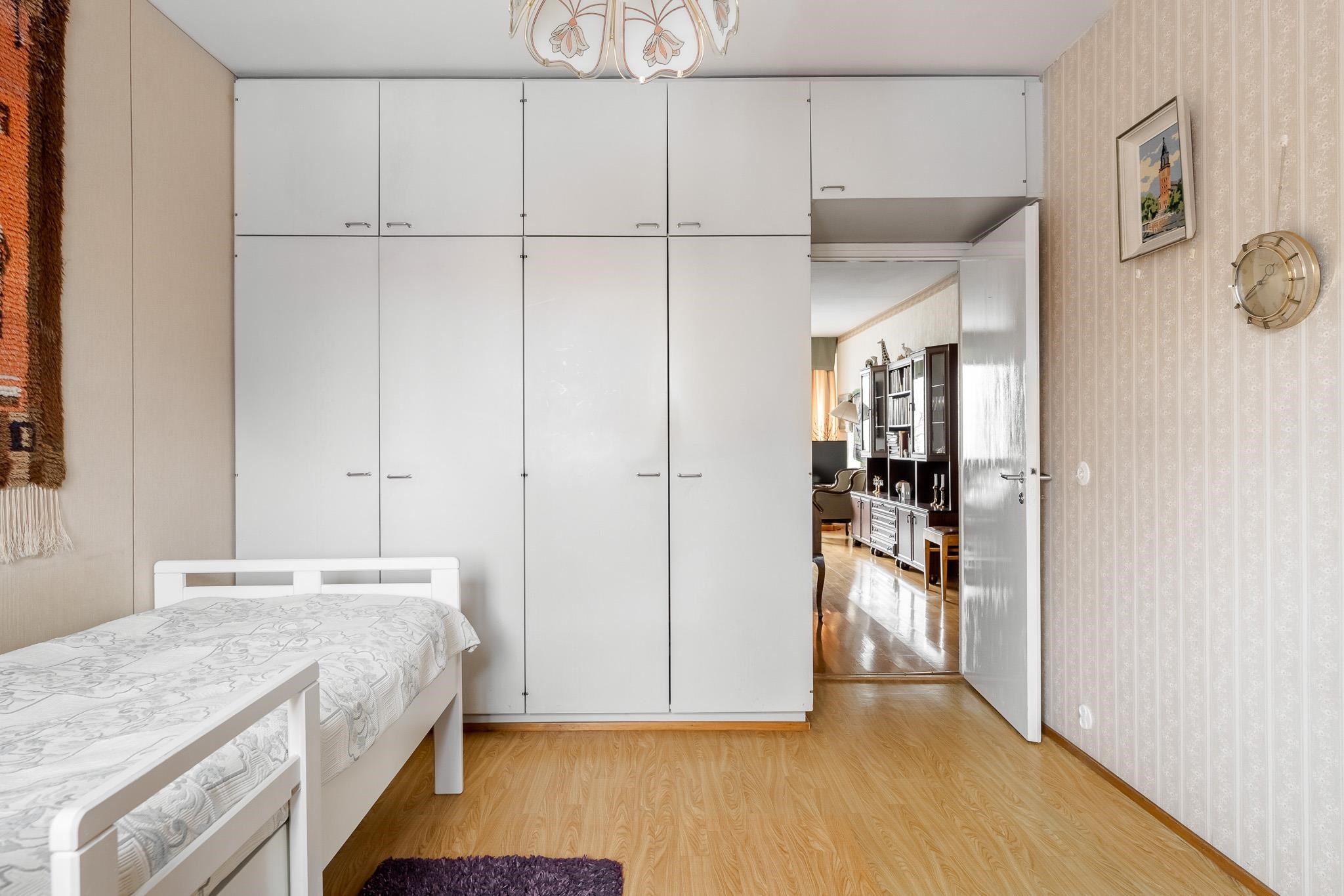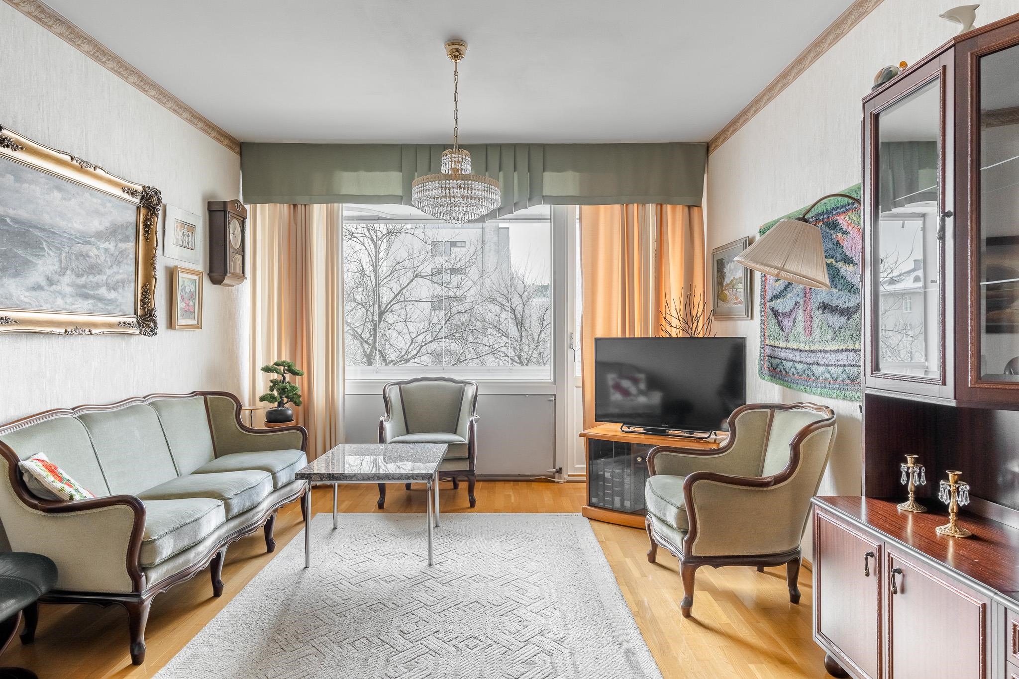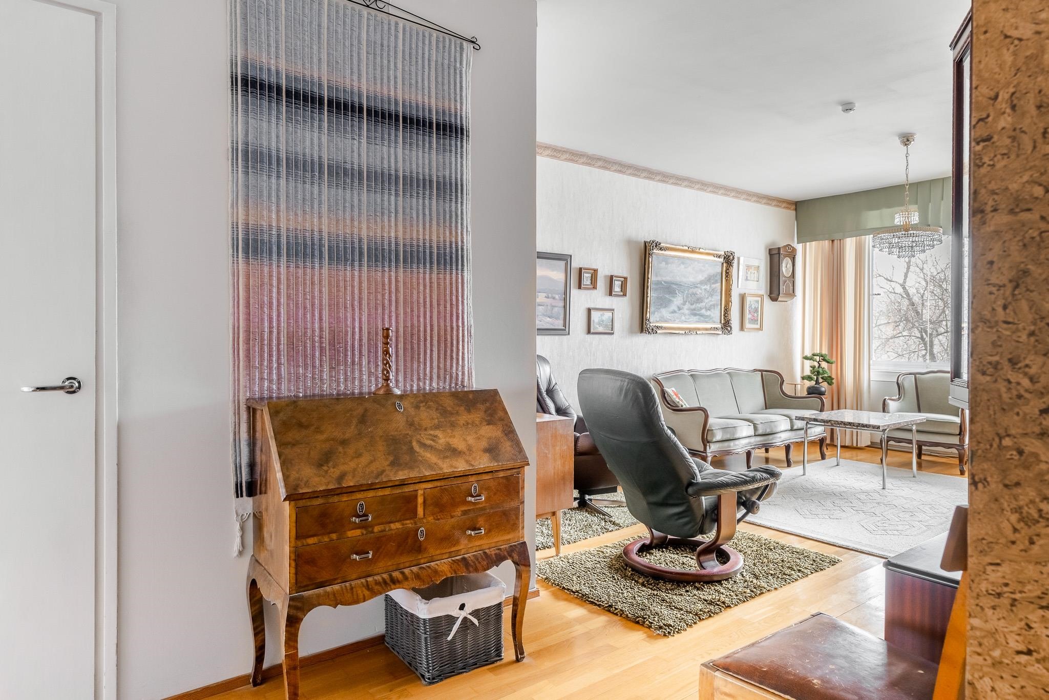 Tässä 62 m² läpitalon kodissa on selkeä ja käytännöllinen pohjaratkaisu. Olohuone on kodin sydän, jossa on hyvin tilaa sekä sohvaryhmälle että suuremmalle ruokapöydälle. Olohuoneen jatkeena avautuu lasitettu parveke vehrein näkymin etupihalle ja Kerttulinkadulle. Makuuhuoneiden ja keittiön suuret ikkunat avautuvat rauhalliselle takapihalle. Kylpyhuoneessa on paikka pyykinpesukoneelle, ja pintojen ehostuksella teet tästä kodista juuri oman näköisesi.