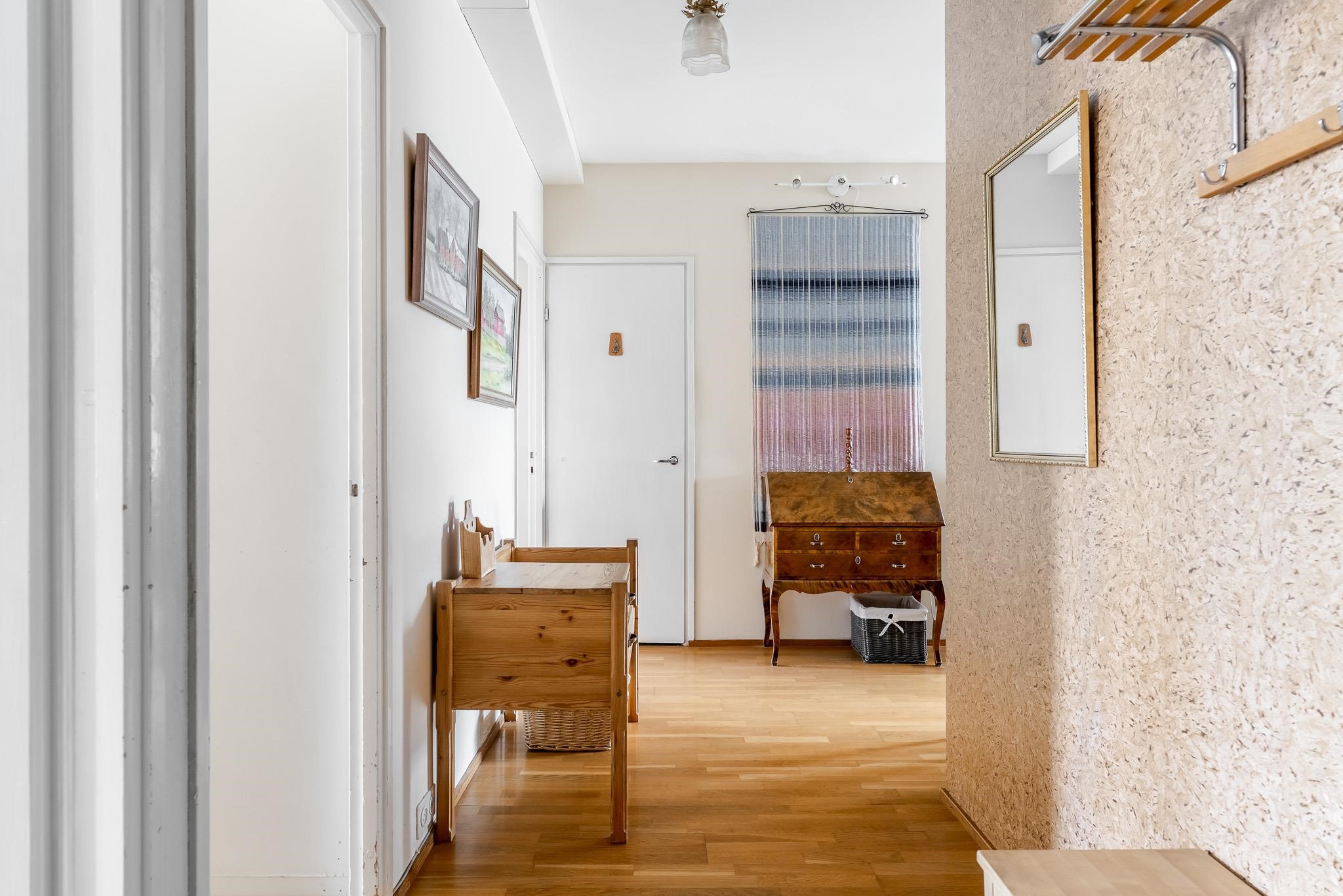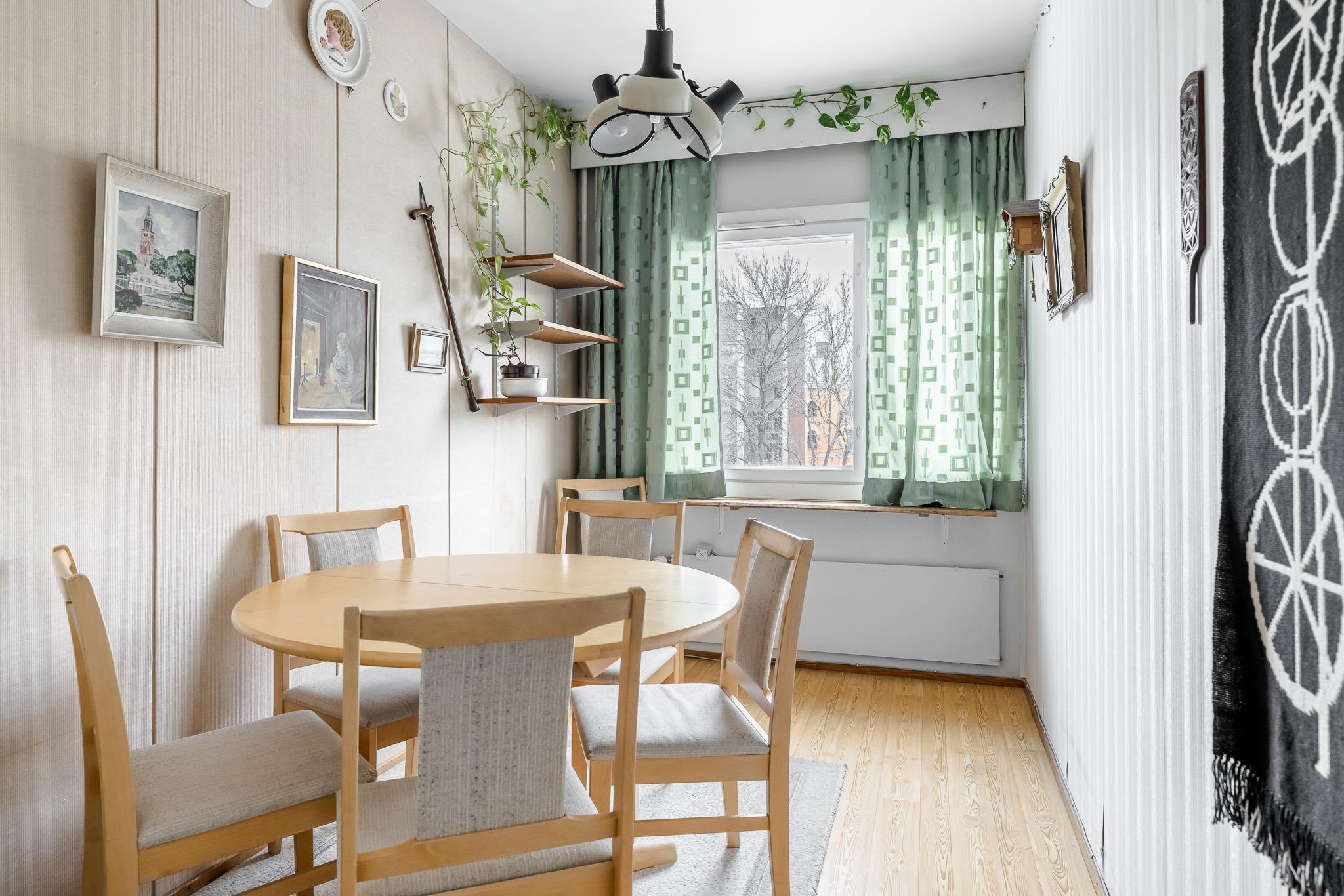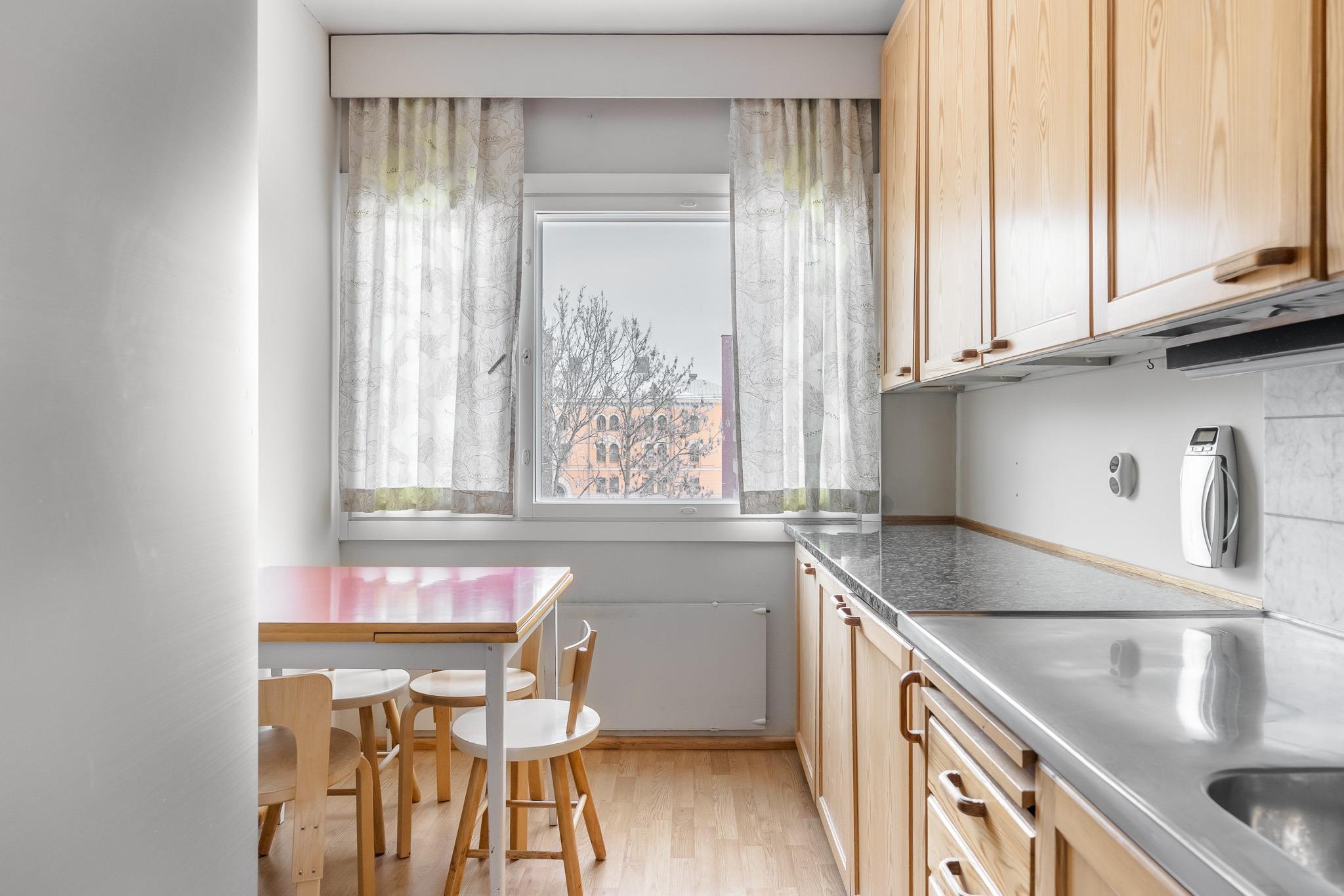Tässä 62 m² läpitalon kodissa on selkeä ja käytännöllinen pohjaratkaisu. Olohuone on kodin sydän, jossa on hyvin tilaa sekä sohvaryhmälle että suuremmalle ruokapöydälle. Olohuoneen jatkeena avautuu lasitettu parveke vehrein näkymin etupihalle ja Kerttulinkadulle. Makuuhuoneiden ja keittiön suuret ikkunat avautuvat rauhalliselle takapihalle. Kylpyhuoneessa on paikka pyykinpesukoneelle, ja pintojen ehostuksella teet tästä kodista juuri oman näköisesi.