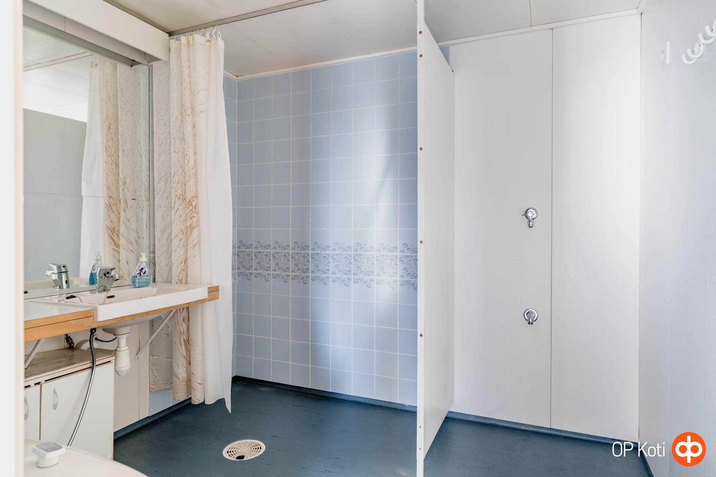 - Kylpyhuone, wc-istuin, suihku, peilit, allaskaappi, pesukoneliitäntä, kiinteät valaisimet.