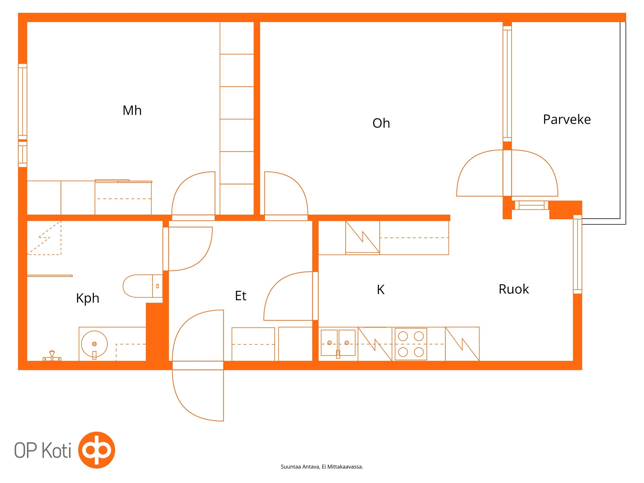 - Keittiö, oh, parveke lounas ja mh pohjoinen.
