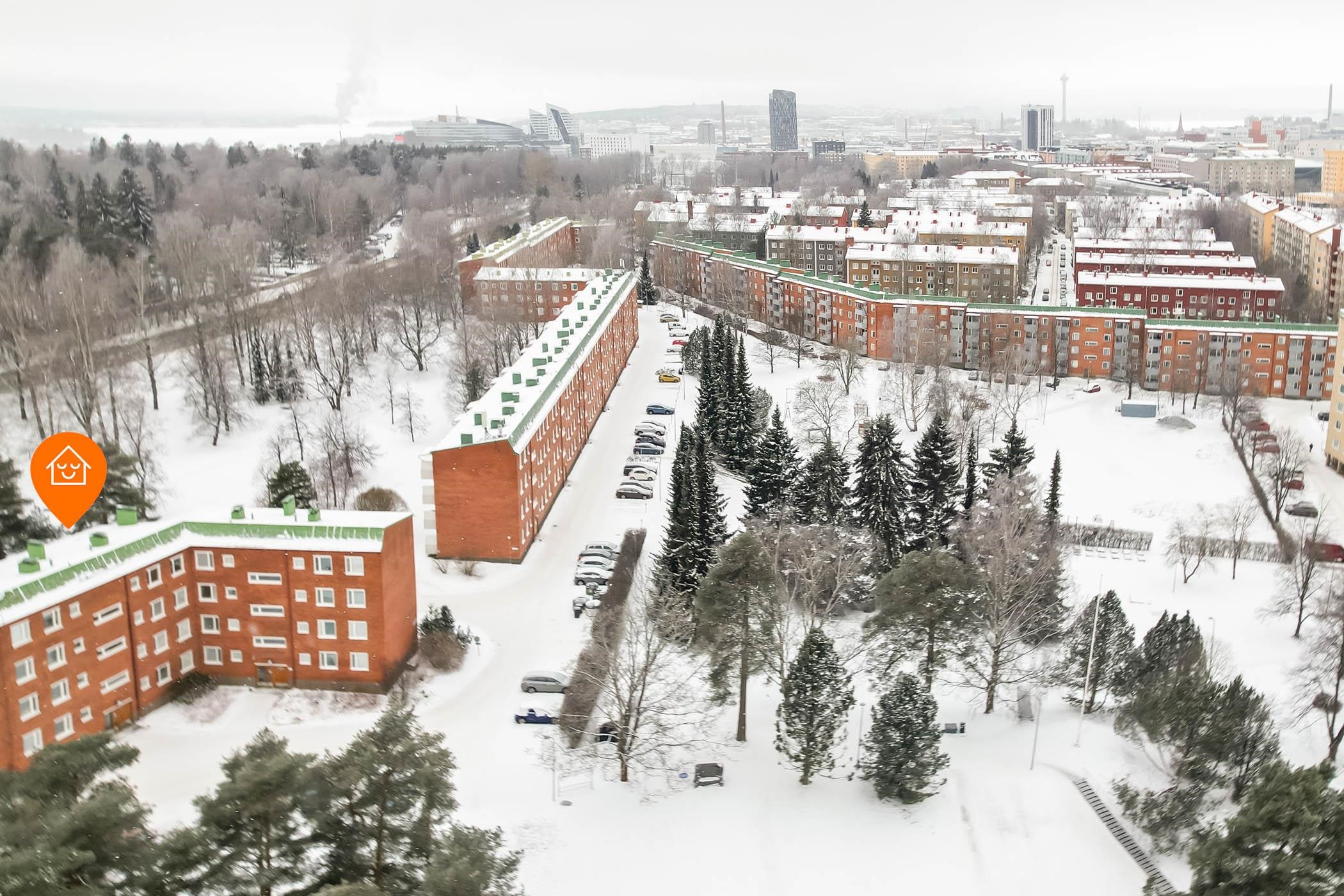 Palvelut: Huikea sijainti lähellä kaikkia peruspalveluita! Lähikauppa n. 200m ja Kalevan Prisman kattaviin palveluihin vain n. 1km matka. Yliopistolle vain n. 1,2km ja Hervannan kampuksellekin 7km päähän vie ratikka suoraan. Tamkille n. 1,5km matkaa. Lähistöllä ratikka- ja bussipysäkit tekevät liikkumisesta vaivatonta. Tampereen keskustan kattaviin palveluihin kävelymatka.