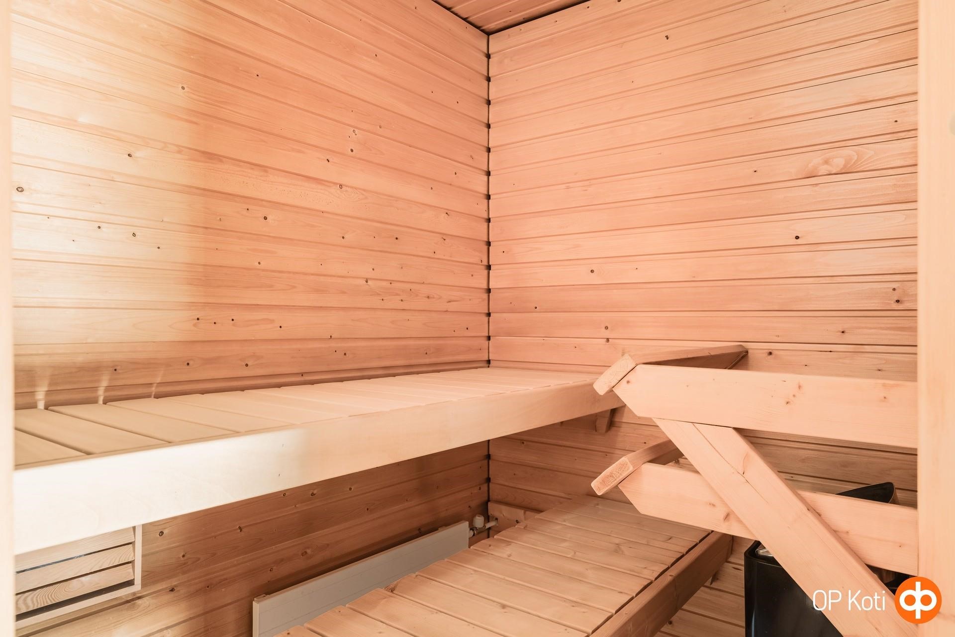 - Sauna 2022, sähkökiuas, kylpyhuone, suihku, peilikaappi, kaapit, allaskaappi, pesukoneliitäntä, kiinteät valaisimet. -
