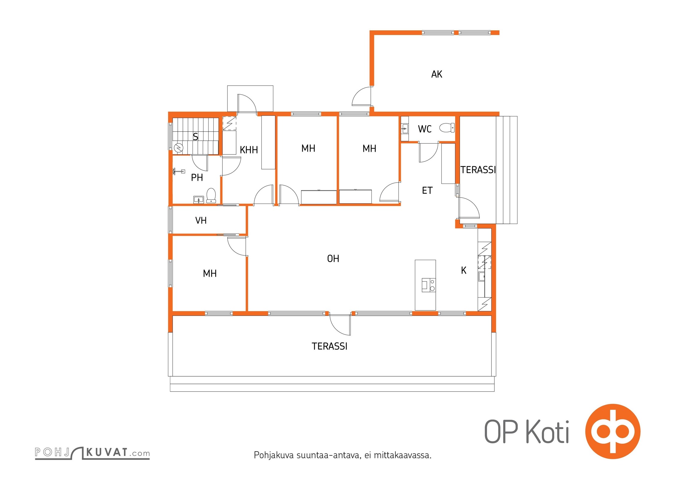 - 4h, avokeittiö, kph/wc, s, khh, vh, eril.wc, ak, var