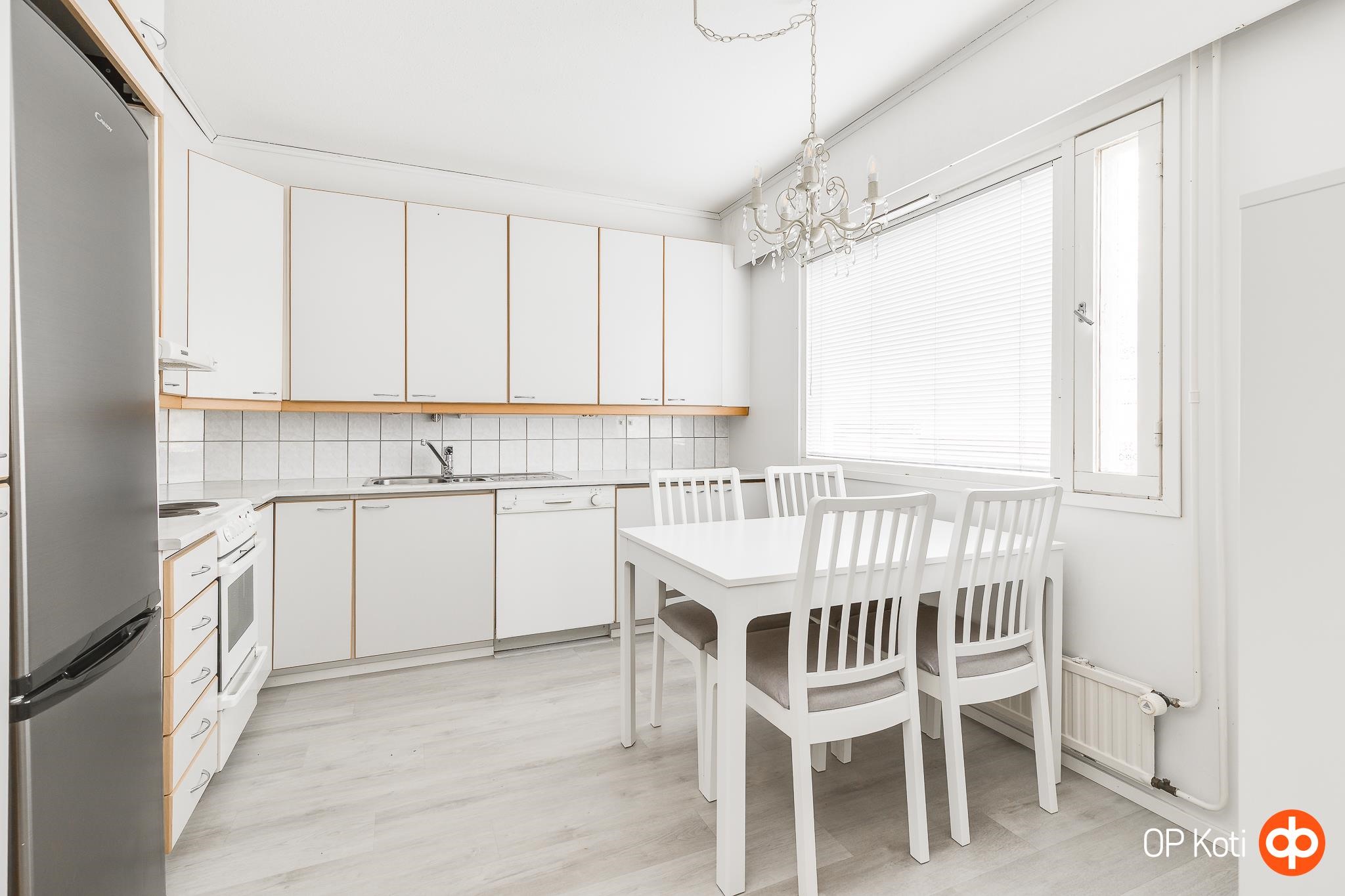 - Jääkaappipakastin, lattialiesi, liesituuletin, astianpesukone, kaapistot Kaapistot uusittu vuonna 2003.