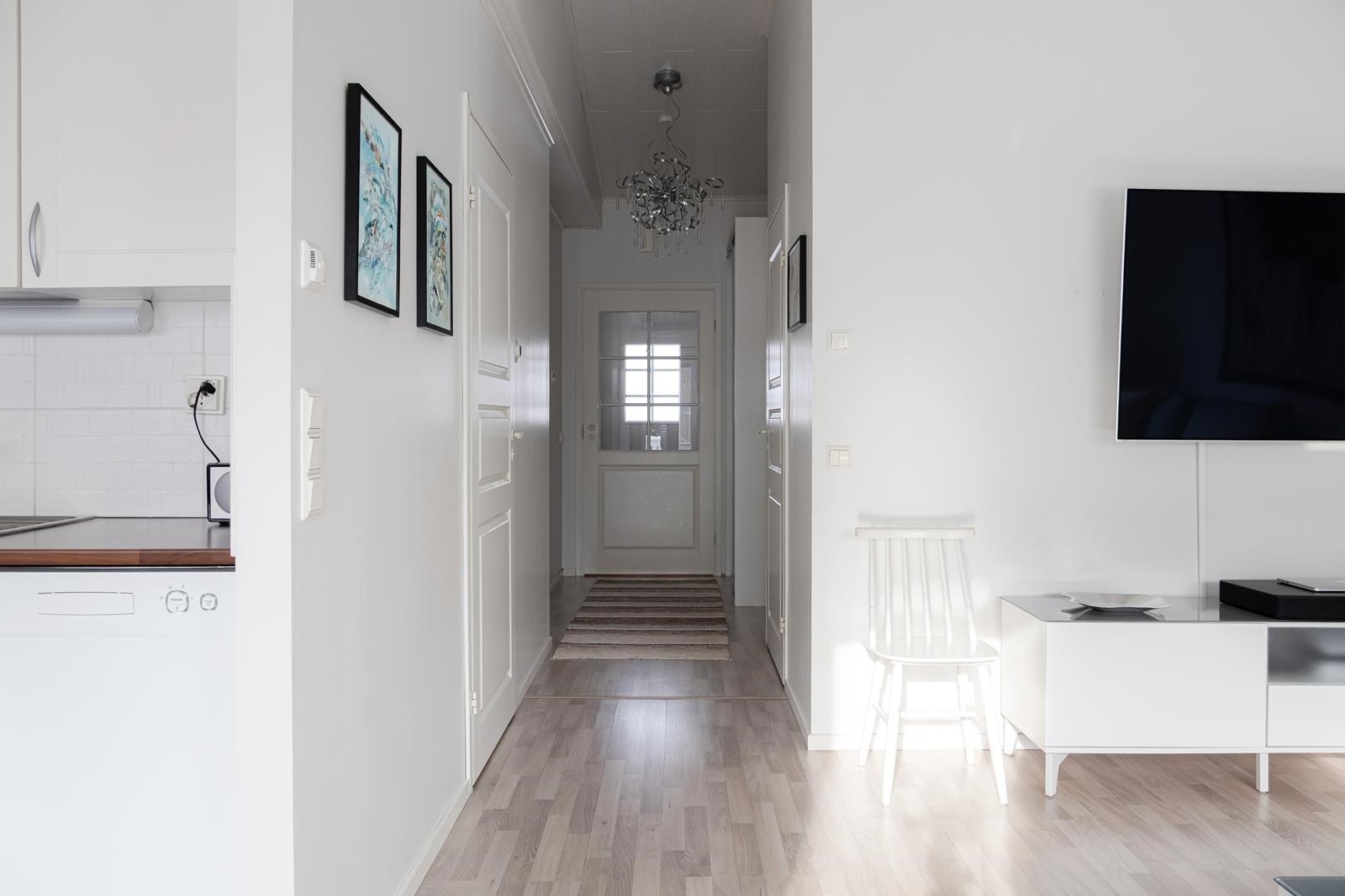 Olohuone ja keittiö muodostavat käytännöllisen kokonaisuuden, jossa on tilaa niin arjelle kuin yhdessäolollekin. Makuuhuoneet ovat rauhallisella puolella asuntoa, ja säilytystilaa löytyy vaatehuoneesta sekä ulkovarastosta. Kylpyhuone ja sauna ovat siistissä kunnossa, ja niiden saumaukset on uusittu helmikuussa 2026. Asunnolle on tehty kuntotarkastus 21.10.2025.