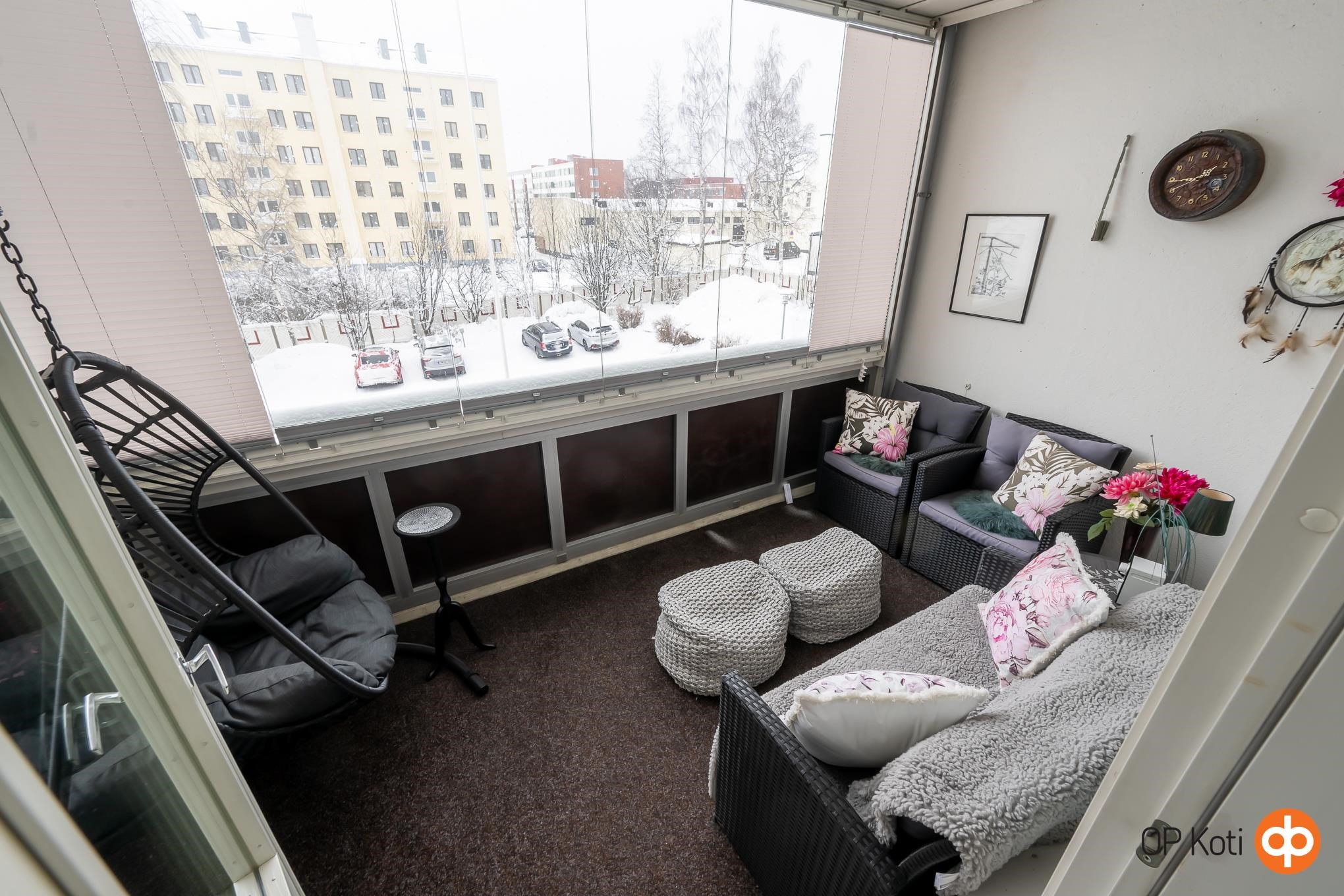 Tämä tilava kaksio sopii erityisen hyvin pariskunnalle, pienelle perheelle tai vaikkapa tilaa arvostavalle yksinasujalle, joka haluaa nauttia rauhallisesta asumisesta ilman remonttihuolia. Avarat, siistit tilat ja käytännöllinen pohjaratkaisu tukevat arjen sujuvuutta. Erillisessä keittiössä on hyvin tilaa ruokailuryhmälle ja valoisasta olohuoneesta on käynti lasitetulle parvekkeelle, tarjoten viihtyisän paikan nauttia aamukahvista tai ilta-auringosta ympäri vuoden. Makuuhuoneeseen tuo säilytystilaa tilava vaatehuone. Pesuhuoneessa on tilaa pyykkihuollolle ja oma sauna kutsuu rentoutumaan kiireisen päivän päätteeksi.