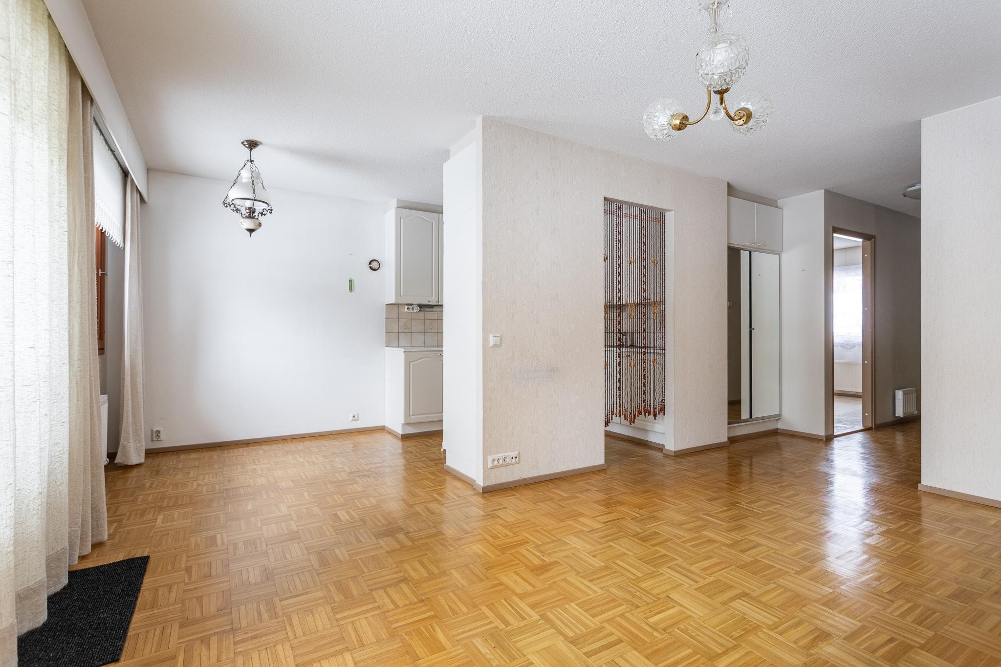 Asunnossa yksi makuuhuone, olohuone, keittiö ruokailutilalla, erillinen wc ja tilava pesuhuone saunalla. Kodissa on hyvä pohjaratkaisu ja tiloiltaan valoisa.