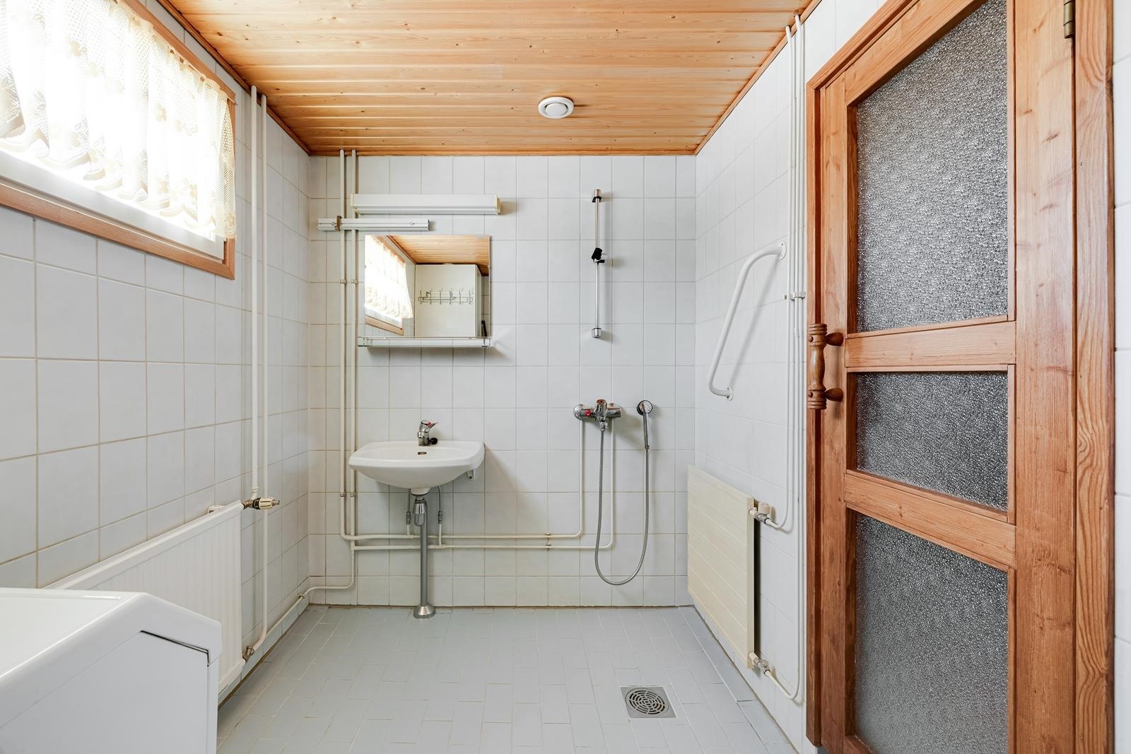 - Sauna, sähkökiuas, kylpyhuone, erillinen wc, suihku, peilit, peilikaappi, pesukoneliitäntä, kiinteät valaisimet.