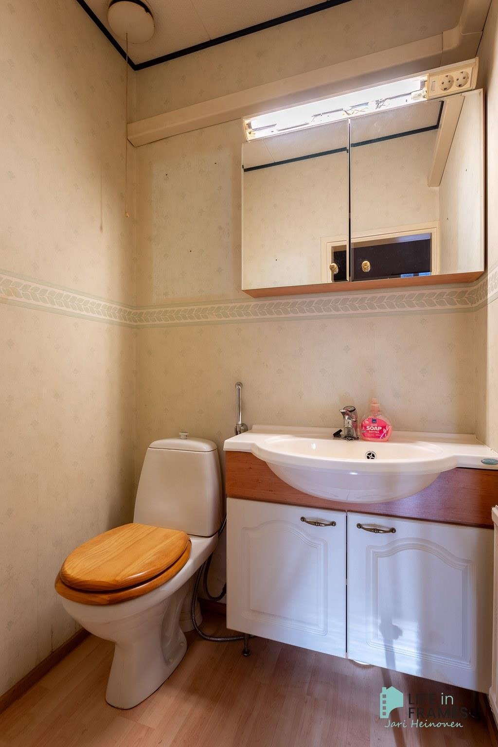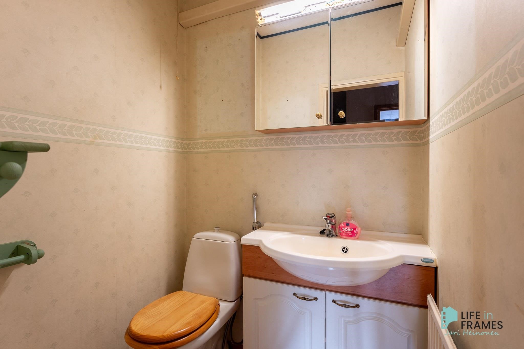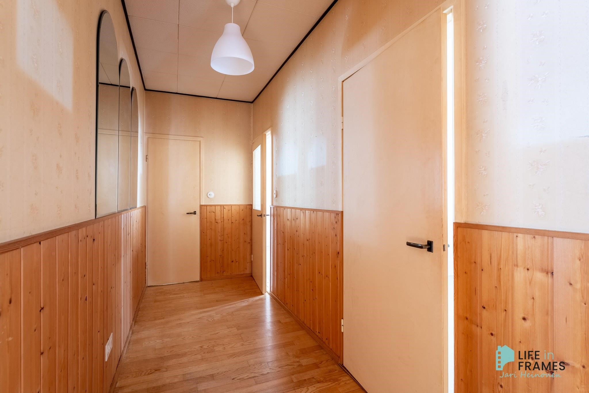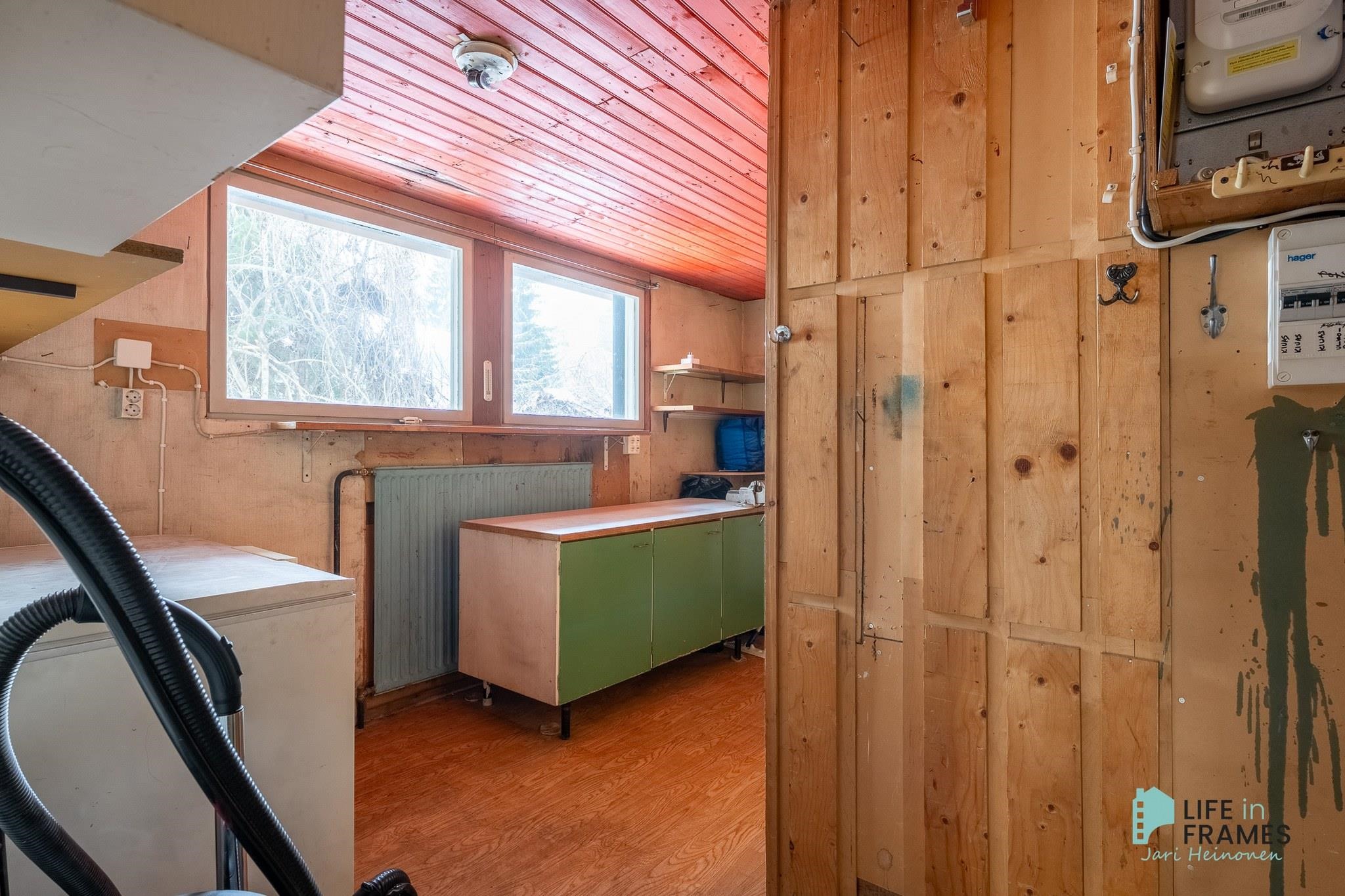 - Sauna, sähkökiuas, kylpyhuone, erillinen wc, suihku, suihkuseinä, pesukoneliitäntä, kiinteät valaisimet.