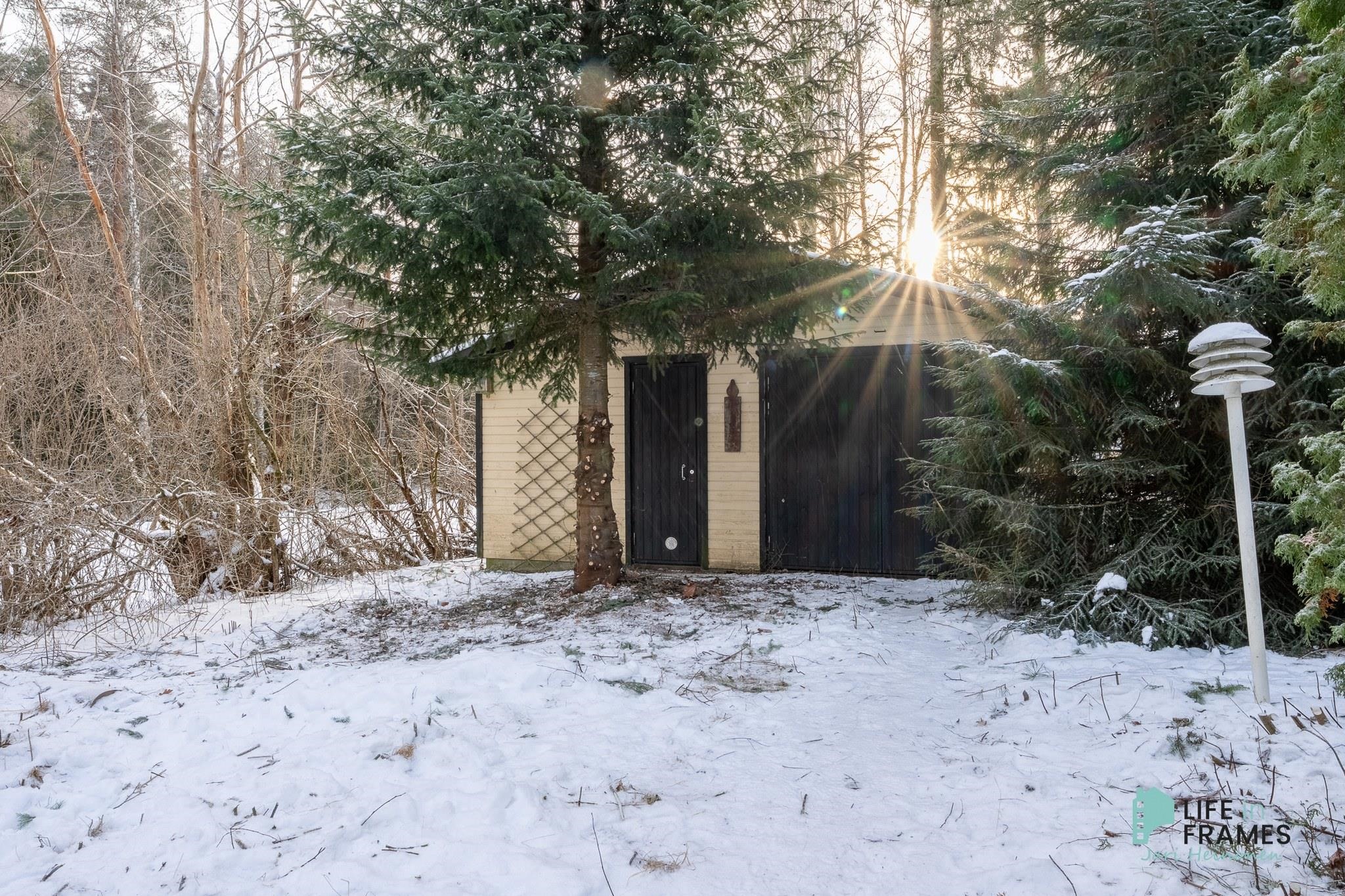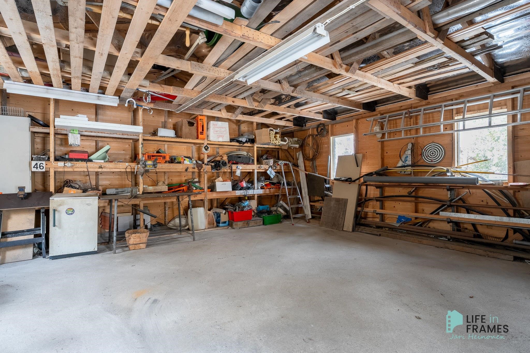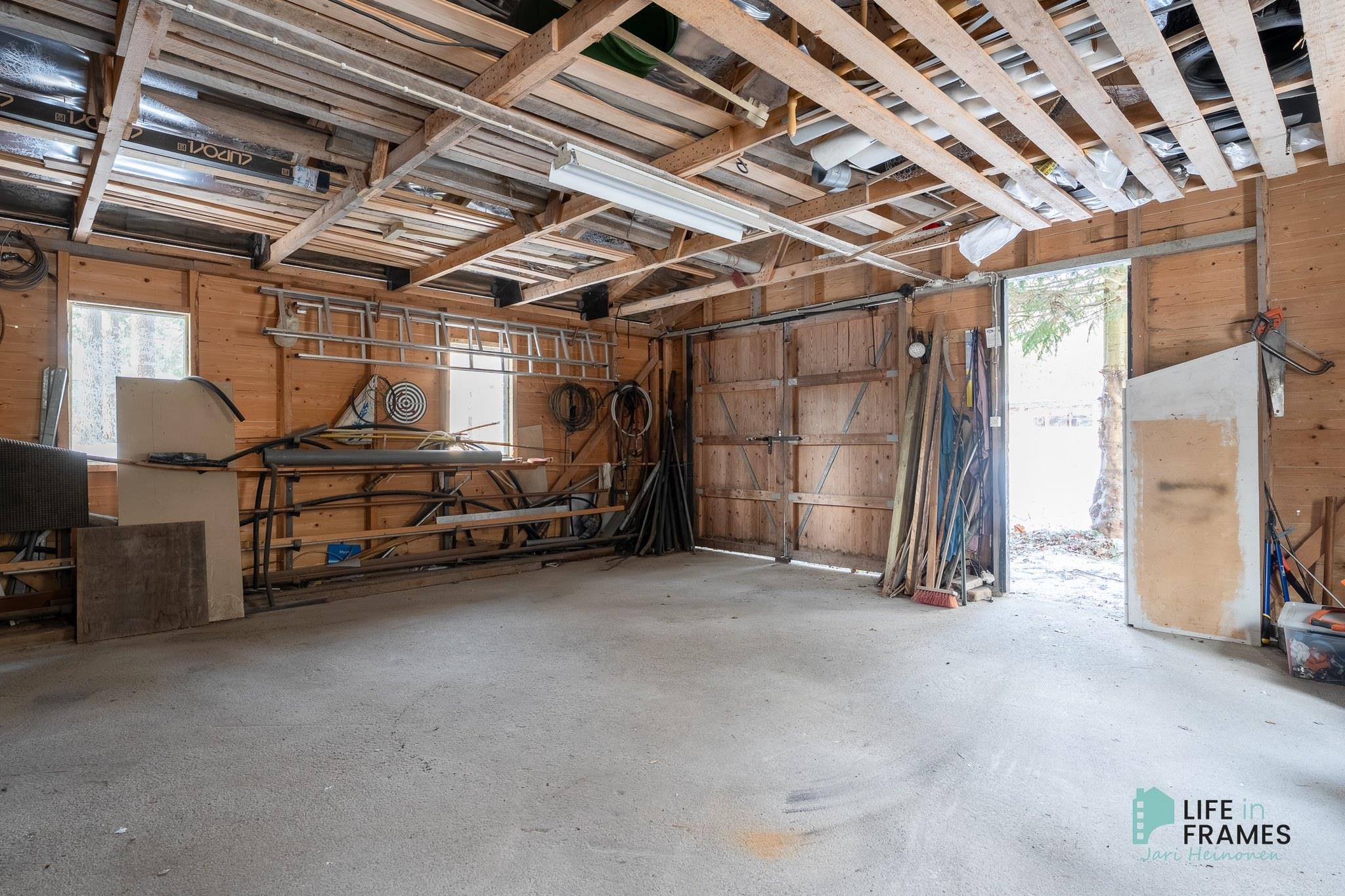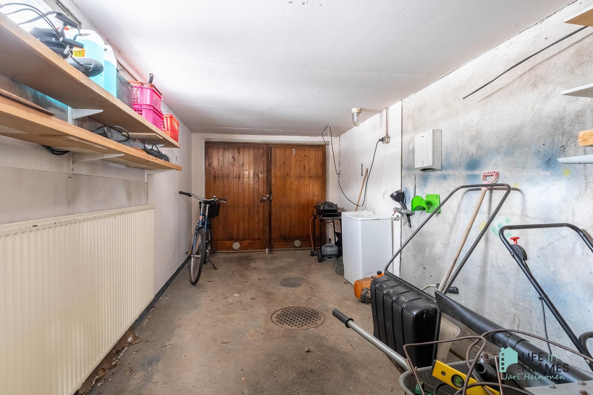 Rakennuksen päädyssä on myös varasto, tekninen tila sekä autotalli. Pihapiirissä lisäksi autotalli-varastorakennus, jossa paljon varastotilaa.