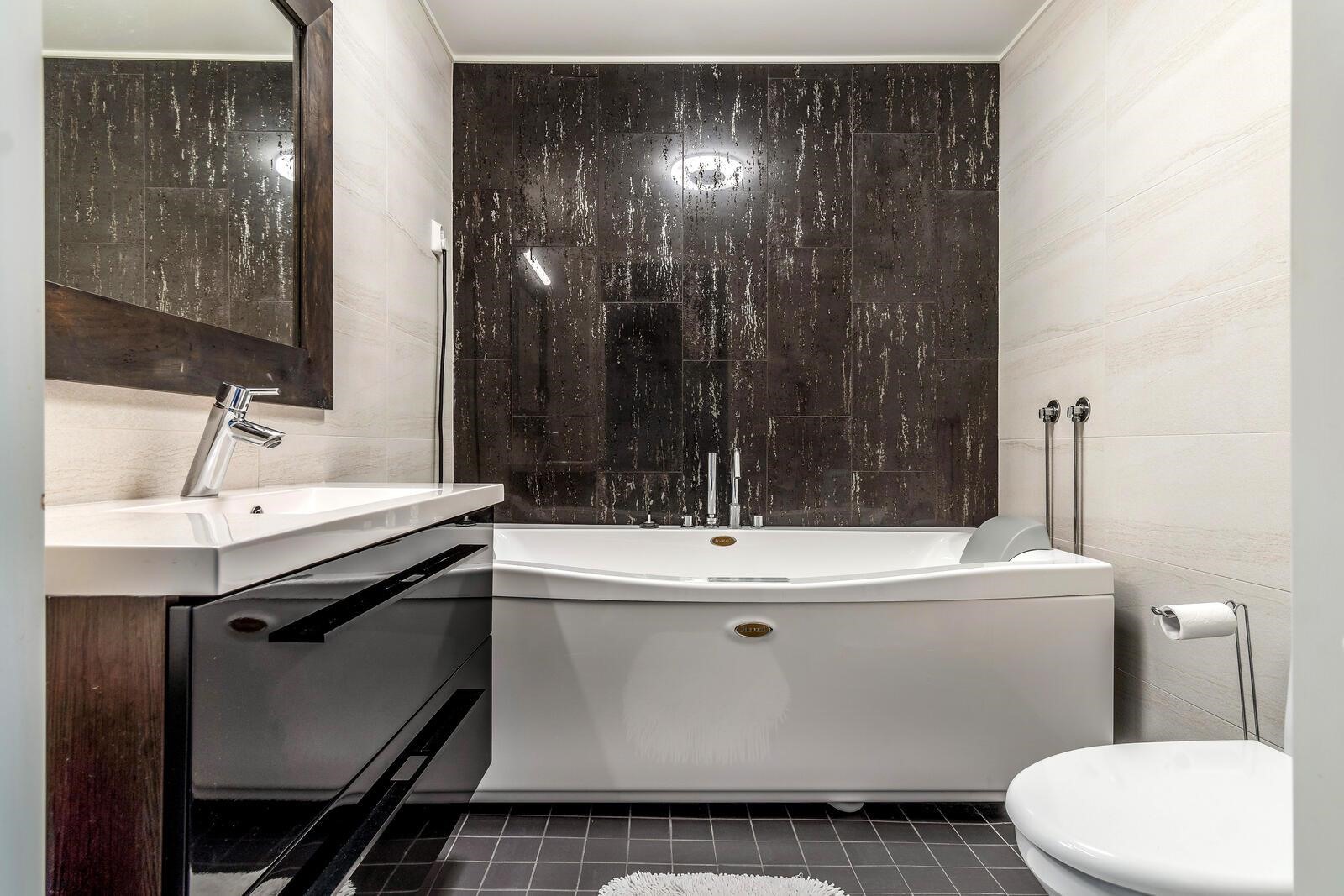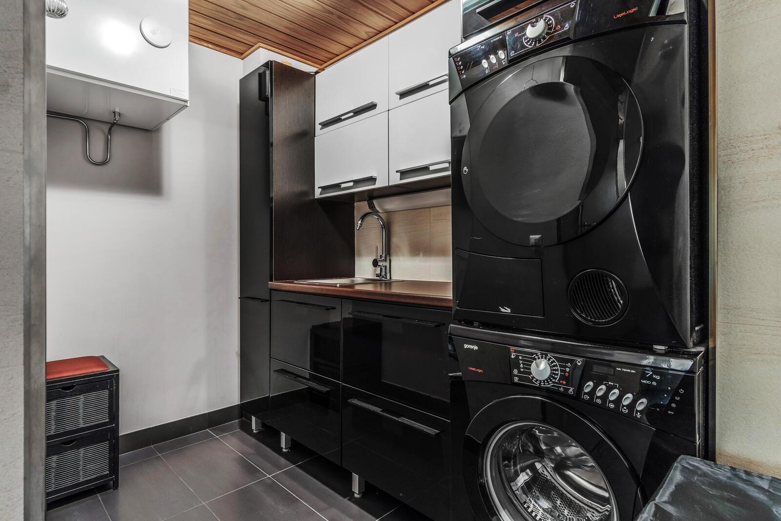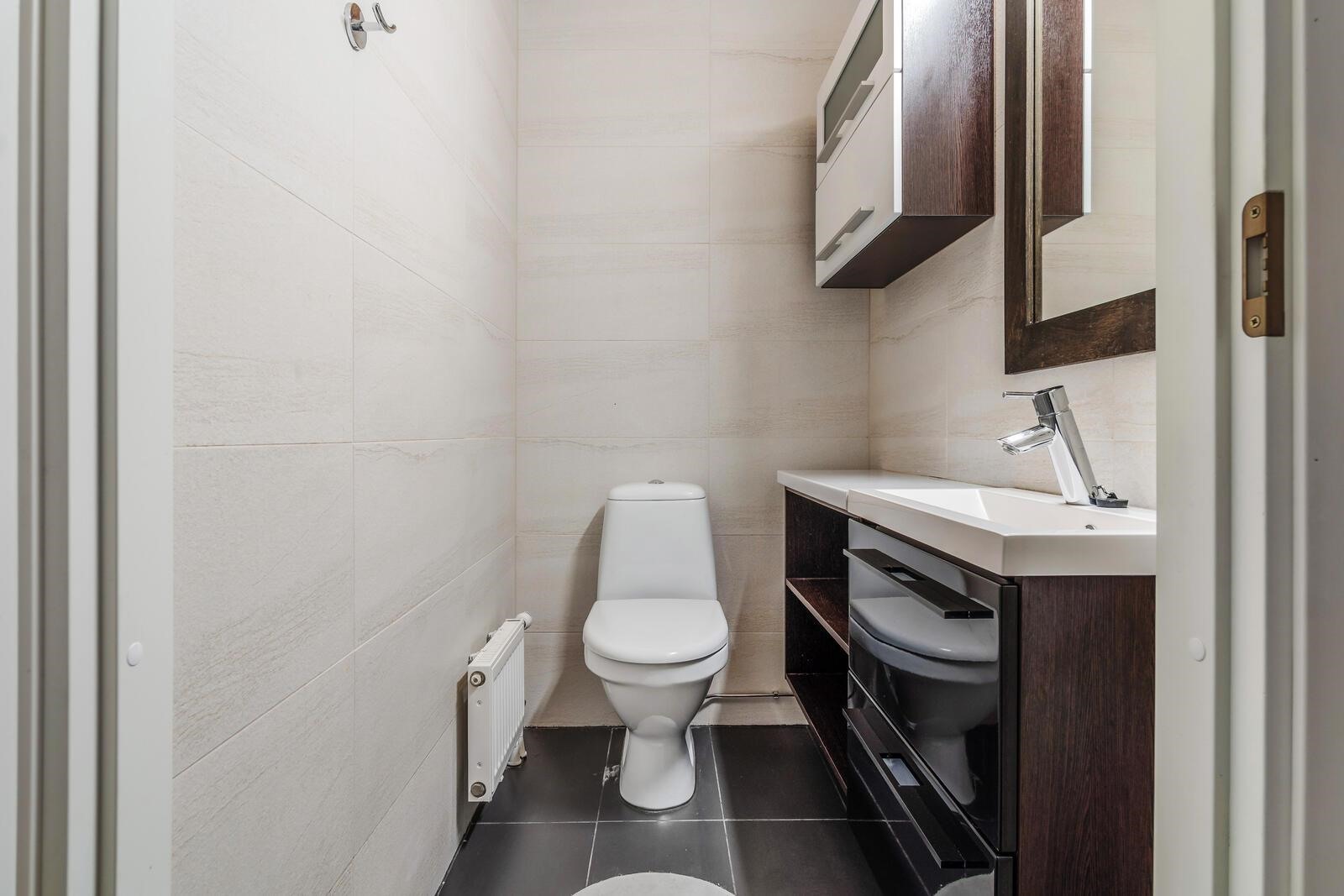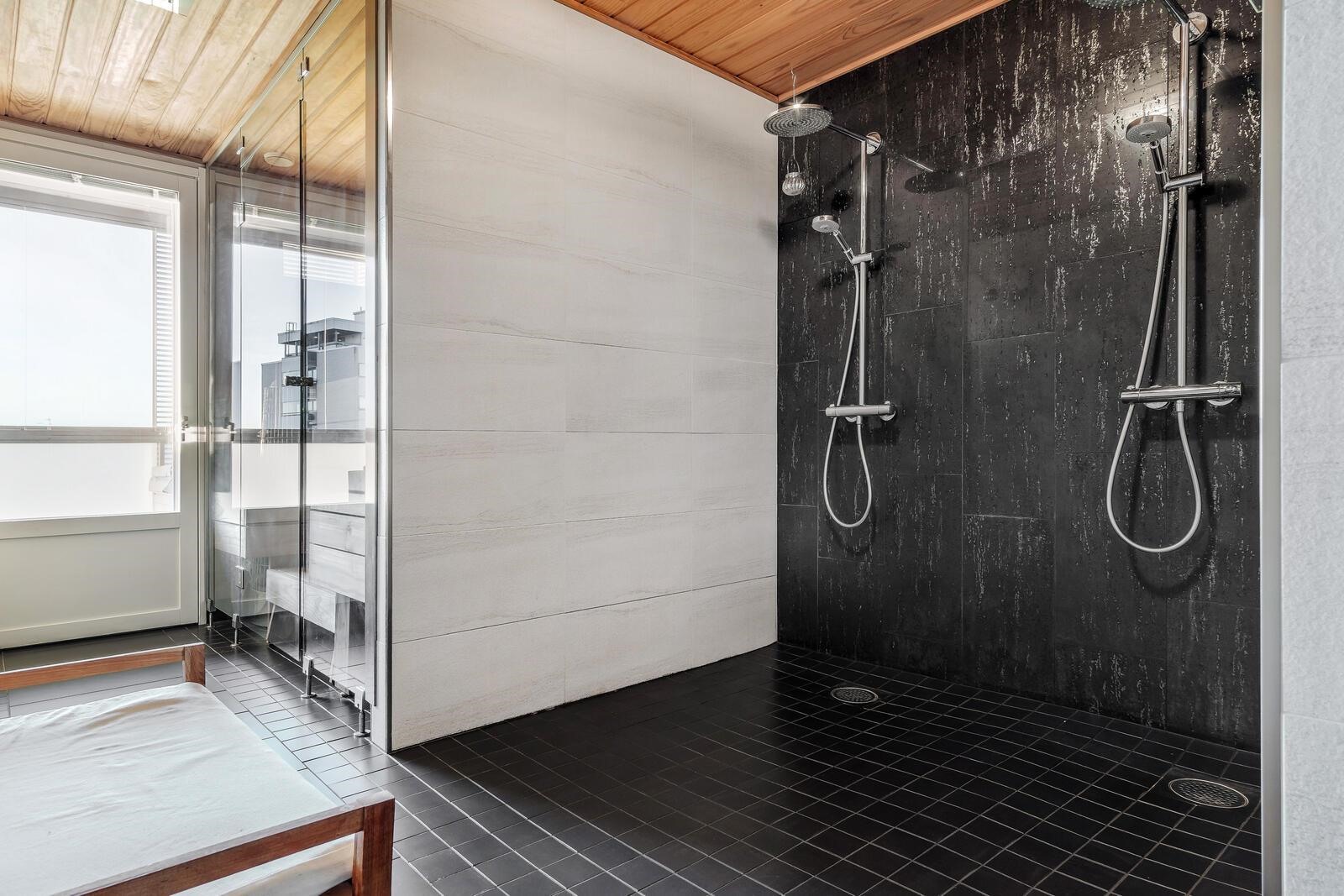 - Sauna, sähkökiuas, suihku, peilit, peilikaappi, kaapit, allaskaappi, pesukoneliitäntä, lattialämmitys.