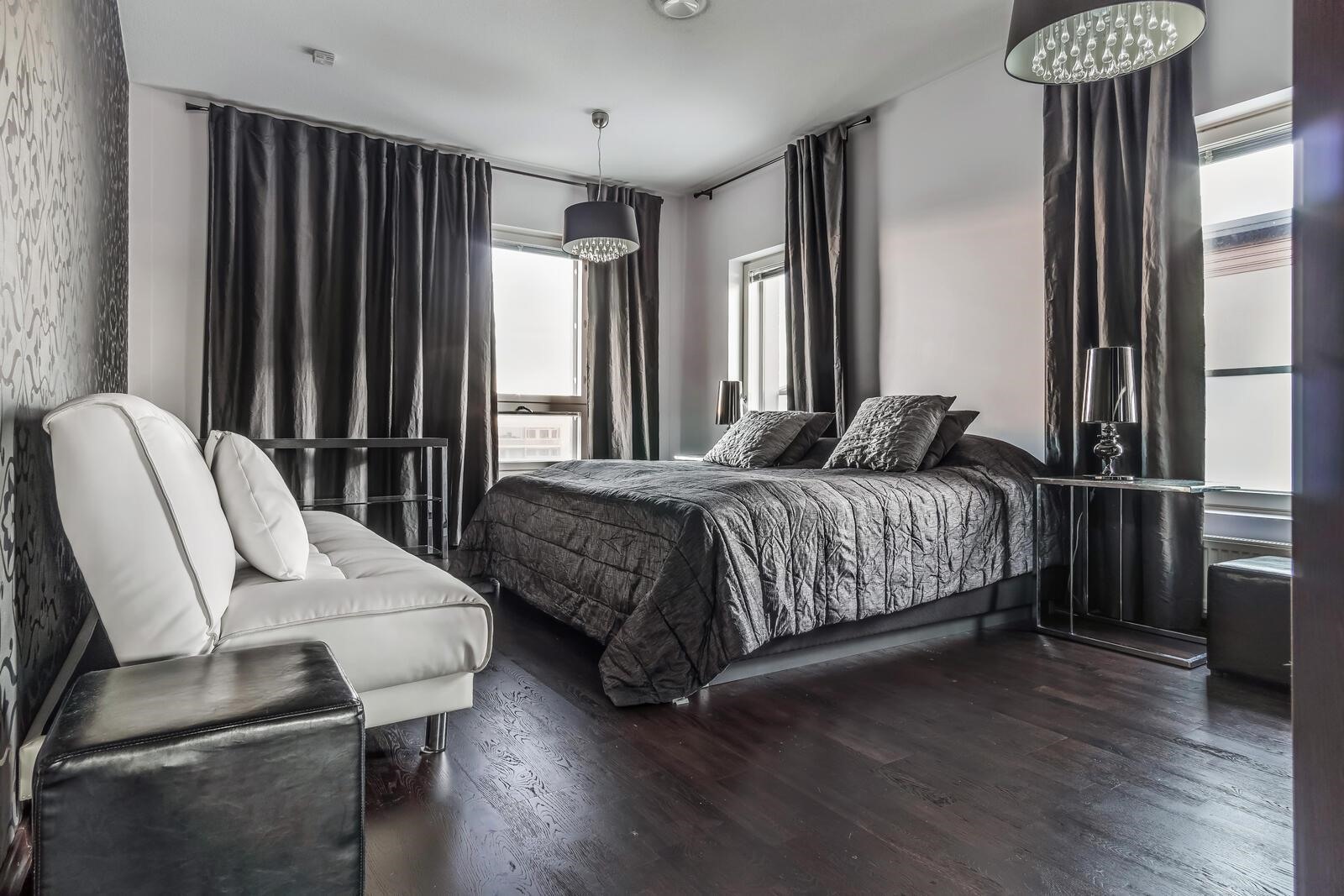 lattia: näyttävä tumma parketti. seinät: maali/tapetti.