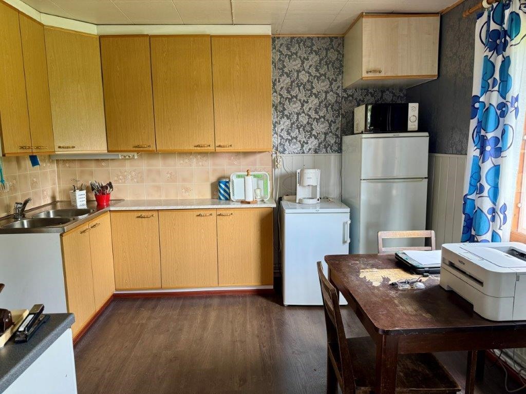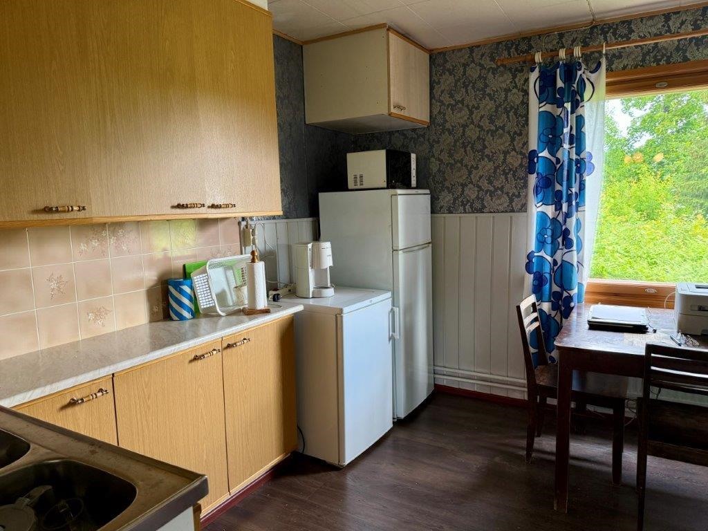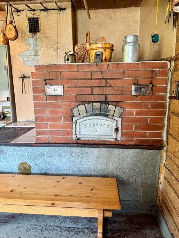 - Jääkaappi, sähköliesi, leivinuuni, kiinteät valaisimet, Puuhella.