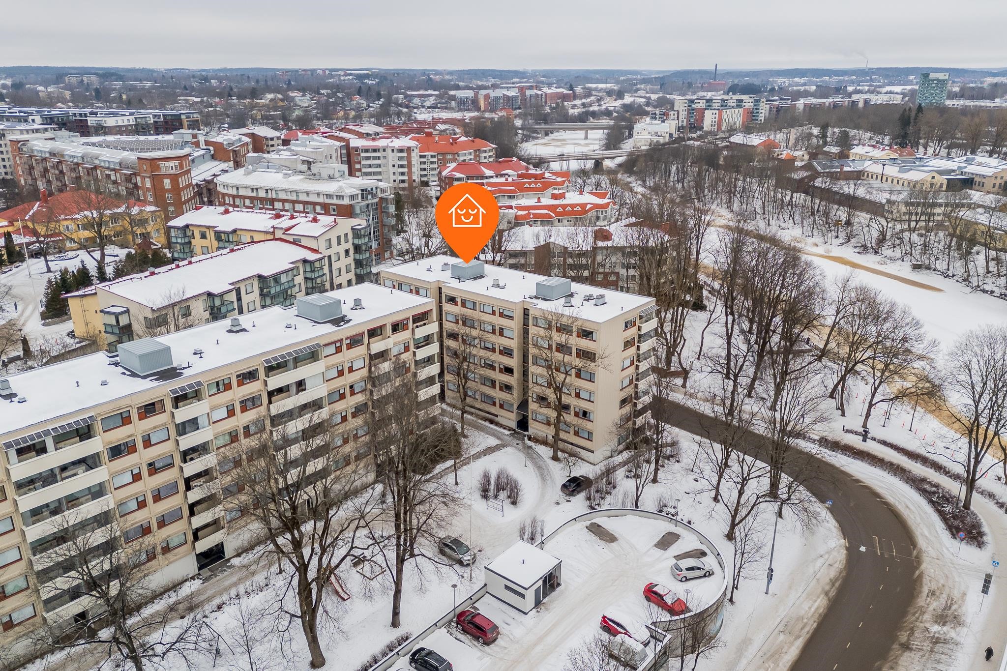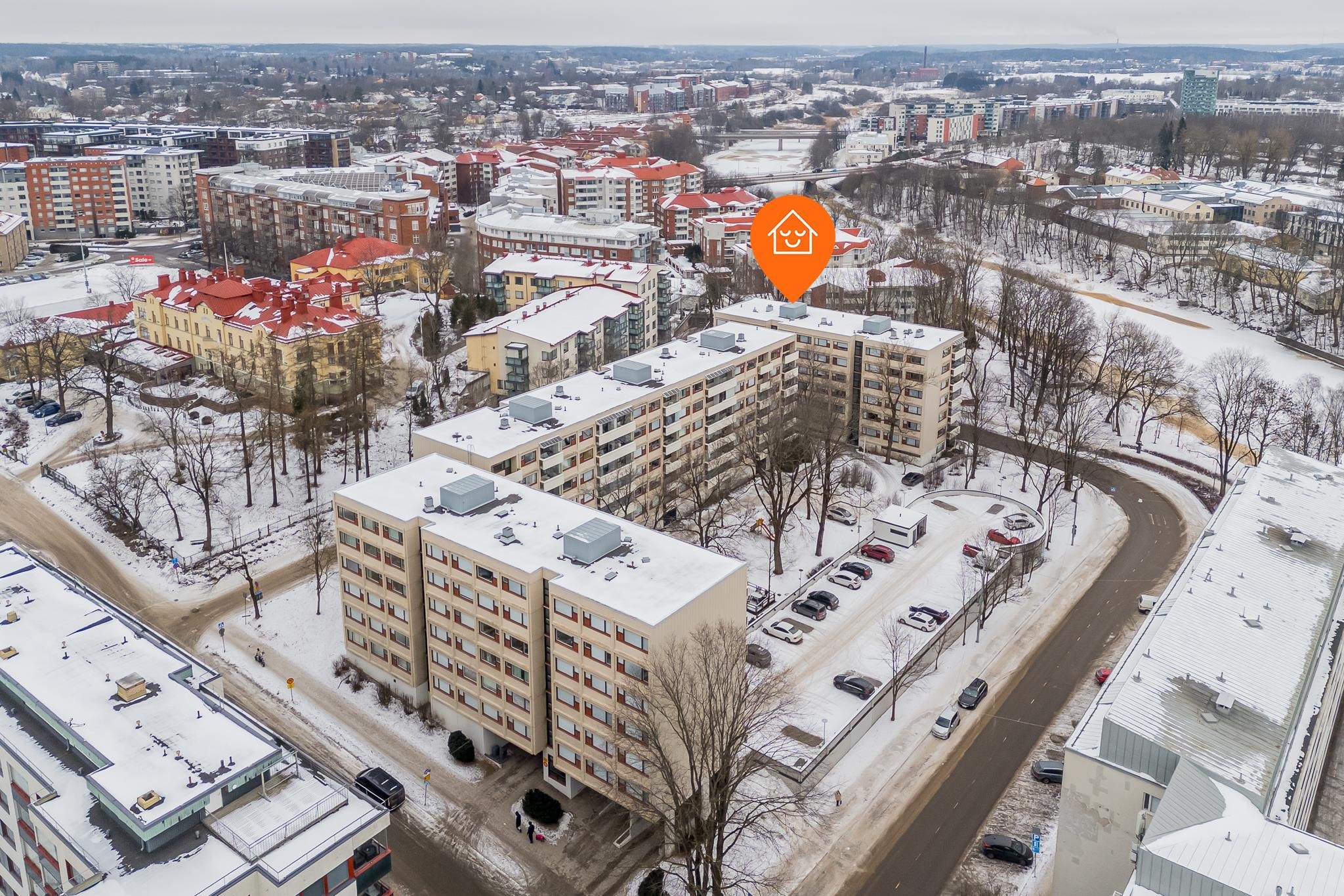 Sijainti Turun sydämessä takaa, että kaikki tarpeellinen on lähellä - kaupungin kulttuurielämä, ravintolat ja kaupat ovat vain lyhyen matkan päässä. Erinomaiset kulkuyhteydet tekevät liikkumisesta vaivatonta. Alueen vehreät puistot ja Aurajoen ranta tarjoavat ihanat puitteet ulkoilulle ja rentoutumiselle luonnossa. Aivan talon edustalta lähtee kävelypolku pitkin Aurajoen rantaa kohti Raunistulaa ja Halistenkoskea.