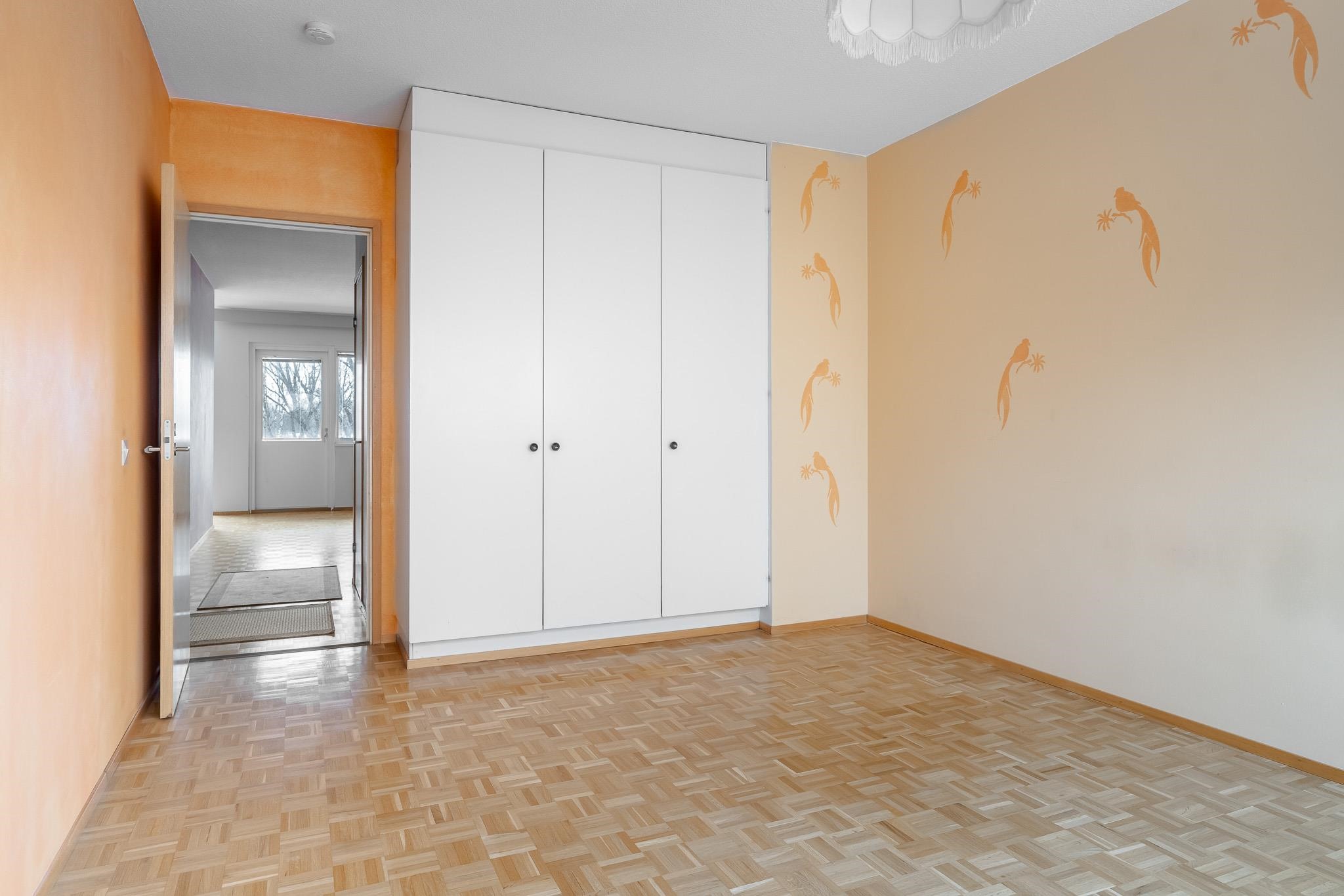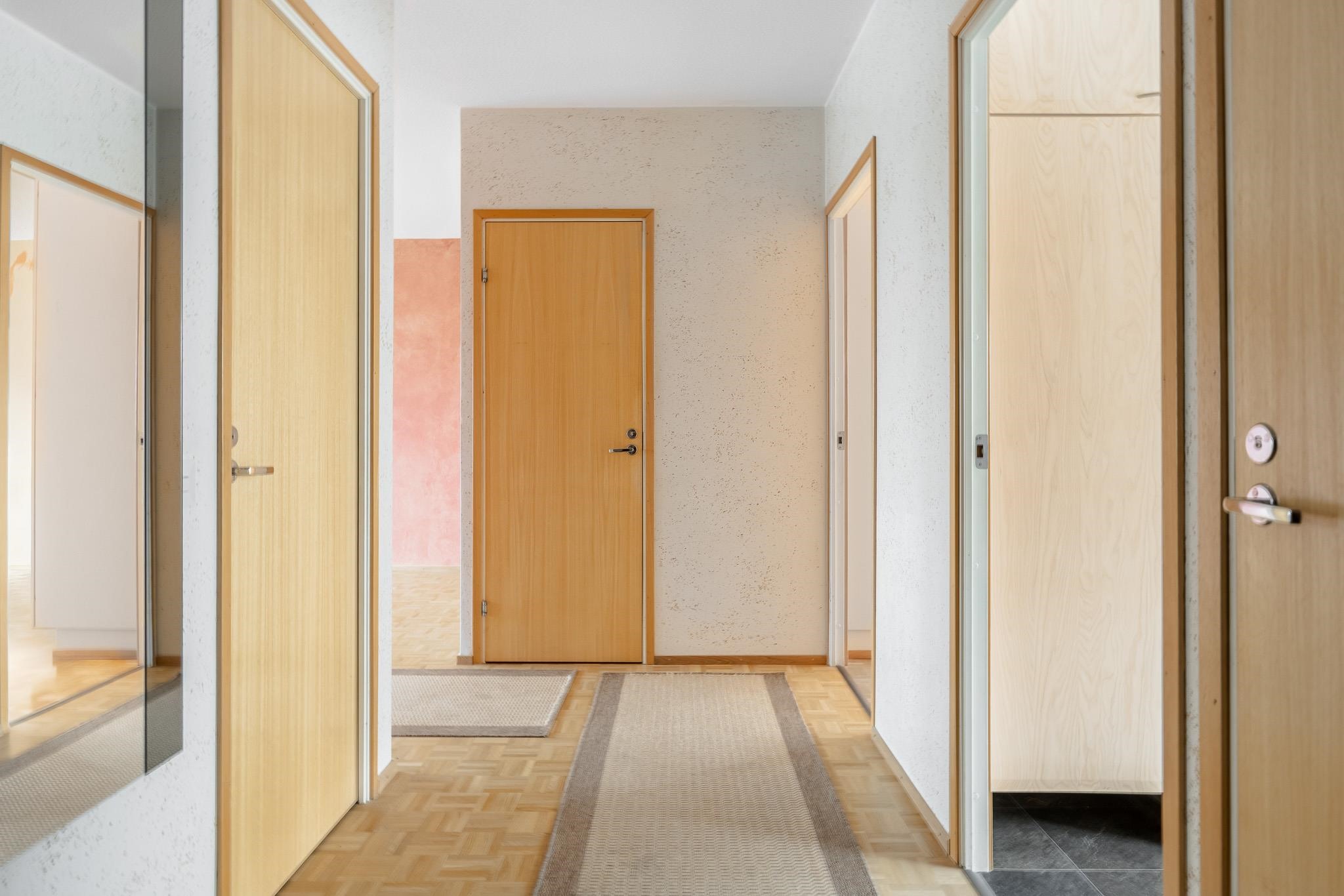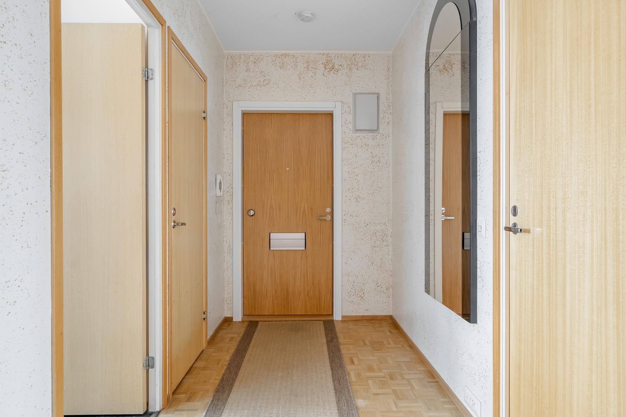 Läpitalon kodin pohjaratkaisu on mitä toimivin. Makuuhuoneet on sijoiteltu omaan rauhaansa eri puolille asuntoa ja asunnossa on kylpyhuoneen lisäksi erillinen wc arkea helpottamaan. Tilavaan keittiöön mahtuu hyvin ruokapöytä. Eteisen ja toisen makuuhuoneen välissä on hyvän kokoinen vaatehuone. Avaraan olohuoneeseen sijoitat helposti niin sohvaryhmän kuin suuremman ruokapöydänkin. Makuuhuoneissa on hyvin kaappitilaa ja kylpyhuoneessa liitäntä pesukoneelle.