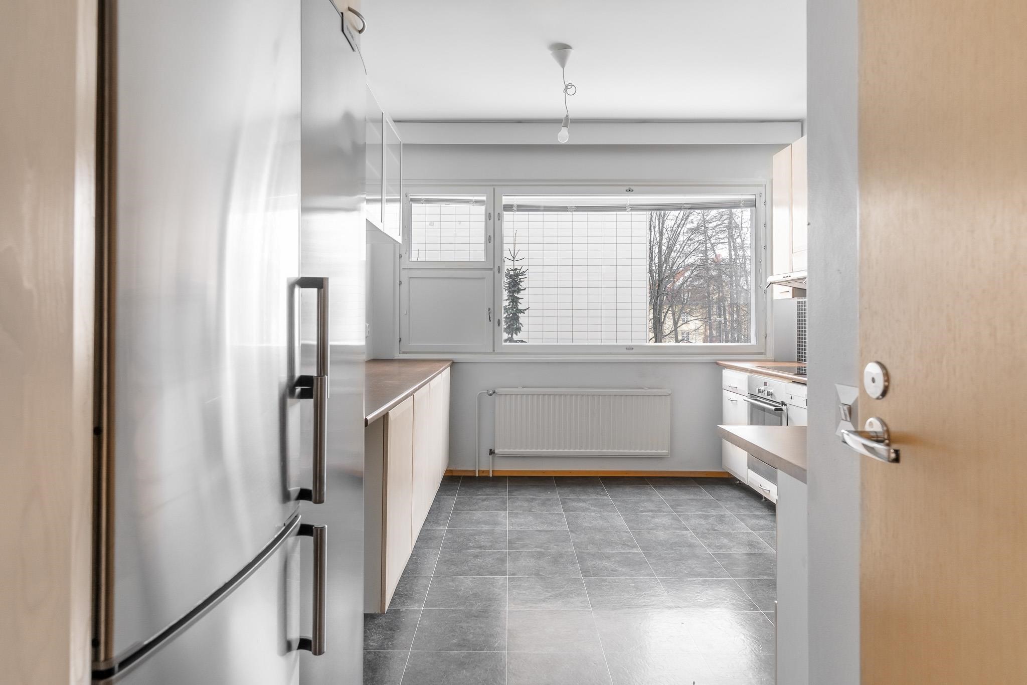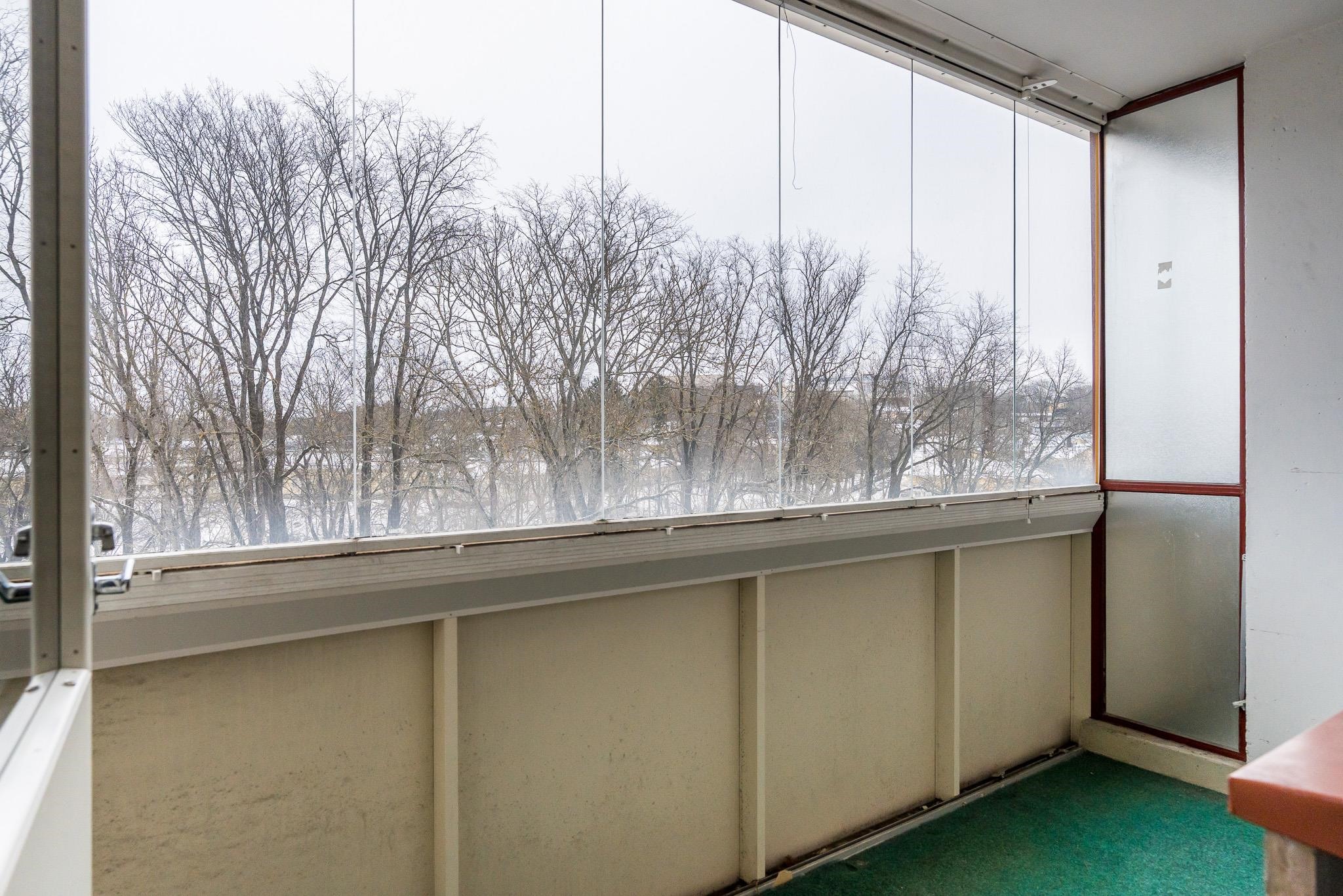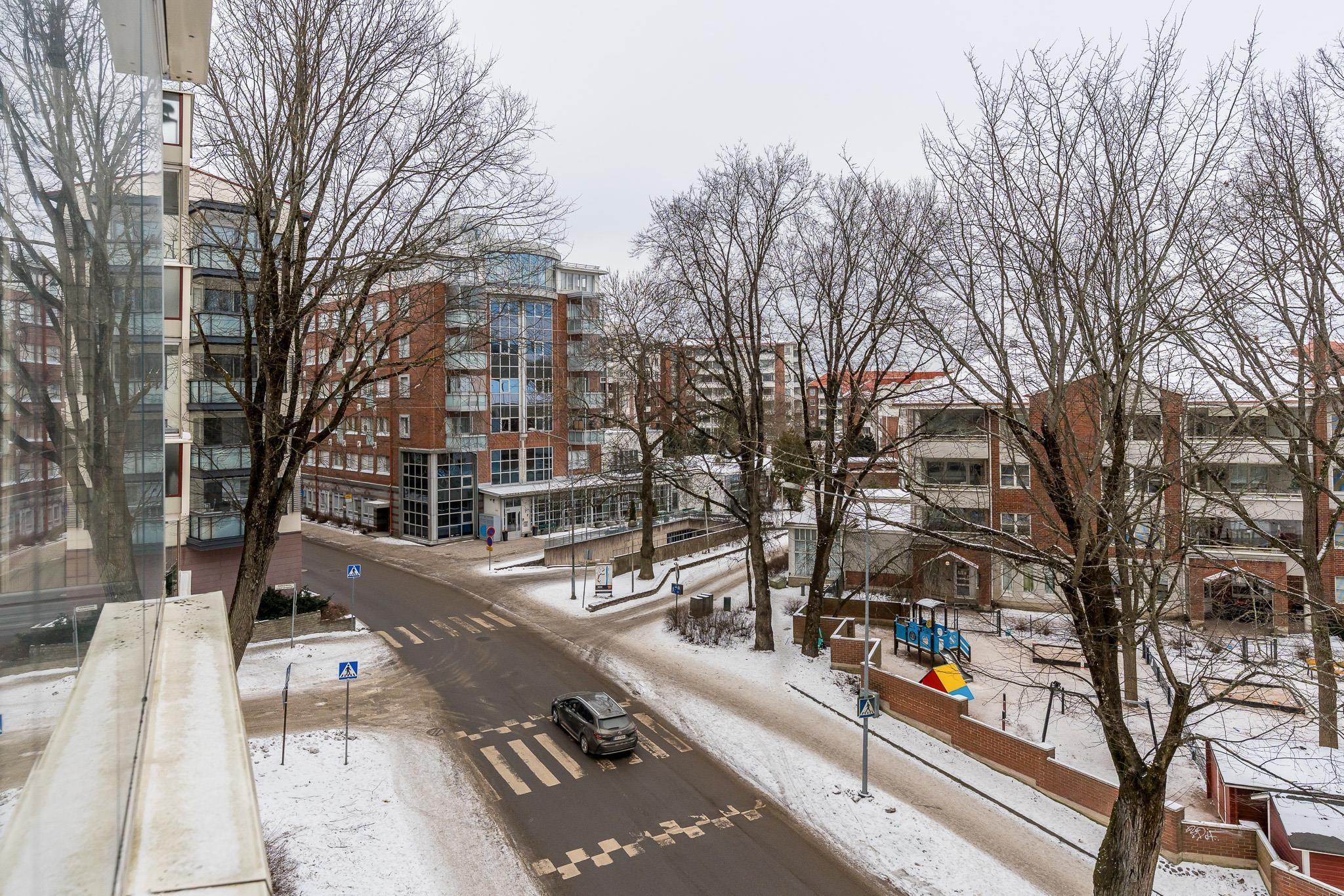 - Parveke Kutomonkadun suuntaan (koillinen), keittiö ja toinen makuuhuone sisäpihan suuntaan (lounas)