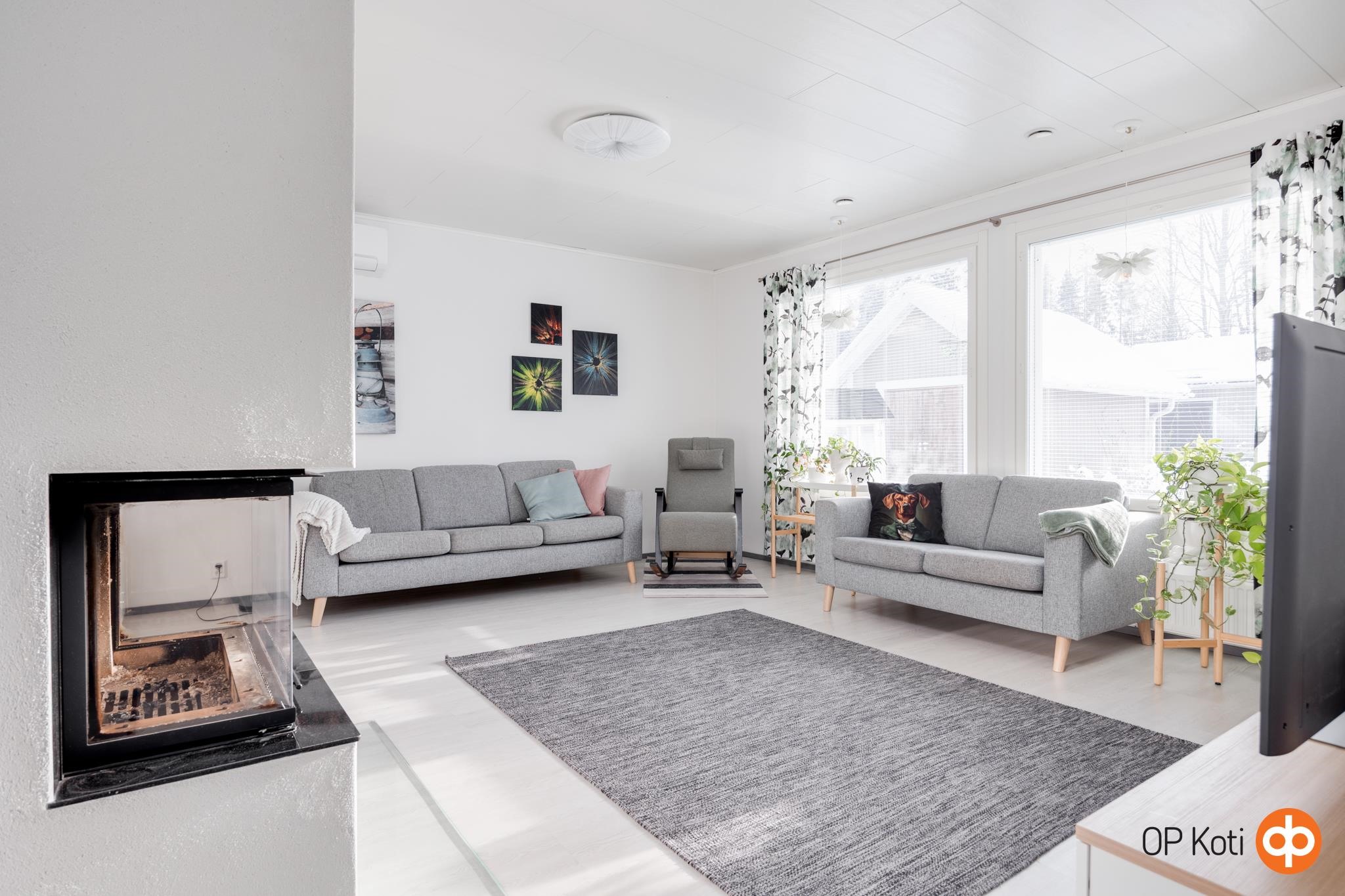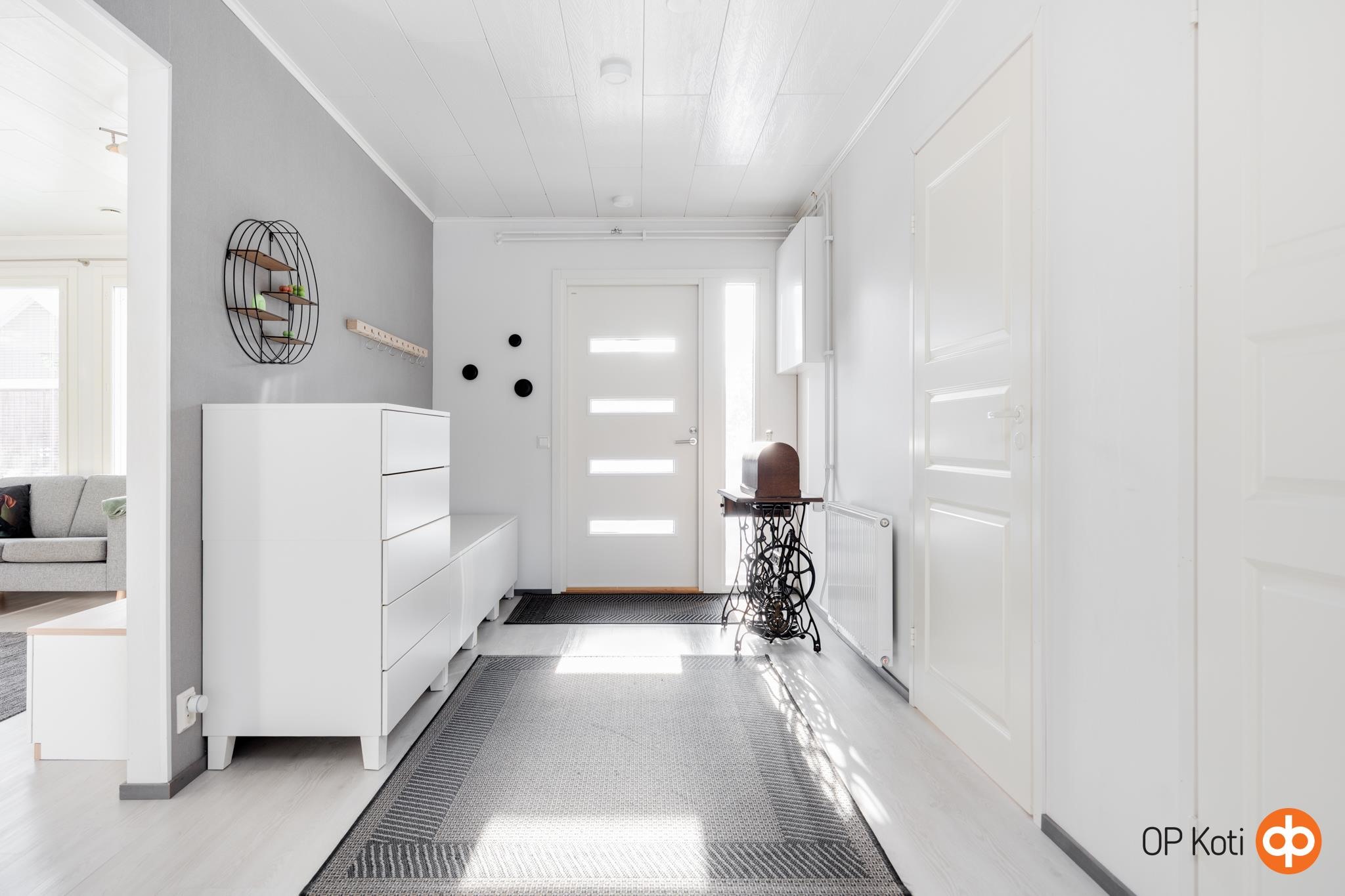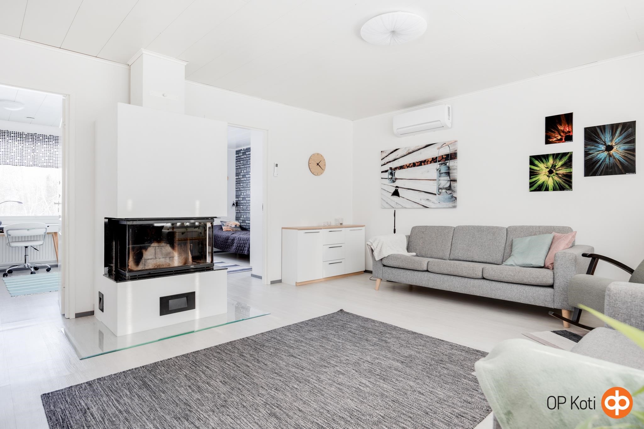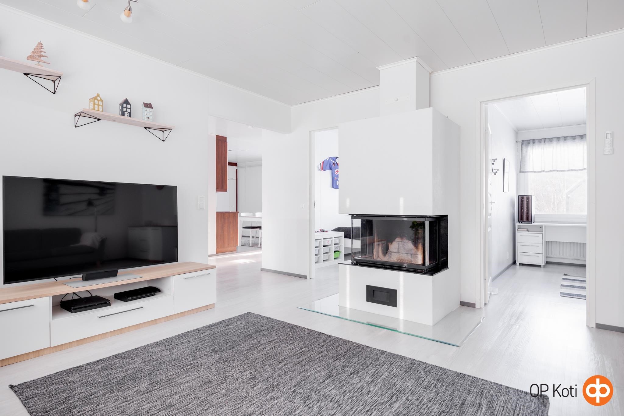 Tämä koti tarjoaa puitteet monenlaiselle perheelle. Kolme makuuhuonetta, erillinen työhuone ja avara olohuone luovat mahdollisuudet sekä rauhalliseen arkeen että yhteiseen ajanviettoon. Keittiö on käytännöllinen ja remontoitu vastaamaan nykypäivän tarpeita, ja olohuoneen yhteyteen muurattu uusi takka tuo lämpöä ja tyylikkyyttä. Kaksi wc:tä, tilava pesuhuone ja oma sauna helpottavat arjen sujuvuutta. Arkieteinen tekee kotiin saapumisesta toimivaa, ja myös säilytystilaa kodissa on runsaasti.