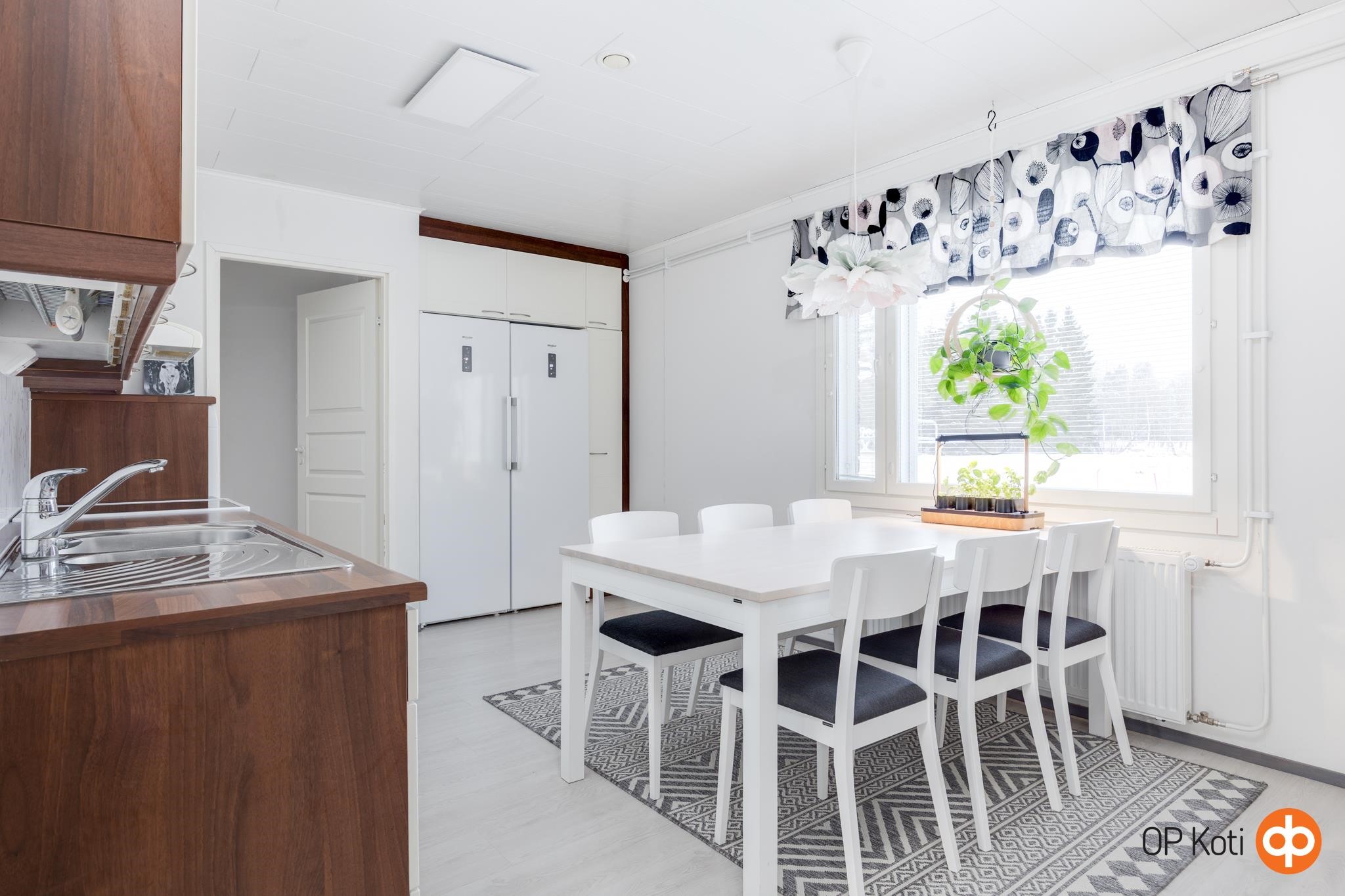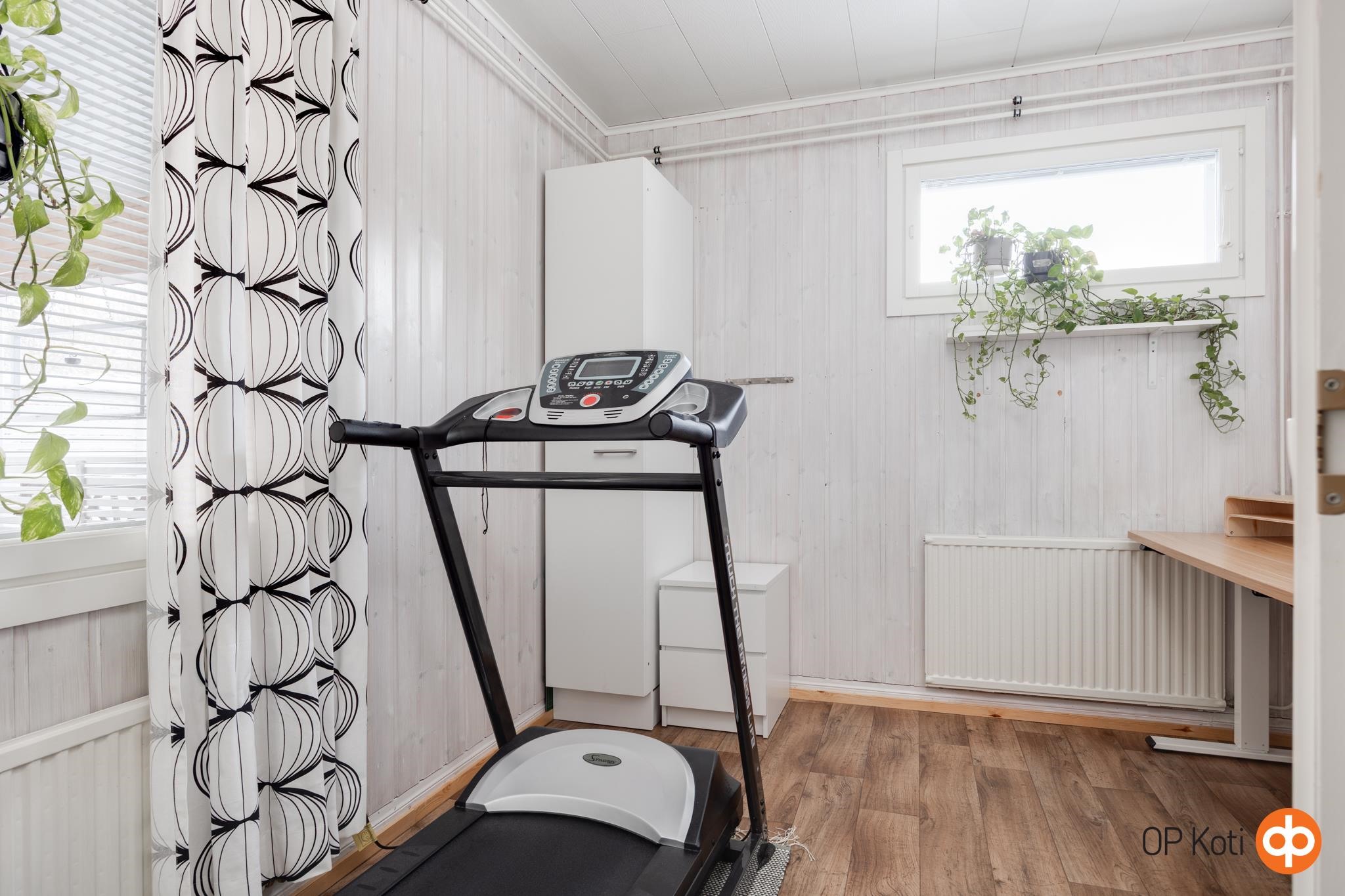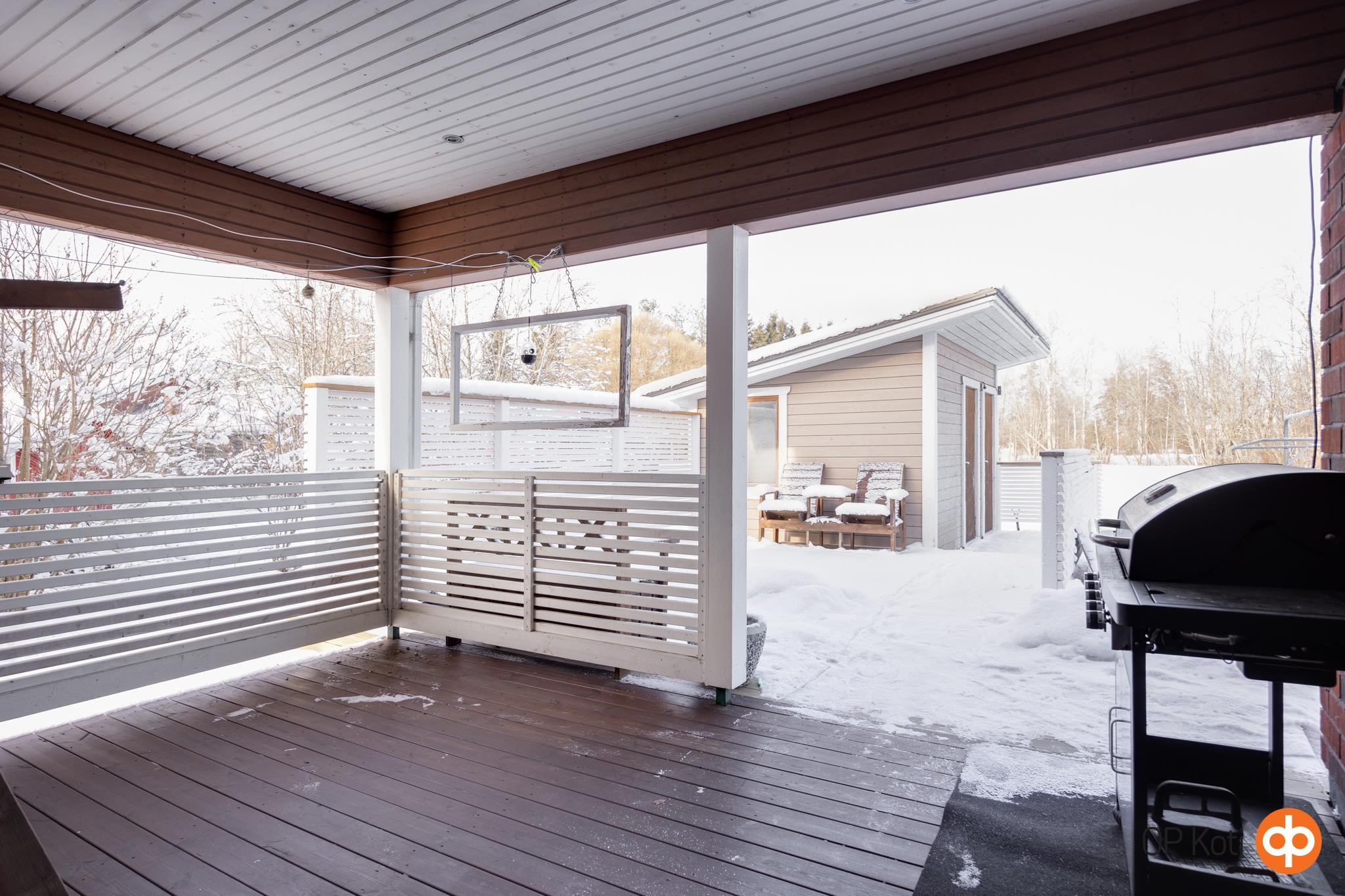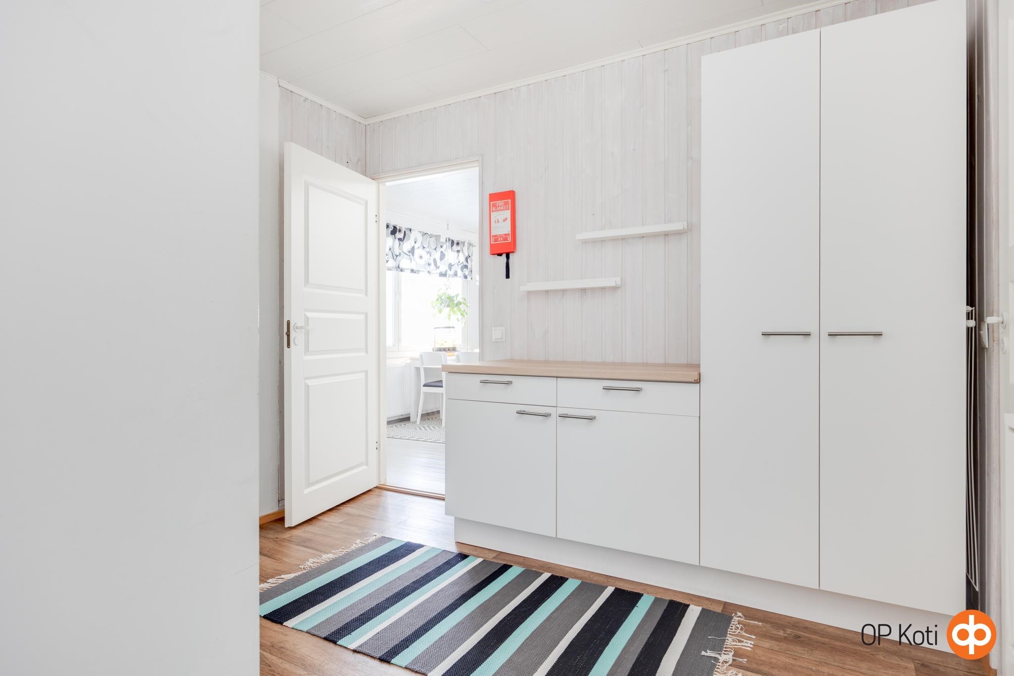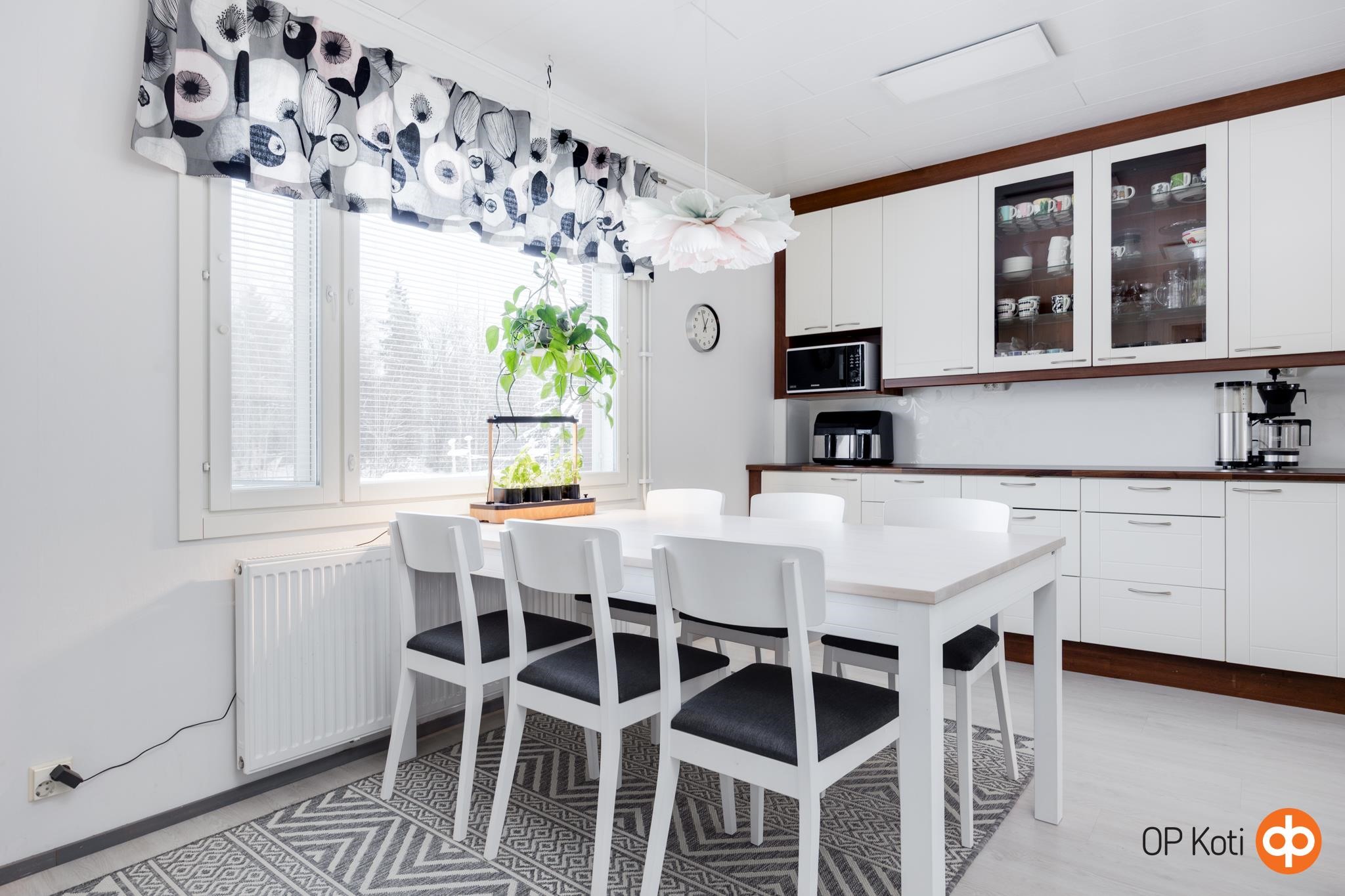 Tämä koti tarjoaa puitteet monenlaiselle perheelle. Kolme makuuhuonetta, erillinen työhuone ja avara olohuone luovat mahdollisuudet sekä rauhalliseen arkeen että yhteiseen ajanviettoon. Keittiö on käytännöllinen ja remontoitu vastaamaan nykypäivän tarpeita, ja olohuoneen yhteyteen muurattu uusi takka tuo lämpöä ja tyylikkyyttä. Kaksi wc:tä, tilava pesuhuone ja oma sauna helpottavat arjen sujuvuutta. Arkieteinen tekee kotiin saapumisesta toimivaa, ja myös säilytystilaa kodissa on runsaasti.