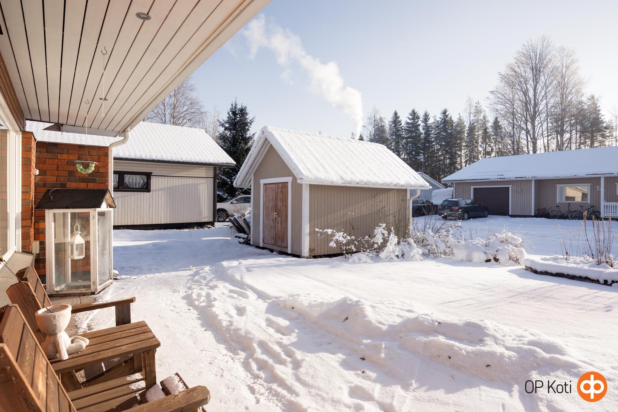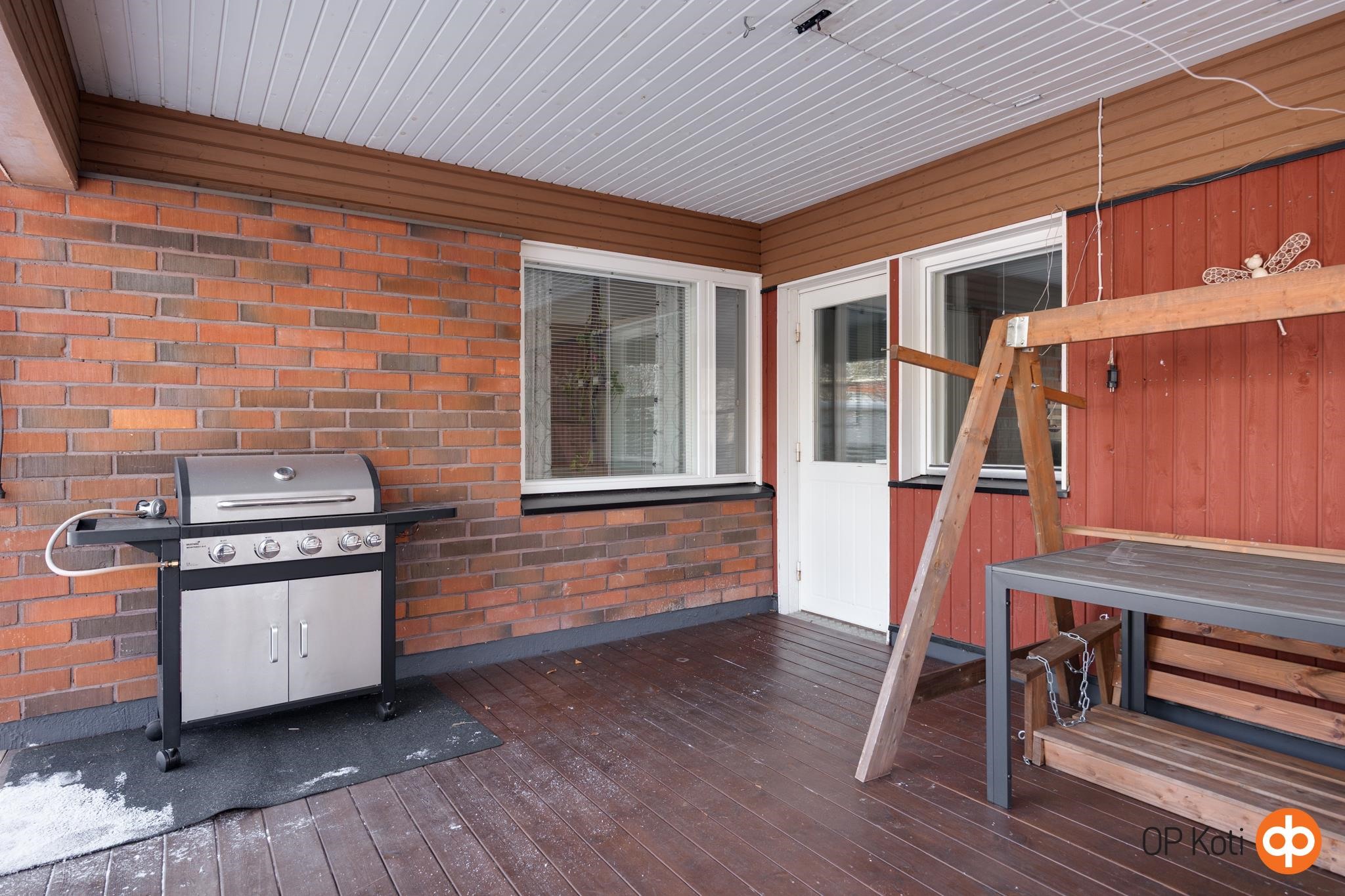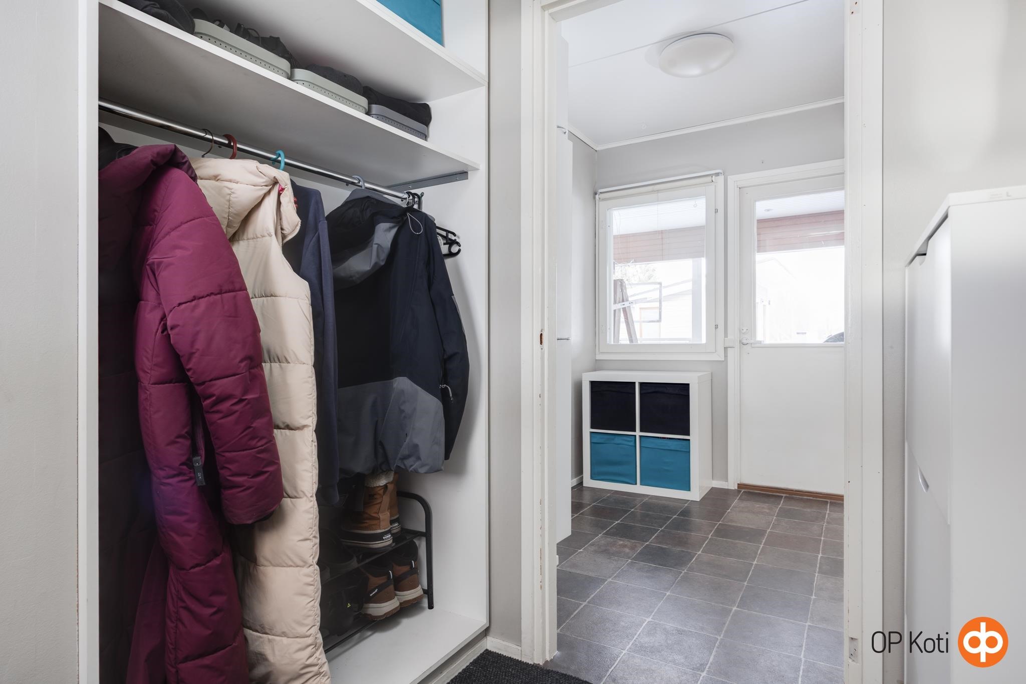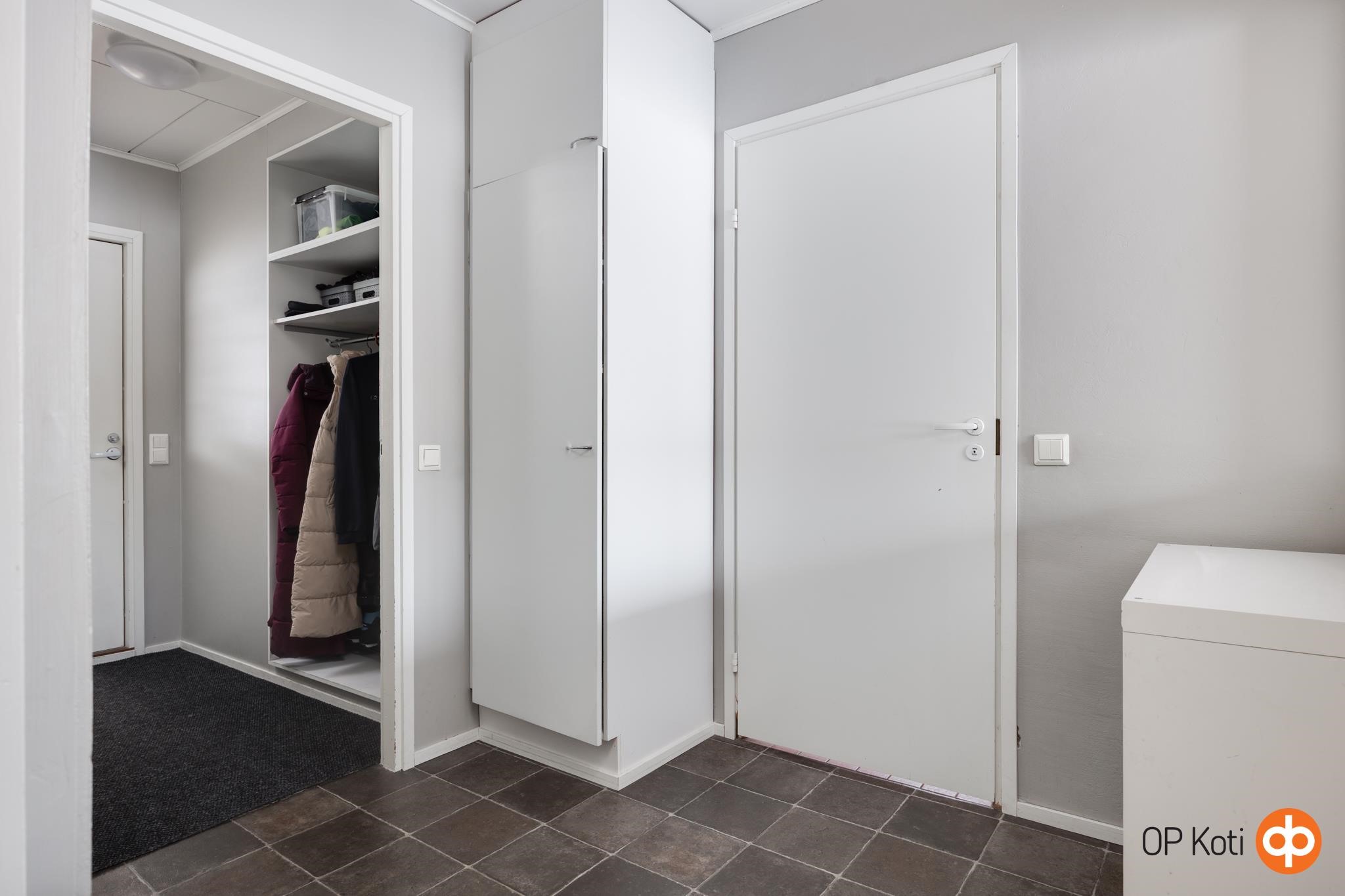 Tämä koti tarjoaa puitteet monenlaiselle perheelle. Kolme makuuhuonetta, erillinen työhuone ja avara olohuone luovat mahdollisuudet sekä rauhalliseen arkeen että yhteiseen ajanviettoon. Keittiö on käytännöllinen ja remontoitu vastaamaan nykypäivän tarpeita, ja olohuoneen yhteyteen muurattu uusi takka tuo lämpöä ja tyylikkyyttä. Kaksi wc:tä, tilava pesuhuone ja oma sauna helpottavat arjen sujuvuutta. Arkieteinen tekee kotiin saapumisesta toimivaa, ja myös säilytystilaa kodissa on runsaasti.