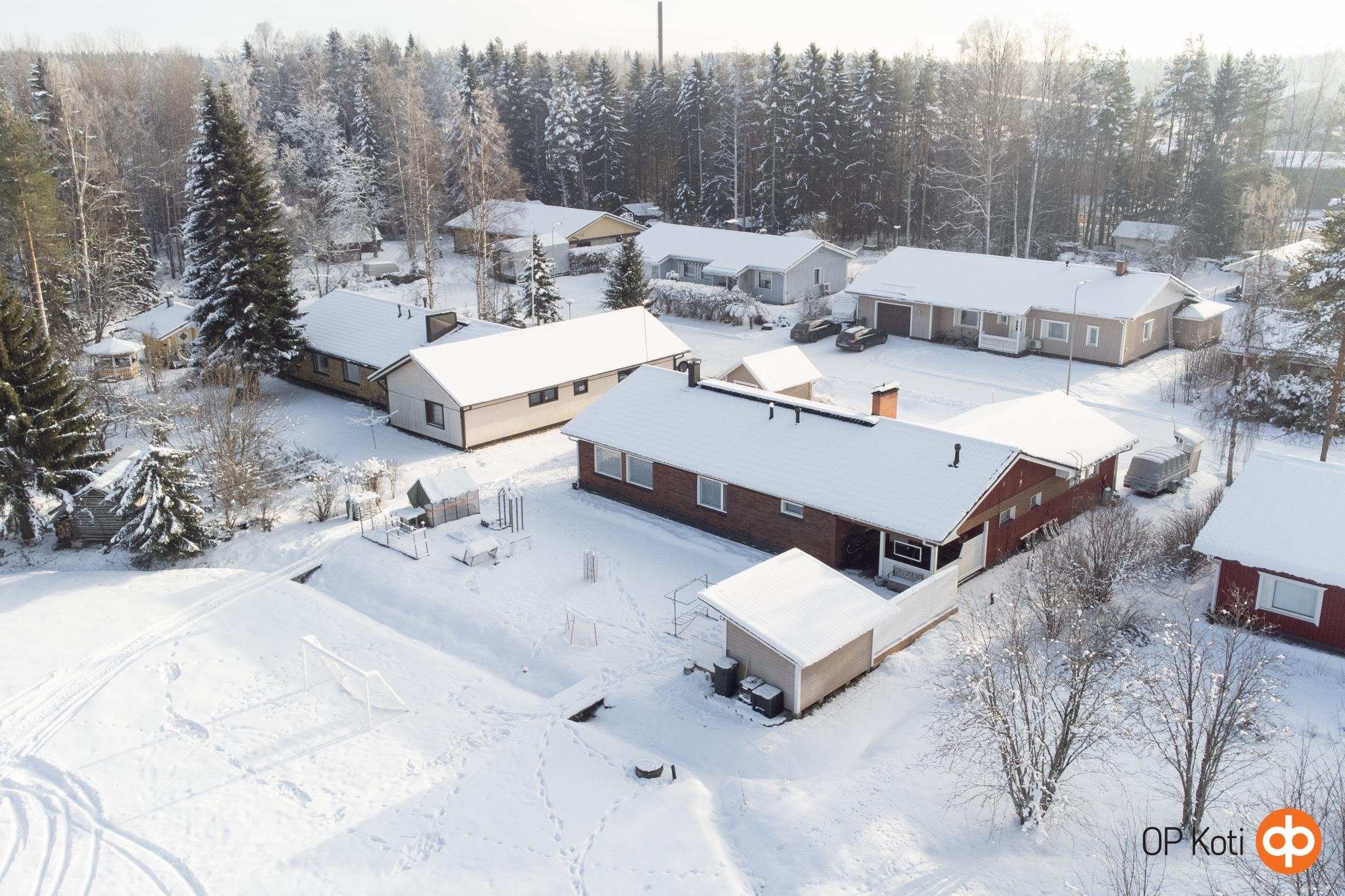 Alueen sijainti on erinomainen: palvelut, koulut ja päiväkodit ovat kävelymatkan päässä, mutta koti sijaitsee rauhallisella ja turvallisella päättyvällä tiellä. Takapiha avautuu puistoon, joten näkymät ovat avarat ja yksityisyyttä riittää. Hyvät liikenneyhteydet ja selkeä tieyhteys tuovat arkeen helppoutta.