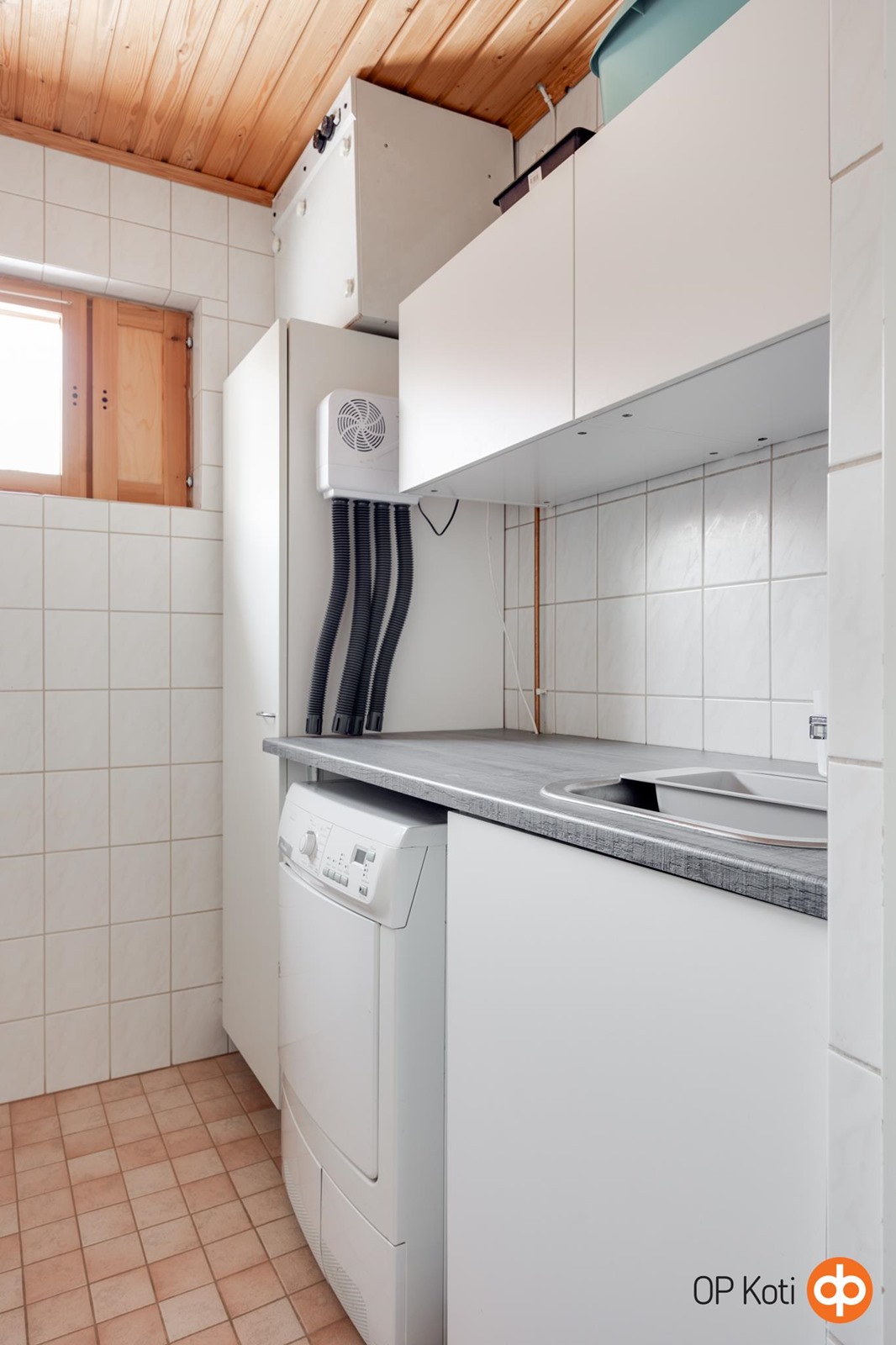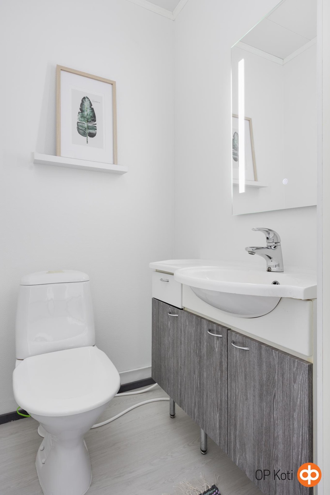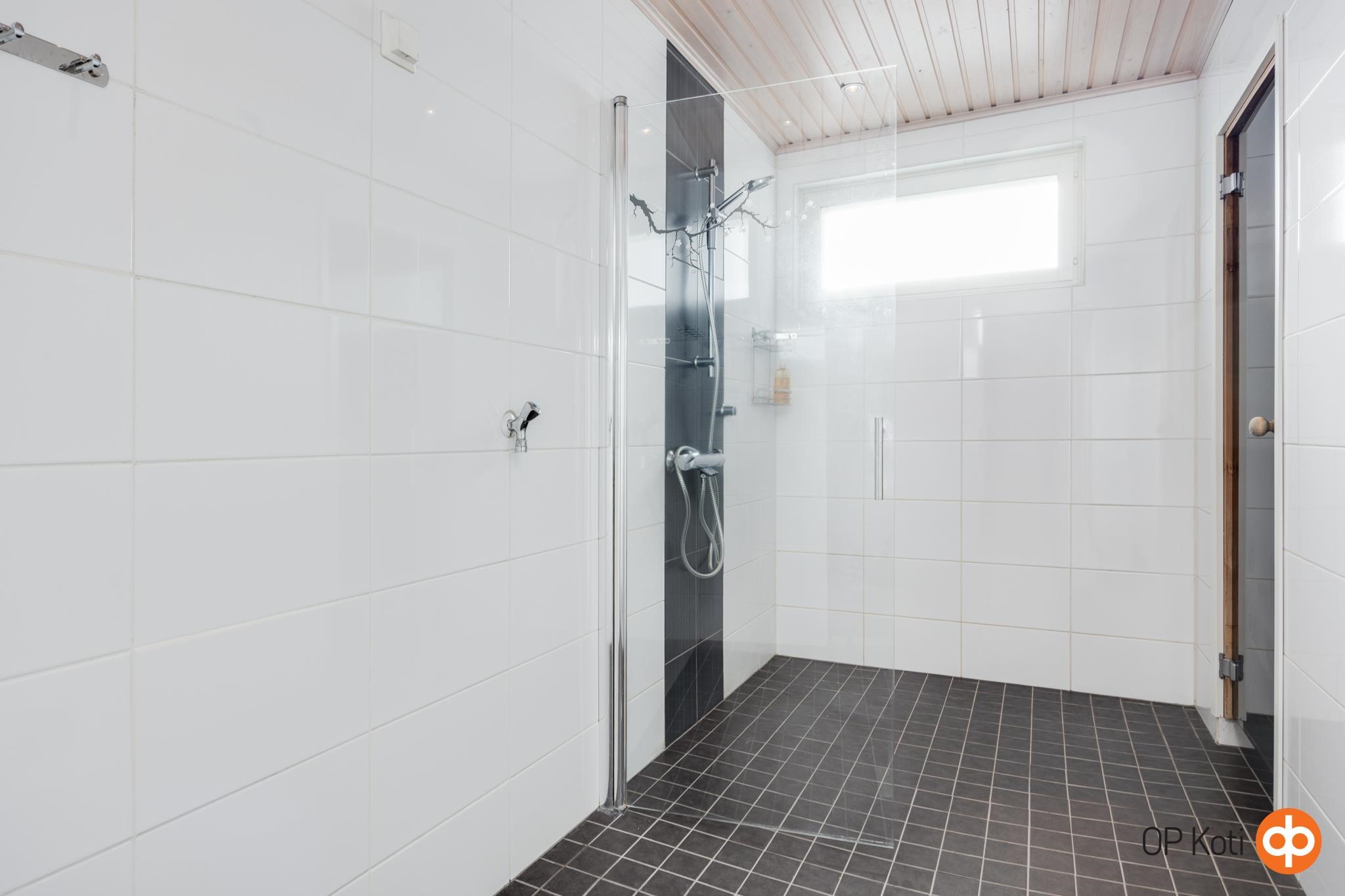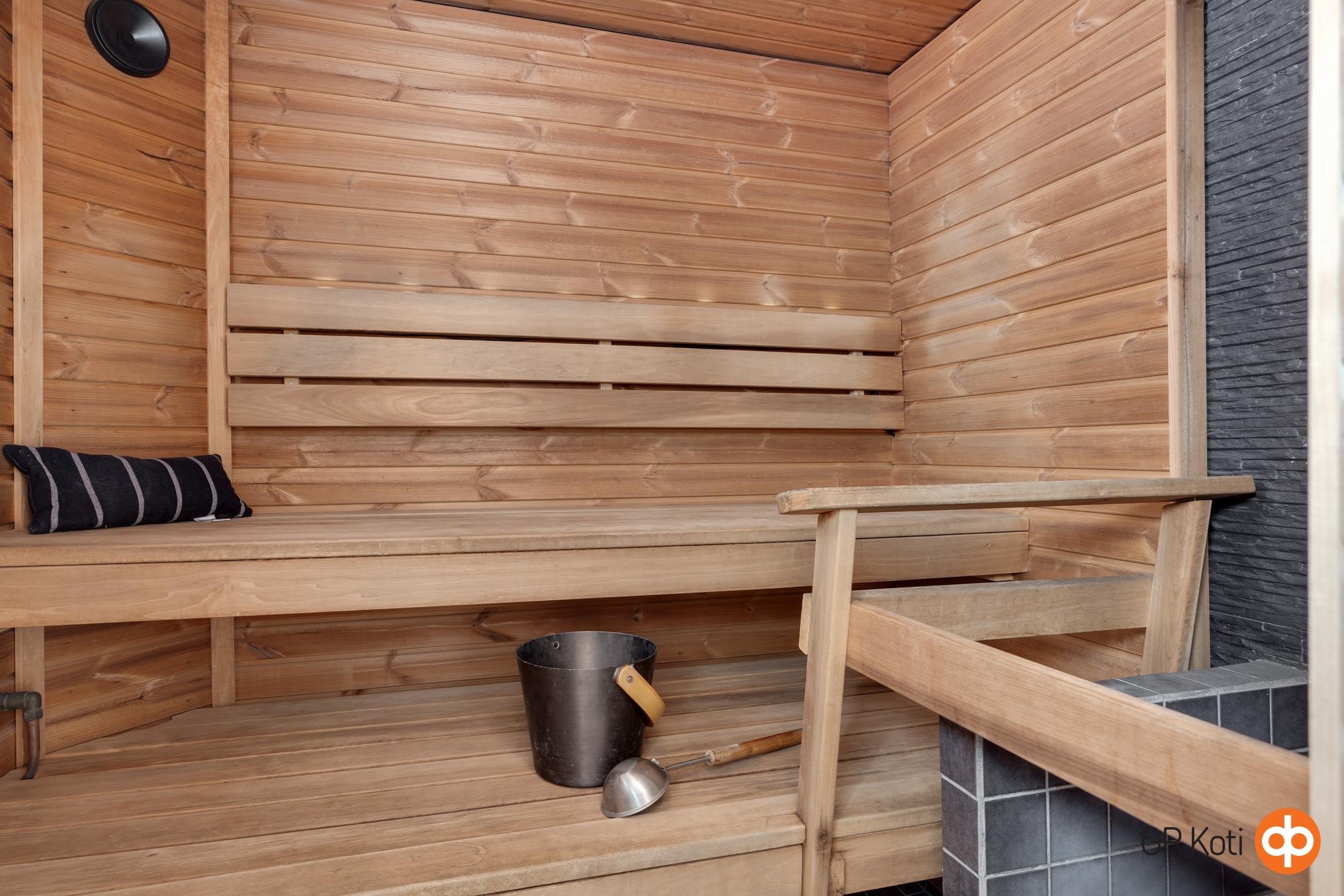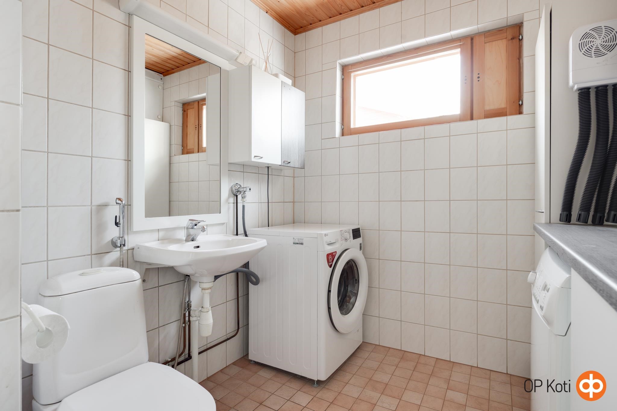 - Sauna, puukiuas, kylpyhuone, erillinen wc 2 kpl, suihku, suihkuseinä, peilit, peilikaappi, kaapit, allaskaappi, pesukoneliitäntä, lattialämmitys, kiinteät valaisimet. Pesuhuone ja sauna remontoitu vuonna 2013. Toinen wc pintaremontoitu 2018.