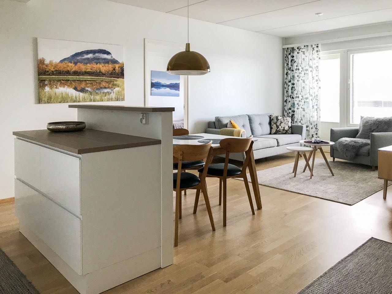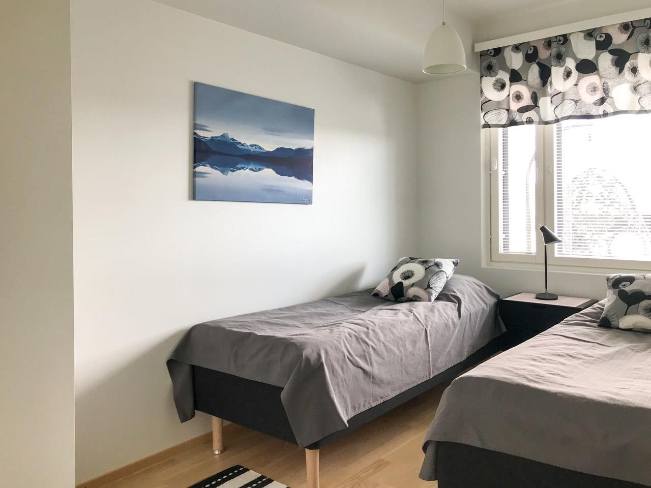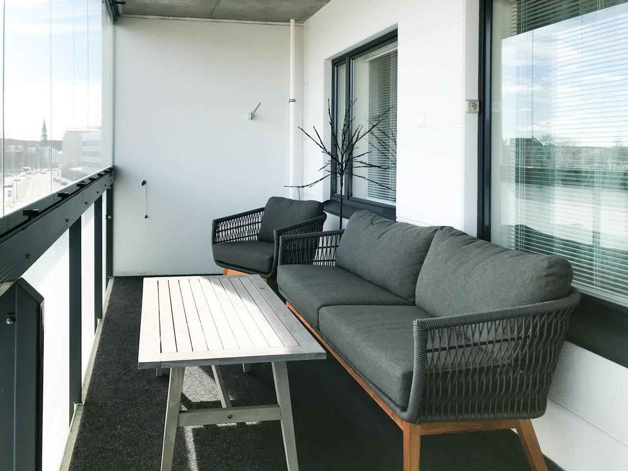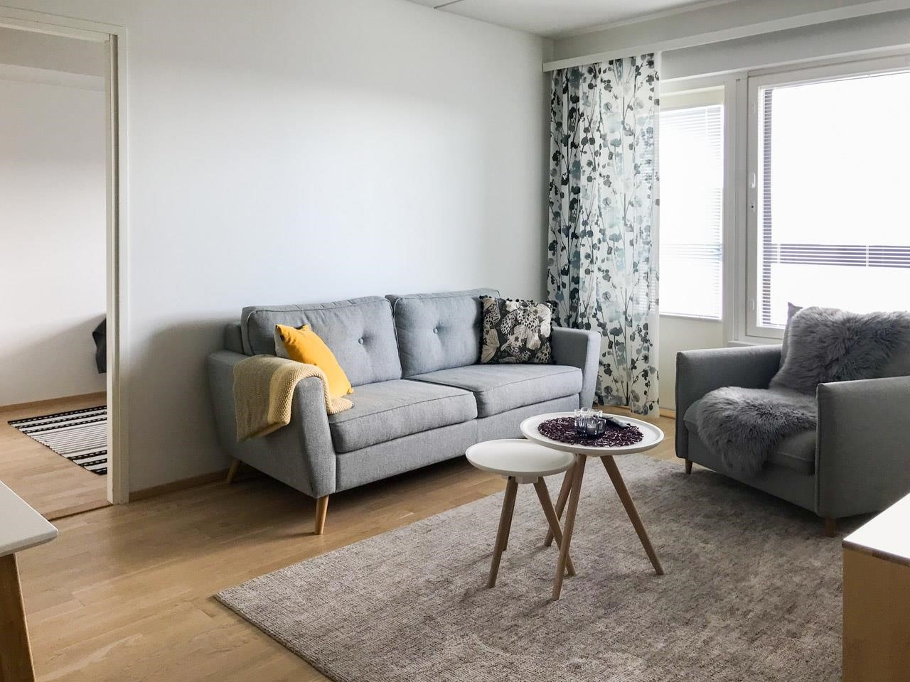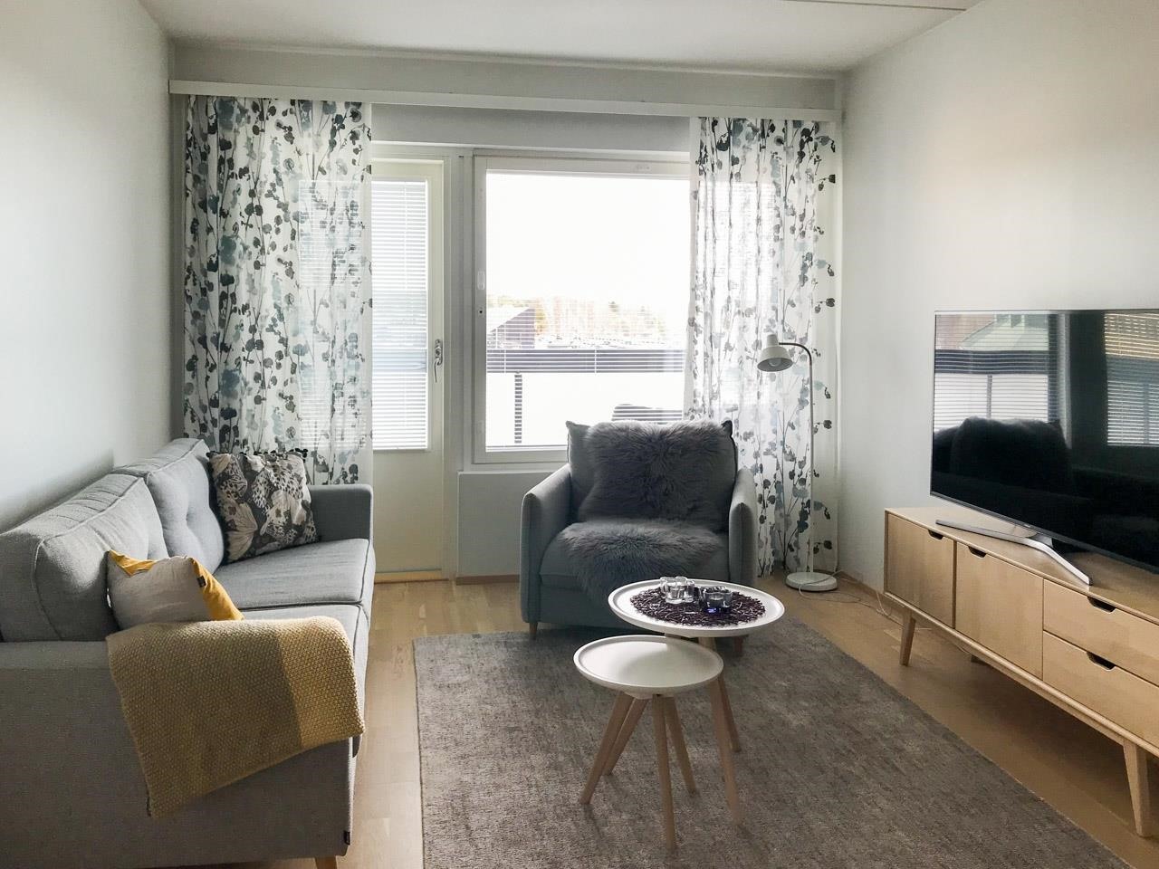 Tyylikkäästi sisustettu ja valmiiksi kalustettu kolmio on mahdollista vuokrata määräaikaisella sopimuksella lokakuun loppuun asti. Vuokraan sisältyy myös autohallipaikka! Valkoisen keittiön ja avaran olohuoneen välissä on käytännöllinen saareke, jonka edessä on neljän hengen ruokailyryhmä. Olohuoneessa on mukava sohva, jossa katsella tv:tä. Kummassakin makuuhuoneissa on kaksi erillistä sänkyä. Kylpyhuoneessa on valmiina pyykinpesukone ja alakerrassa kuivaushuone. Lasitetulta parvekkeelta on mahtavat näkymät Ounaskoskelle. Riipputuolissa on mukava vilvoitella oman saunan löylyjen jälkeen. Keskeinen sijainti tarkoittaa erinomaisia lähipalveluita ja monipuolisia mahdollisuuksia, olitpa sitten lähdössä piipahtamaan ympäri vuorokauden auki olevaan lähikauppaan, kulttuuritapahtumiin tai vaikka kävelemään jokirantaan.