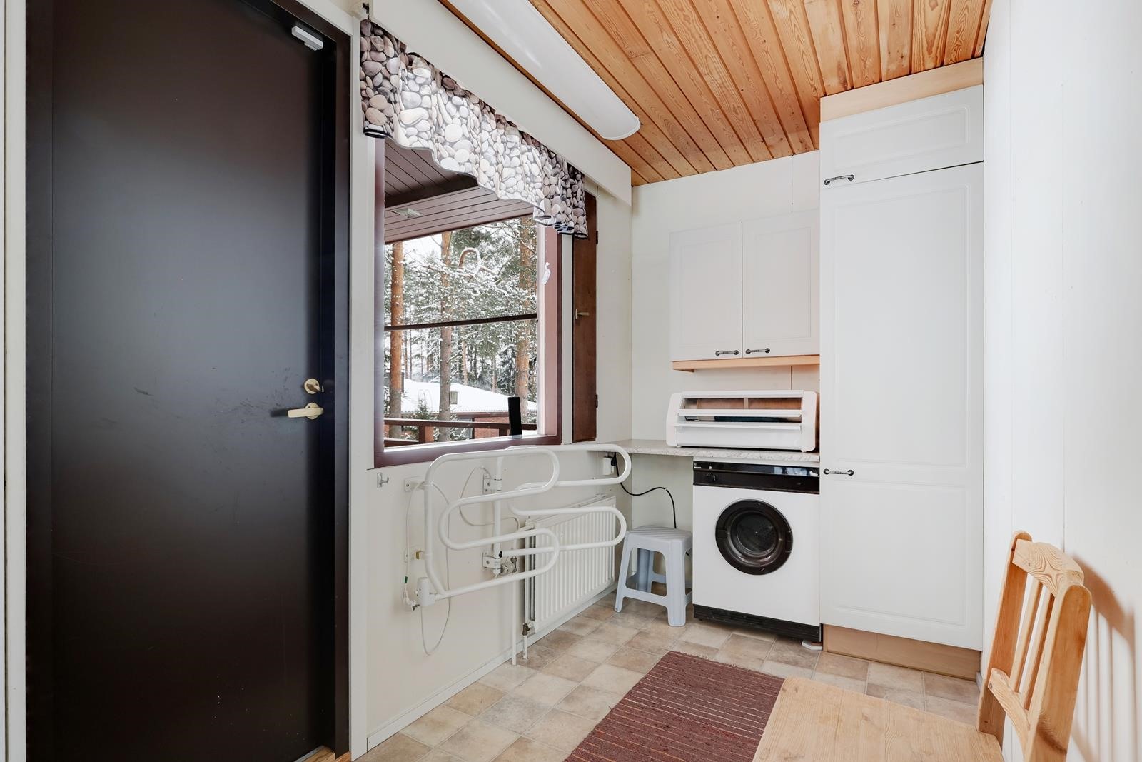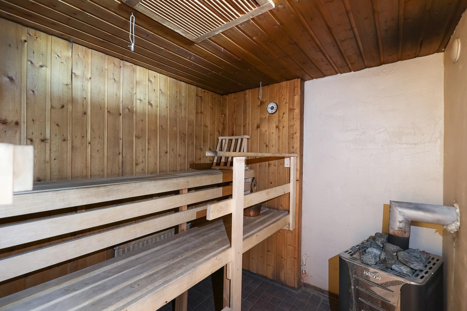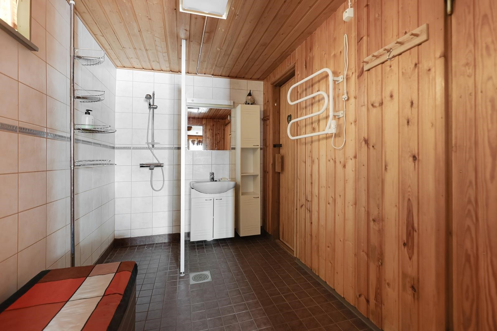 - Sauna, puukiuas, kylpyhuone, erillinen wc, suihku, suihkuseinä, pesukoneliitäntä, lattialämmitys, kiinteät valaisimet.