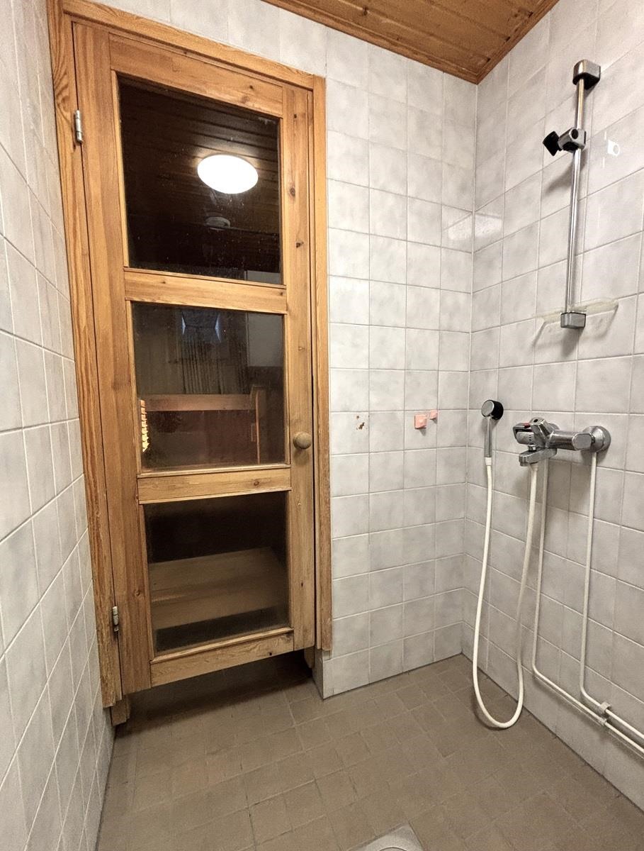 - Saunassa on sähkökiuas, kylpyhuone/wc:ssä suihku, peilikaappi, pesukoneliitäntä, lattialämmitys ja tuuletusikkuna.