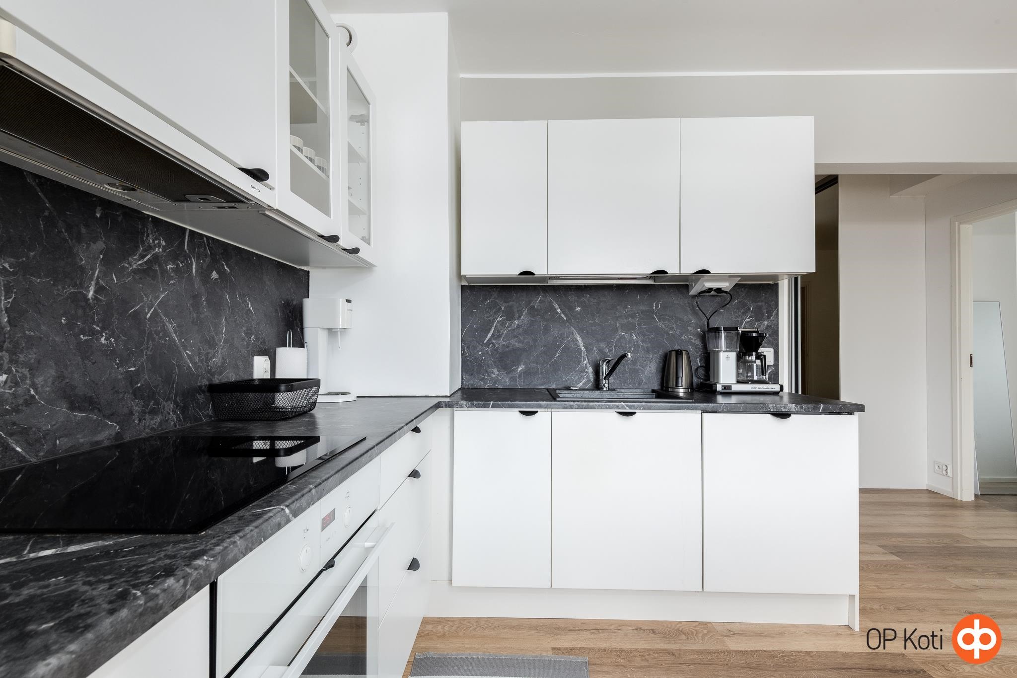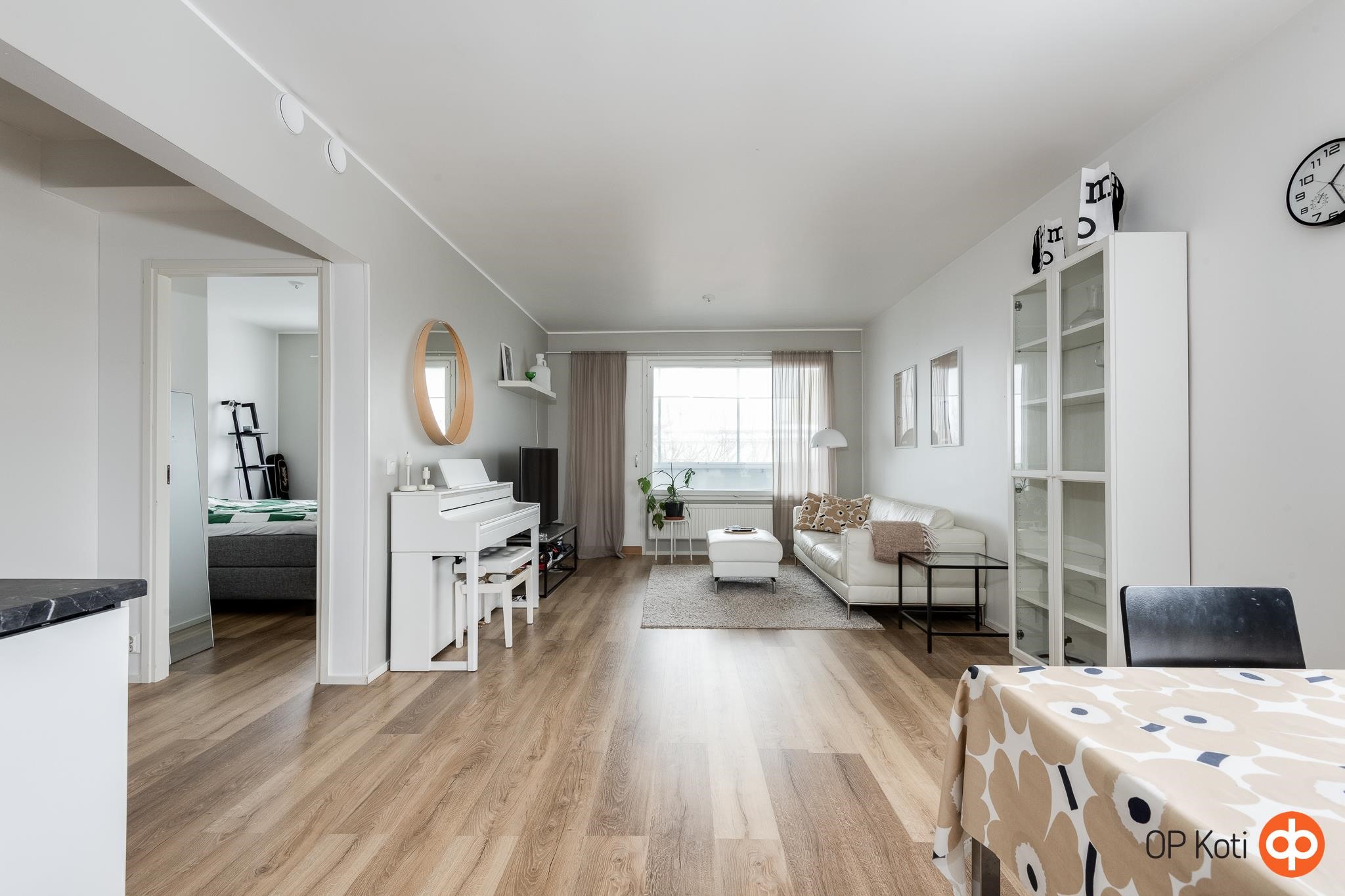 Tämä koti sopii mainiosti sekä pariskunnalle, yksinasuvalle että laatua ja toimivuutta kaipaavalle sijoittajalle. Selkeä pohjaratkaisu tarjoaa helppoa arkea: keittiössä modernit kodinkoneet, kuten induktiotaso ja integroitu astianpesukone, yhdistyvät tyylikkäisiin pintoihin. Olohuoneen ja keittiön avaruus antaa mahdollisuuksia sisustaa tilasta juuri sinun näköisesi. Makuuhuoneen vastapäätä löytyy tilava, täysin uudistettu kylpyhuone lattialämmityksineen ja pesukoneliitäntöineen.