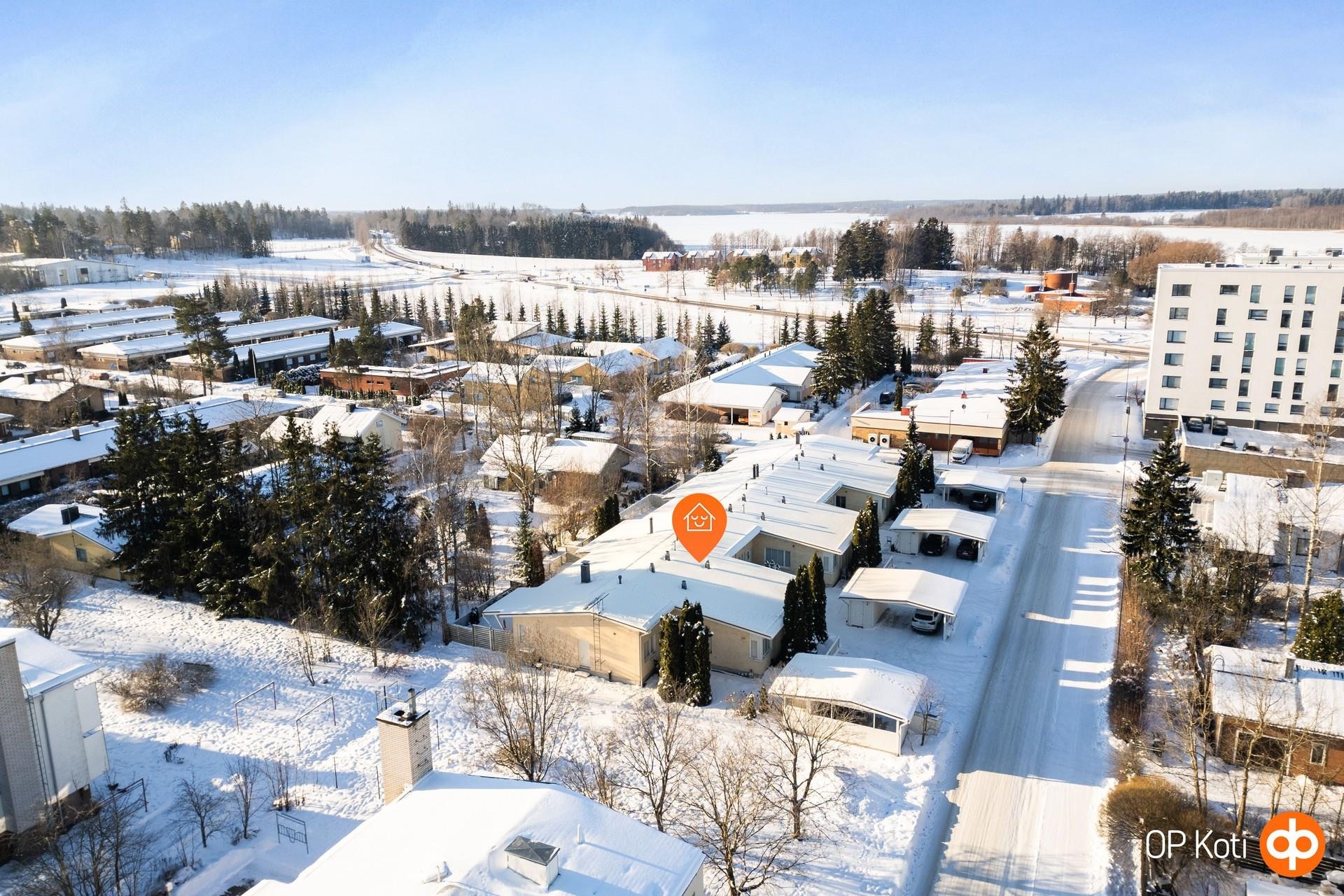 Kaikki keskustan palvelut ja kaupat lähellä, rantapuisto vieressä, josta löytyy kävely- ja pyöräilyreittejä, uimaranta, talvella hiihtoladut, luistelurata, avantouintipaikka, kahviloita ja nuorille skeittauspaikka ja lapsille leikkipuisto.