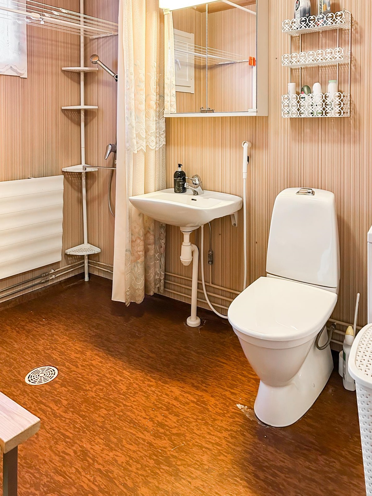 - Sauna, sähkökiuas, kylpyhuone jossa wc, suihku, peilikaappi, pesukoneliitäntä, kiinteät valaisimet.