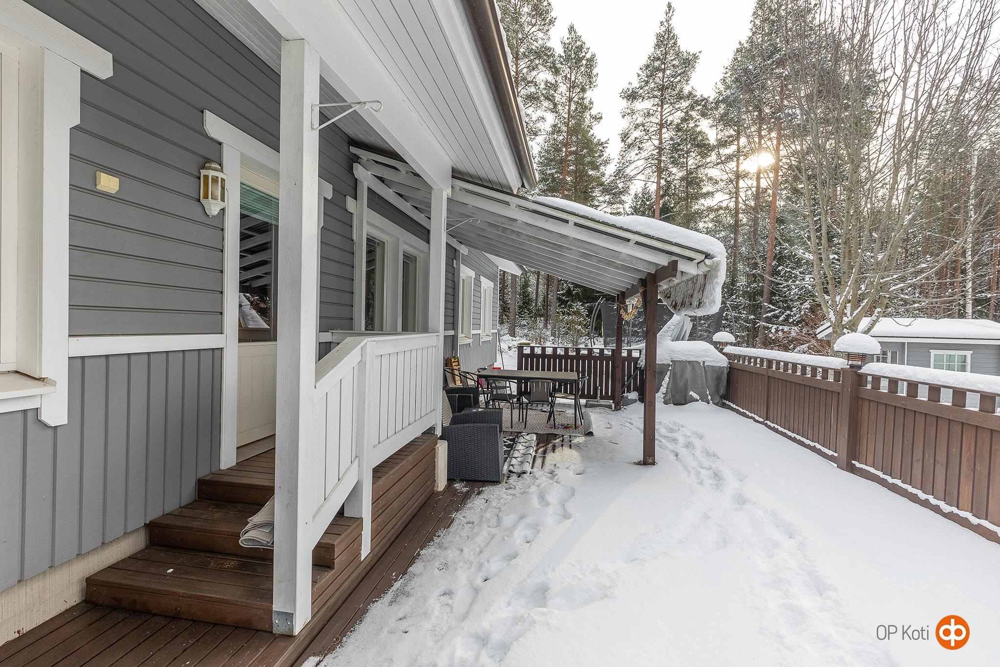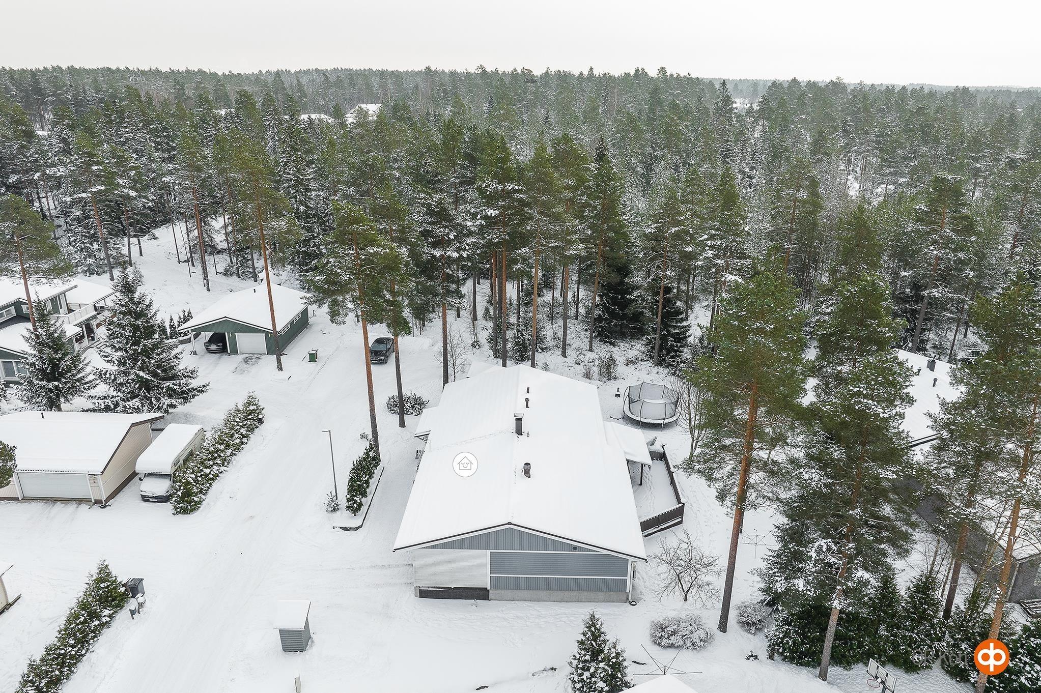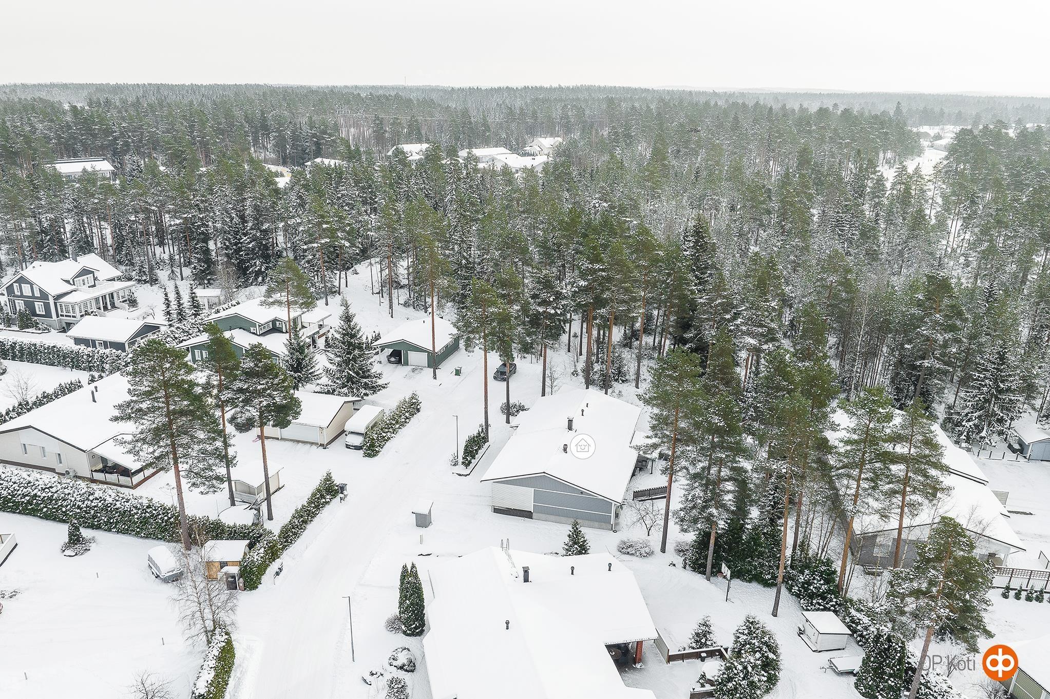 Päättyvän tien sijainti takaa rauhallisen ja turvallisen asuinympäristön uusille asukkaille. Tasainen, terassein varustettu piha rajoittuu metsään ja tarjoaa suoran yhteyden ulkoilumaastoihin.