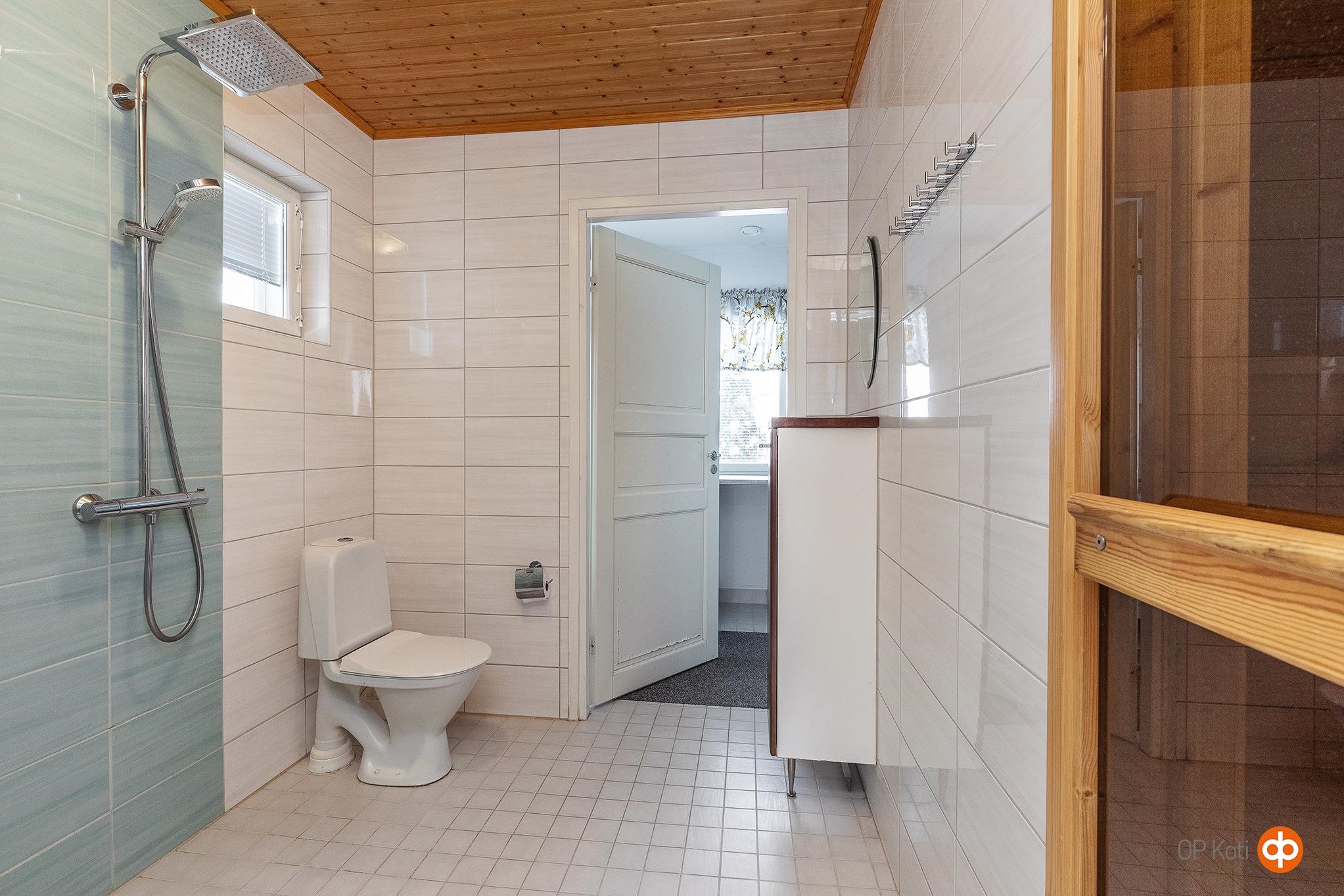 - Sauna, sähkökiuas, kylpyhuone, erillinen wc, suihku 2 kpl, suihkuseinä, peilikaappi erill wc:ssä, kaapit pesuhuoneessa, allaskaappi erill wc:ssä, pesukoneliitäntä, lattialämmitys, kiinteät valaisimet.