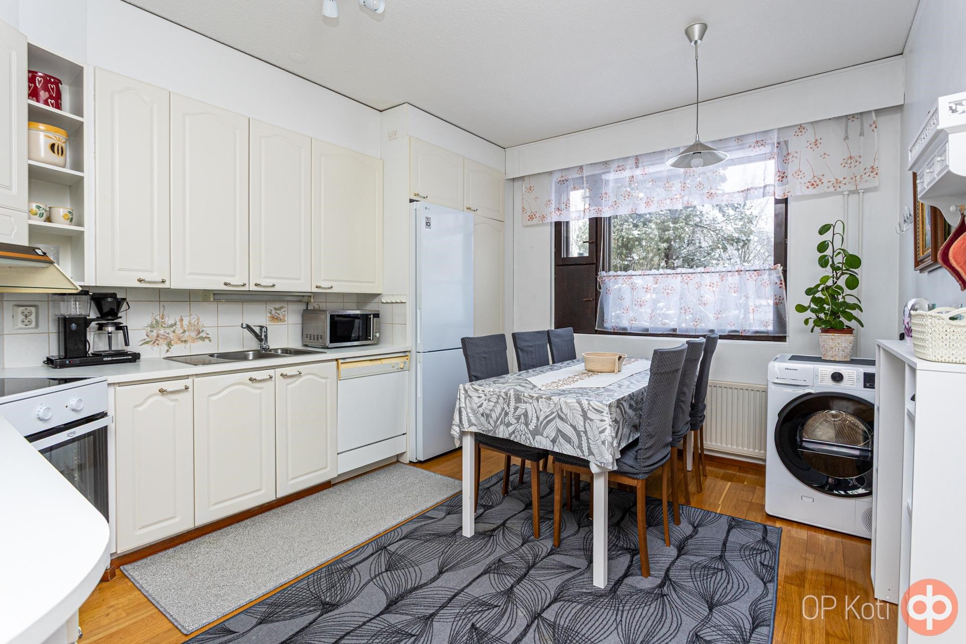 Säilytystilaa on reilusti kiinteästi asennetuista kaapistoista sekä vaatehuoneessa. Kylpyhuone ja sauna uusittu vuonna 2025. Keittiössä on uusittu jääkaappipakastin ja induktioliesi.