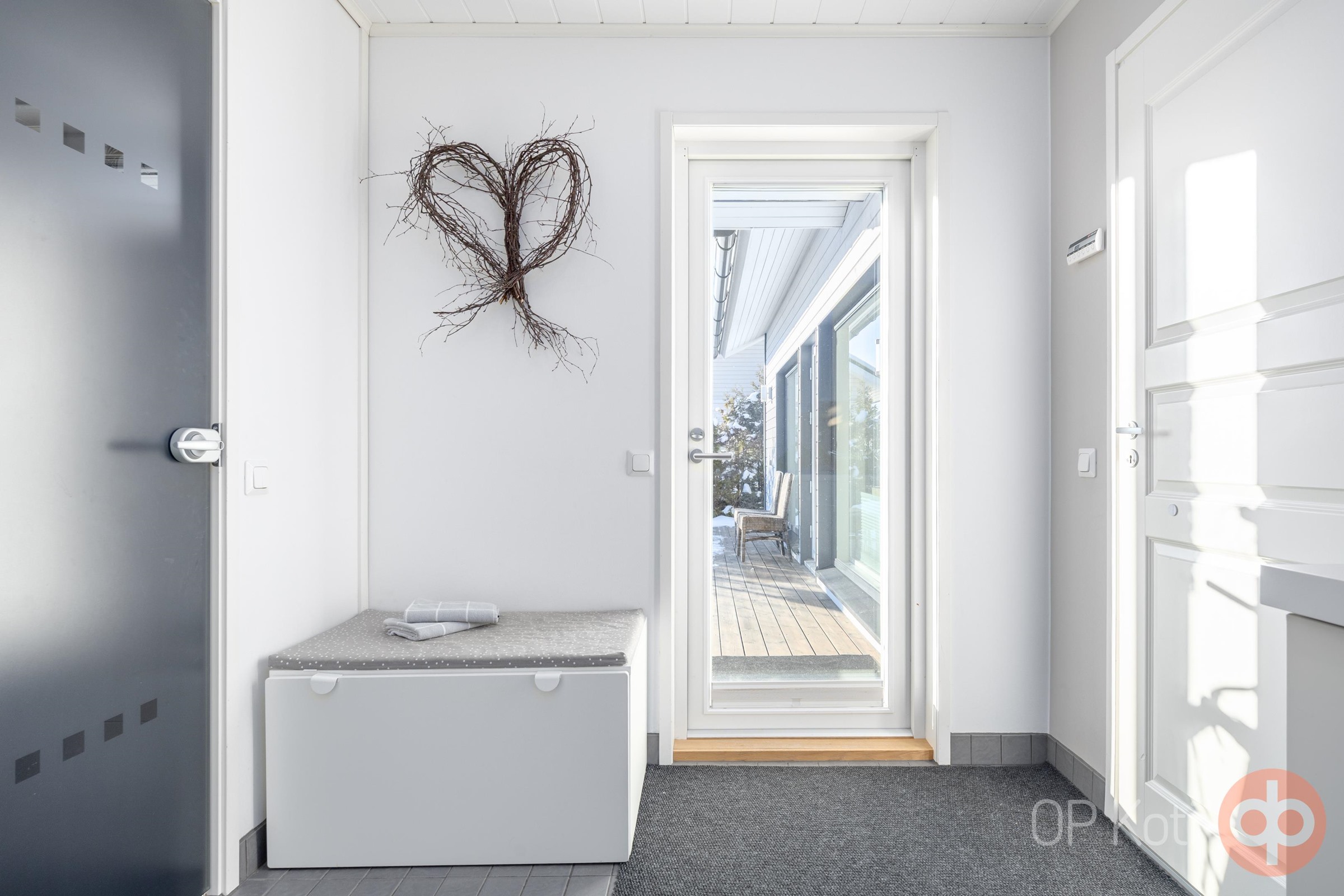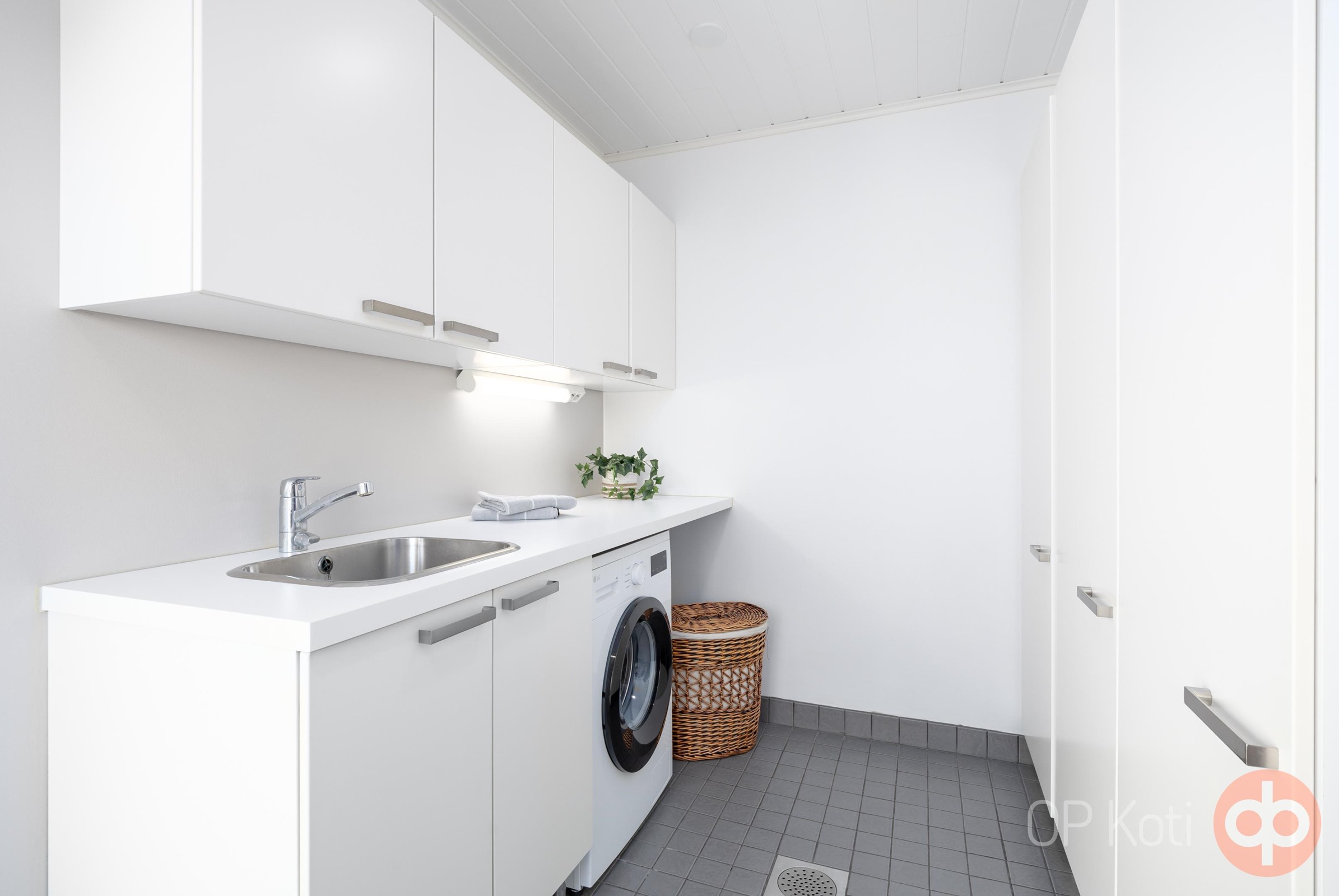Erityisenä plussana koiratalouksille: kodinhoitohuoneessa on oma sisäänkäynti omalta aidatulta pihalta, jonka ansiosta lemmikin kanssa ulkoilu ja tassujen pesu käyvät helposti ja siististi, täällä myös koira tuntee olonsa tervetulleeksi!