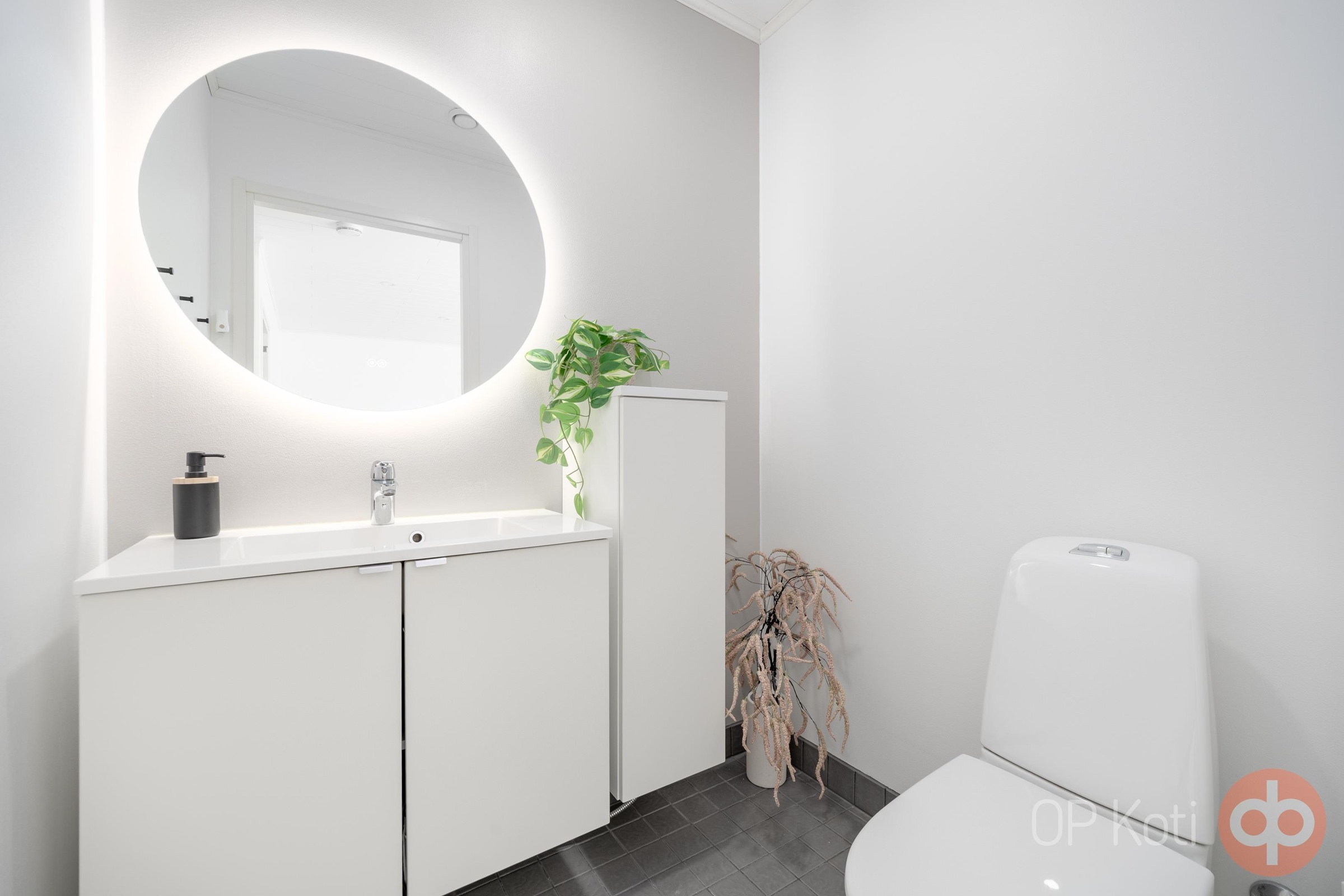 - Sauna, sähkökiuas, kylpyhuone jossa wc, erillinen wc, suihku, suihkuseinä, peilikaappi, kaapit, allaskaappi, pesukoneliitäntä kodinhoitohuoneessa, lattialämmitys, kiinteät valaisimet.