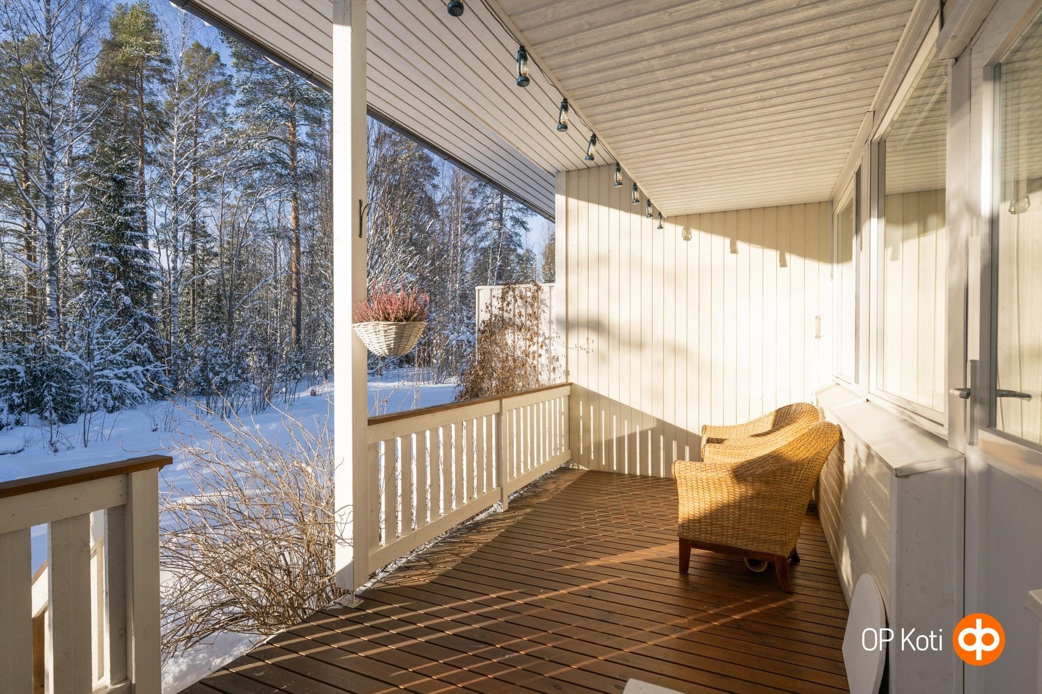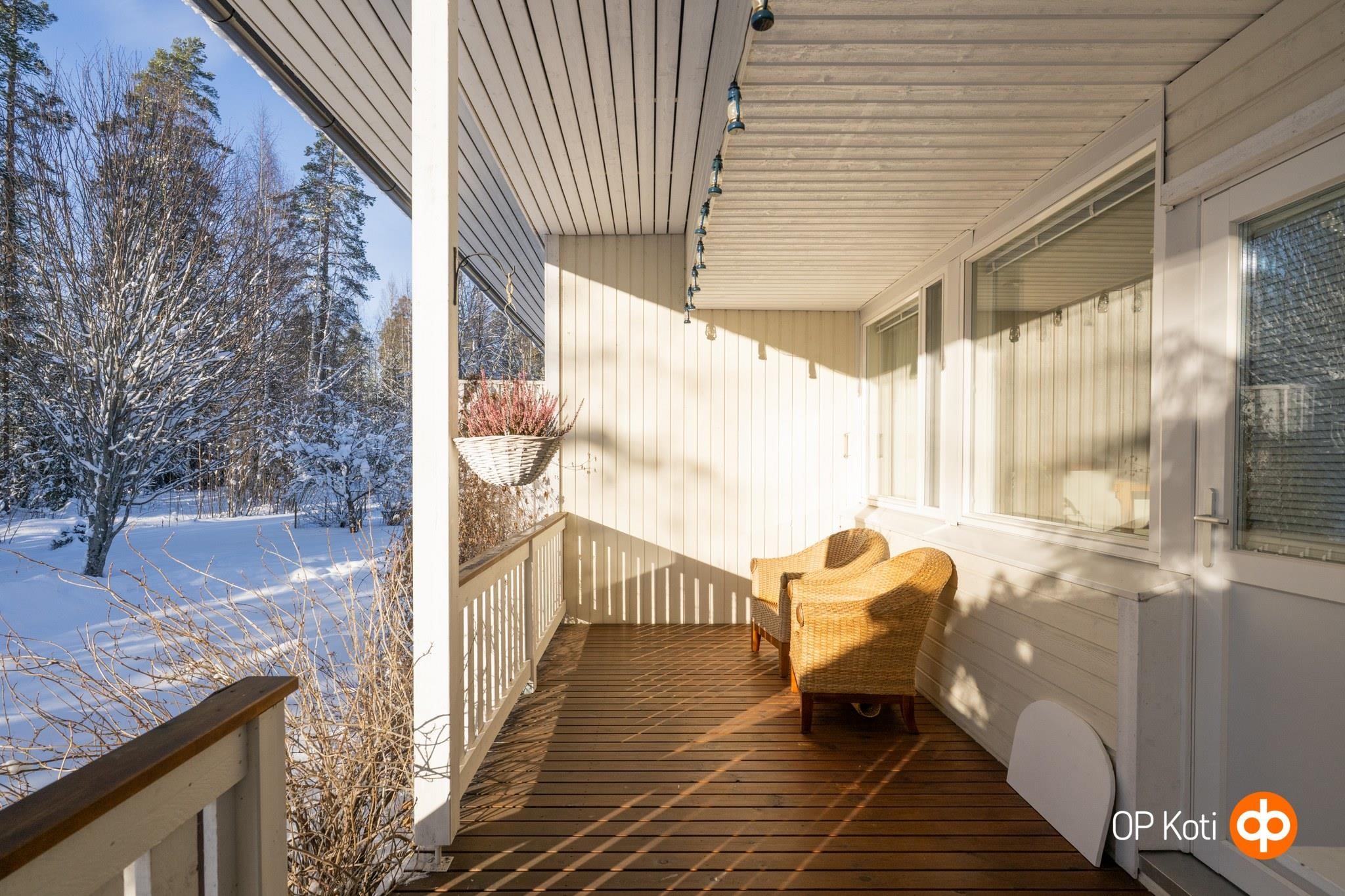 Tämä valoisa koti vapautuu uudelle omistajalle jo tarvittaessa tulevan kevään aikana. Länteen suuntaavat isot ikkunat tuovat valon tähän kotiin. Iso, osittain katettu terassialue on viihtyisä paikka nauttia lämpöisistä päivistä.