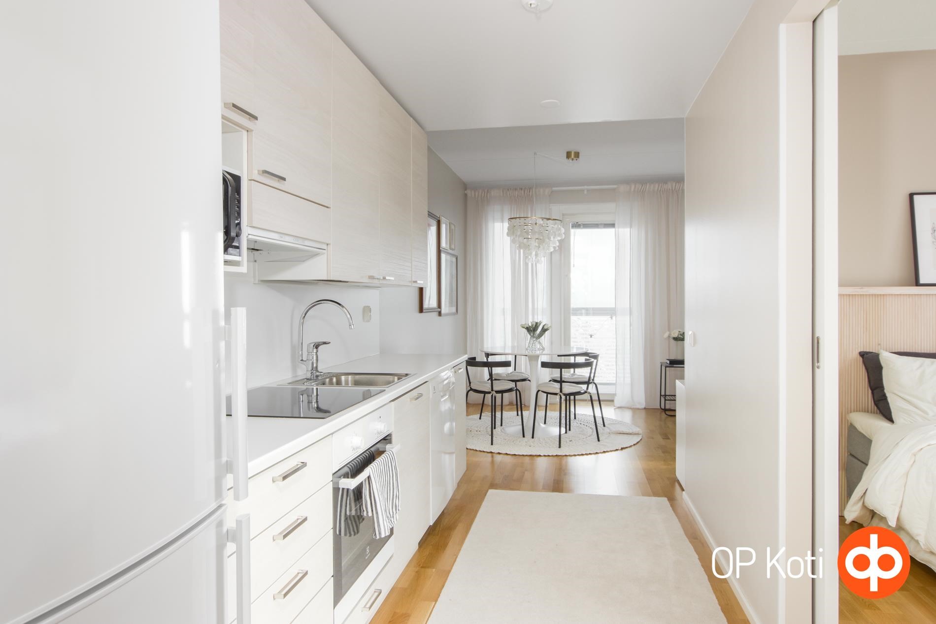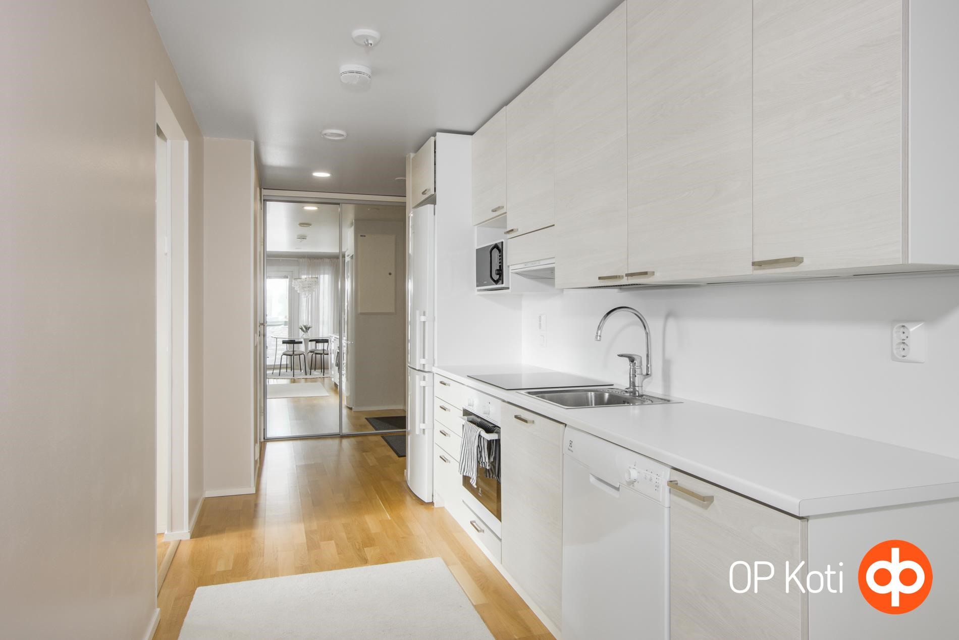 - Jääkaappipakastin, erillisuuni, induktioliesi, liesituuletin, astianpesukone, kaapistot, kiinteät valaisimet.