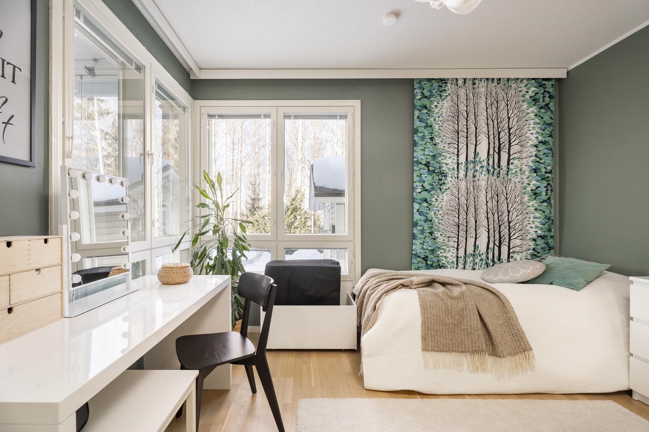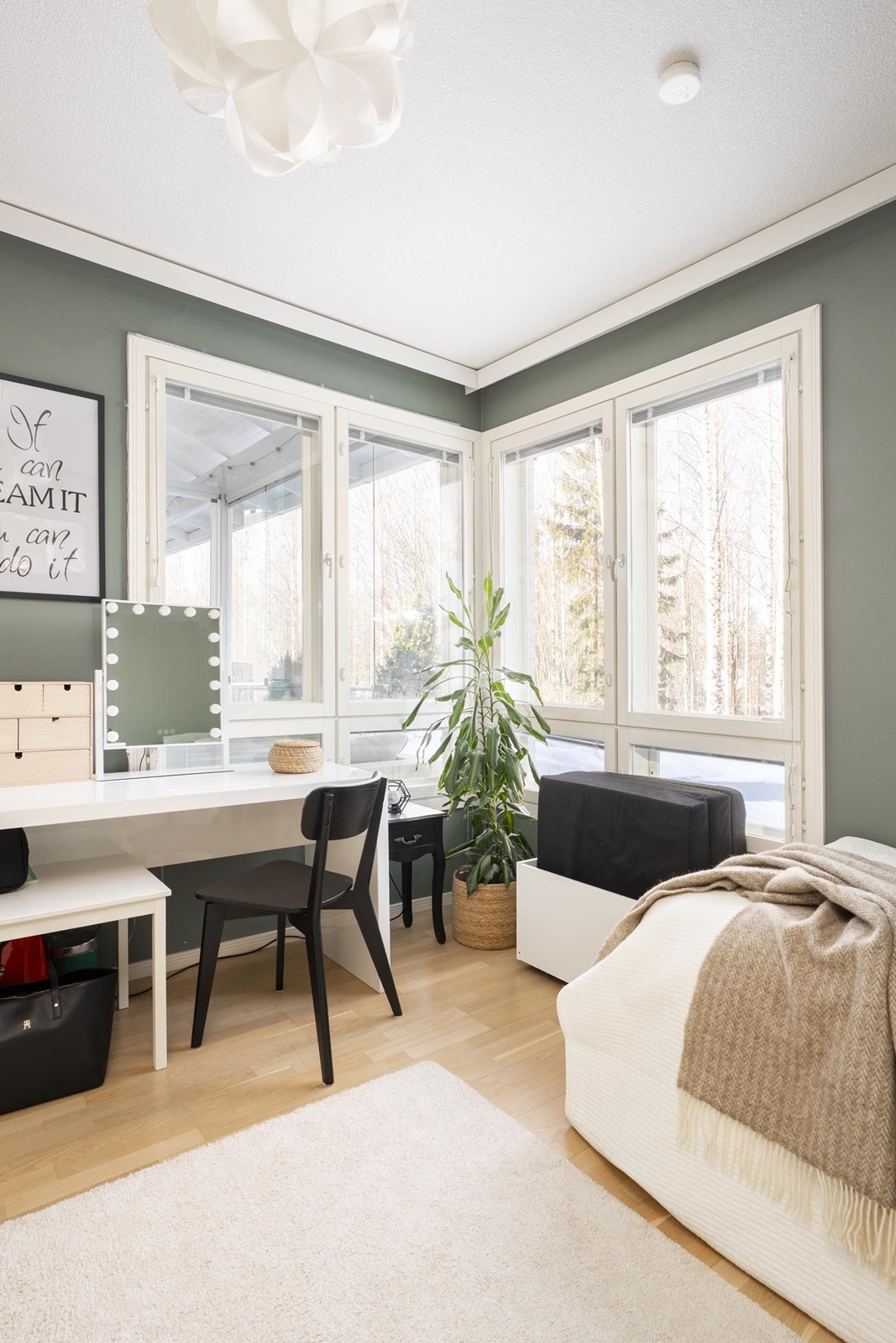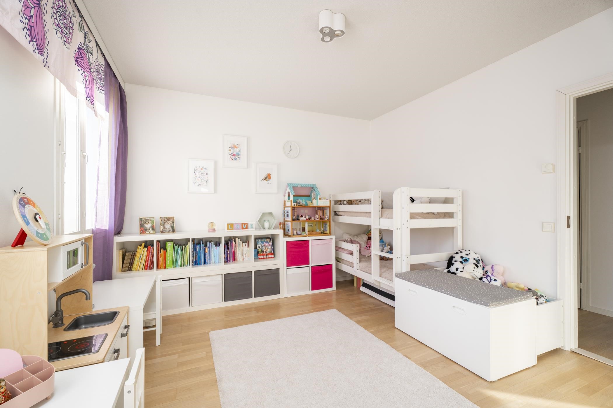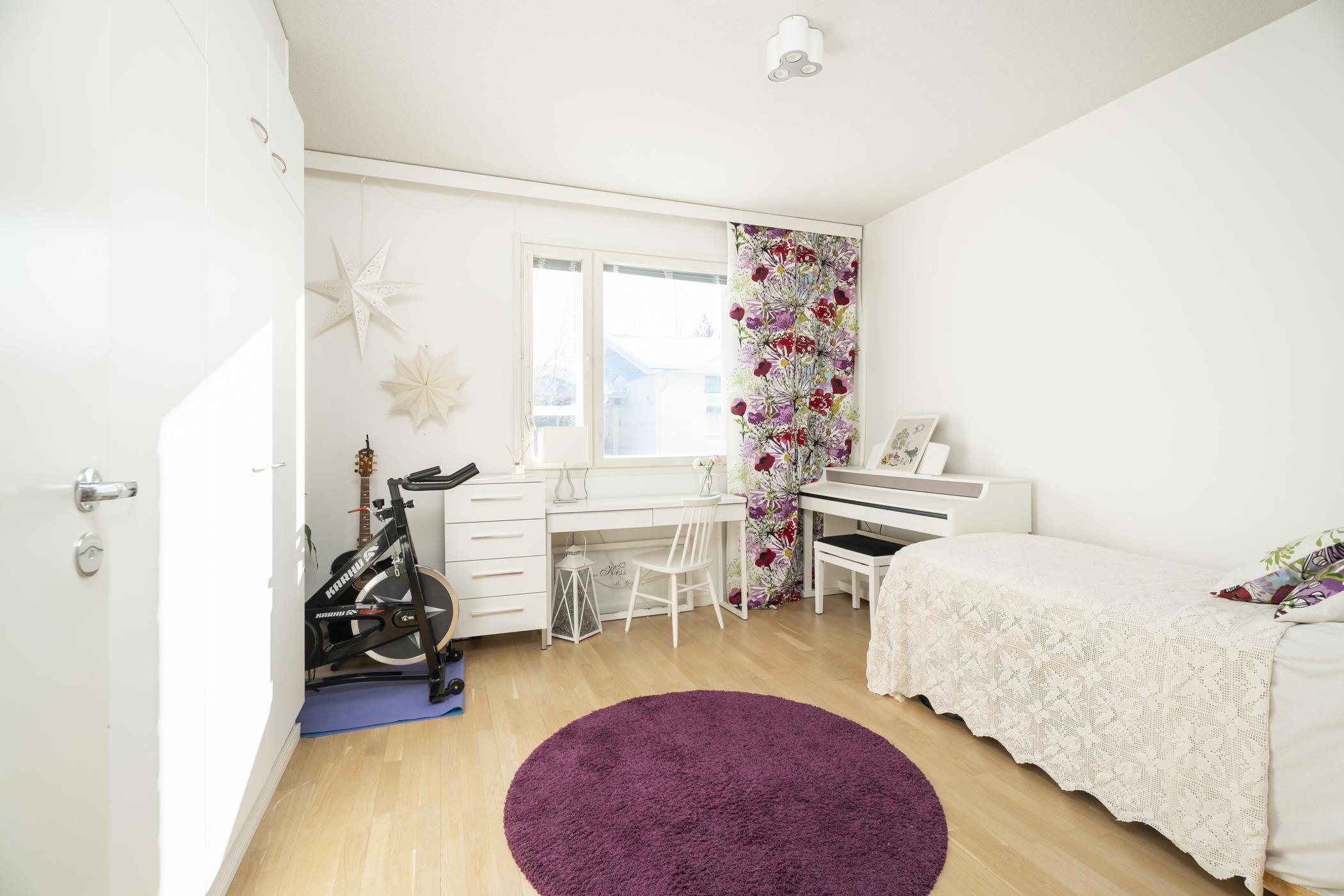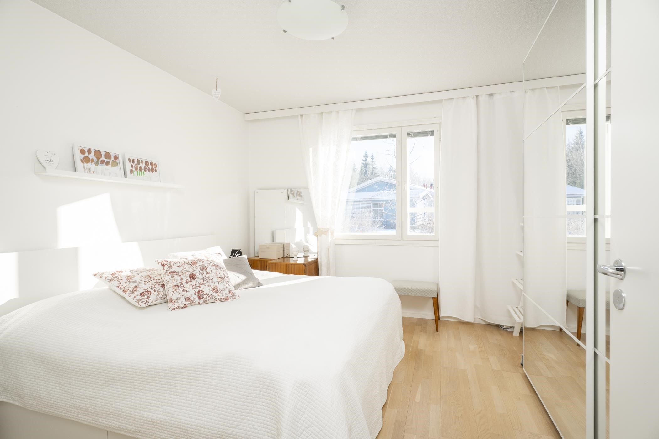 Kodissa on neljä tilavaa makuuhuonetta, ja tarvittaessa yhden huoneen voi jakaa kahdeksi erilliseksi tilaksi. Säilytystilaa on runsaasti: vaatehuone, kaapistot, lämmin häkkivarasto sekä puolilämmin varasto asunnon yhteydessä.