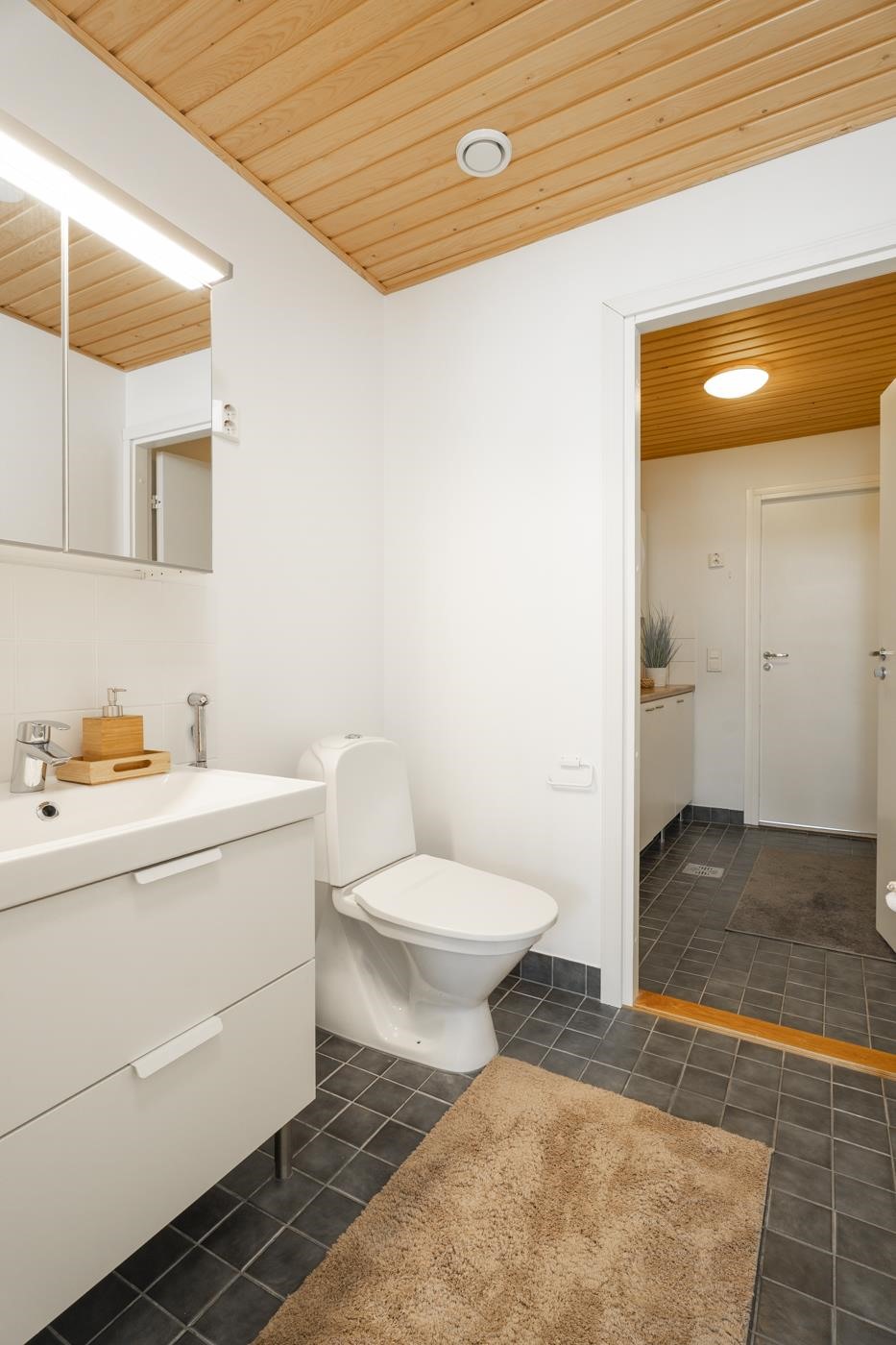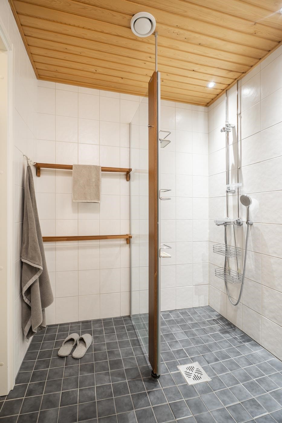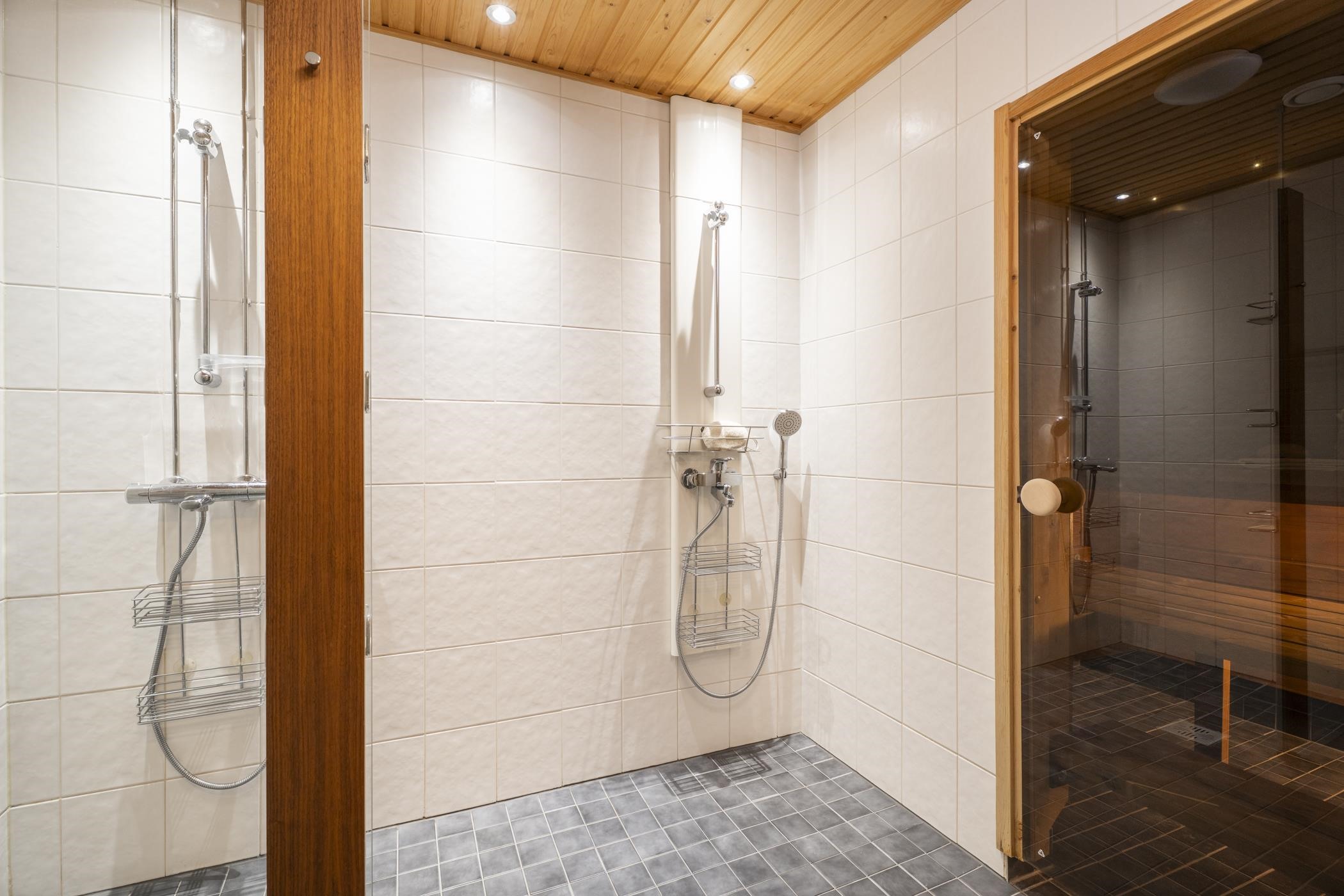- Saunassa Harvia Heti-valmis kiuas Kylpyhuoneessa 2x suihku (toinen sekoittaja vaihdettu 2025), suihkuseinä WC: peili wc, kaapistot WC: peilikaappi, kaapit Kodinhoitohuoneessa pesukoneliitäntä, kaapisot, pesuallas