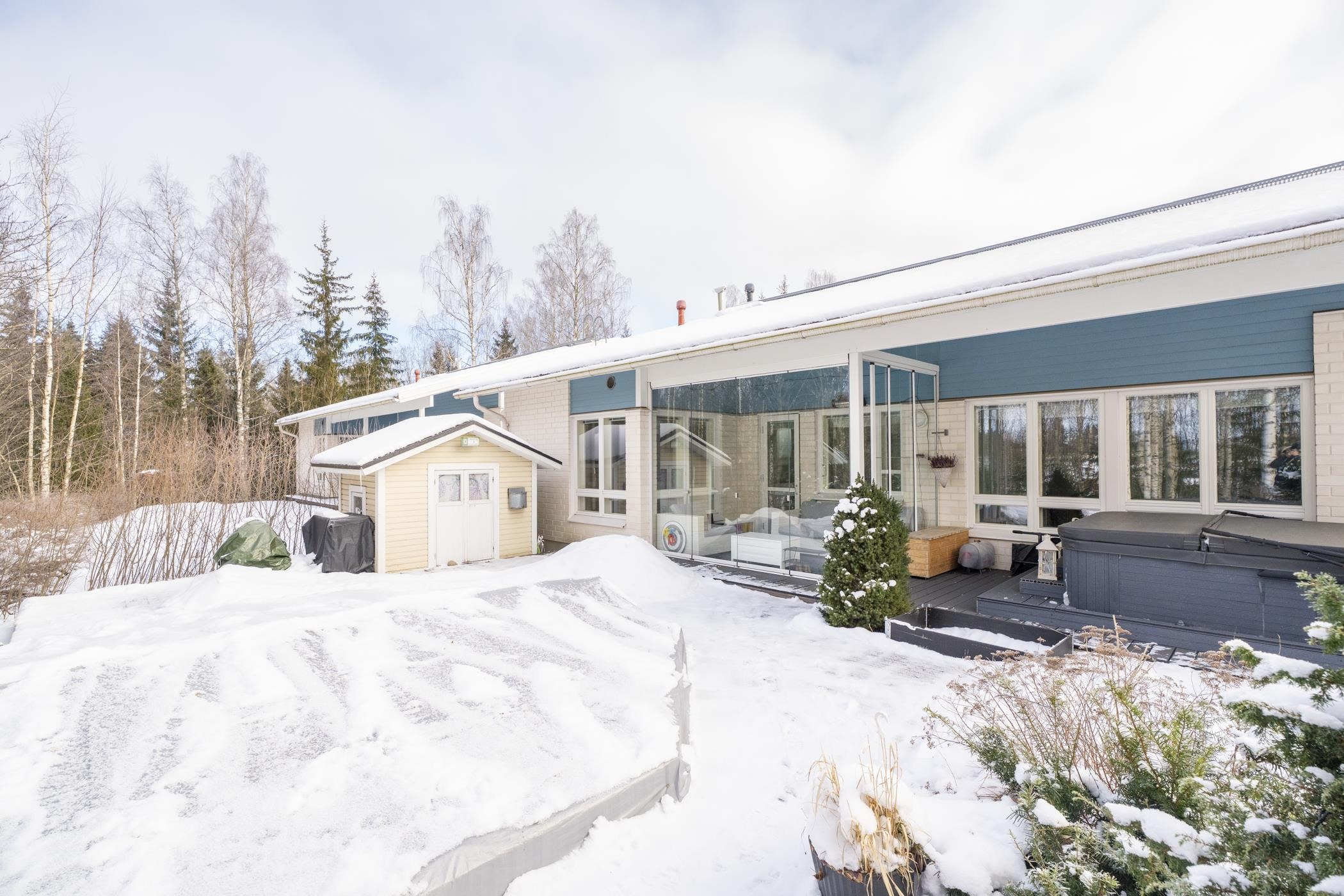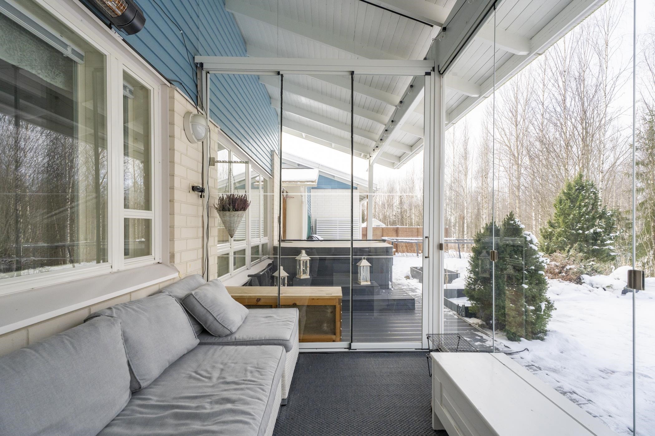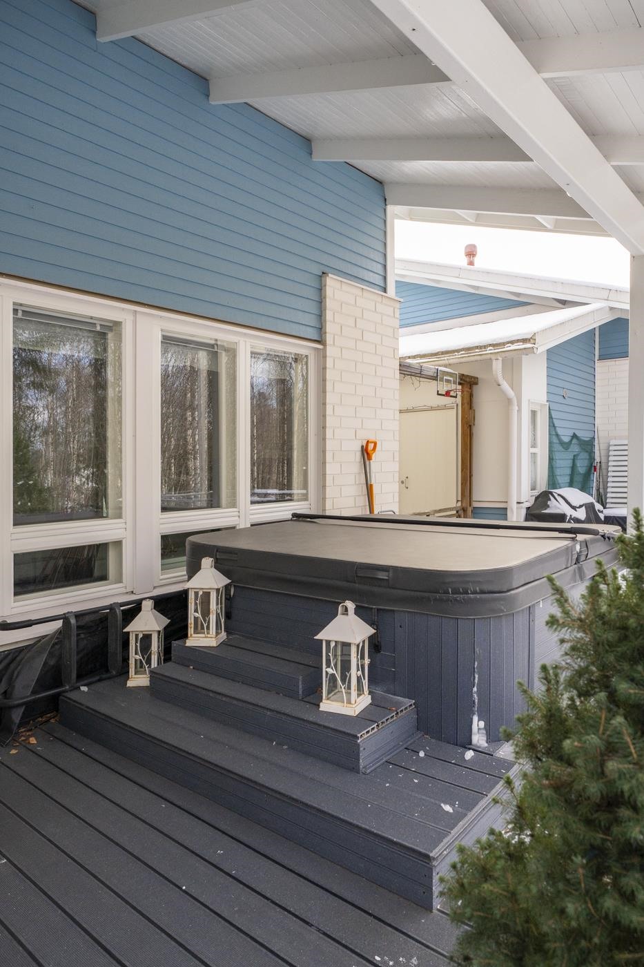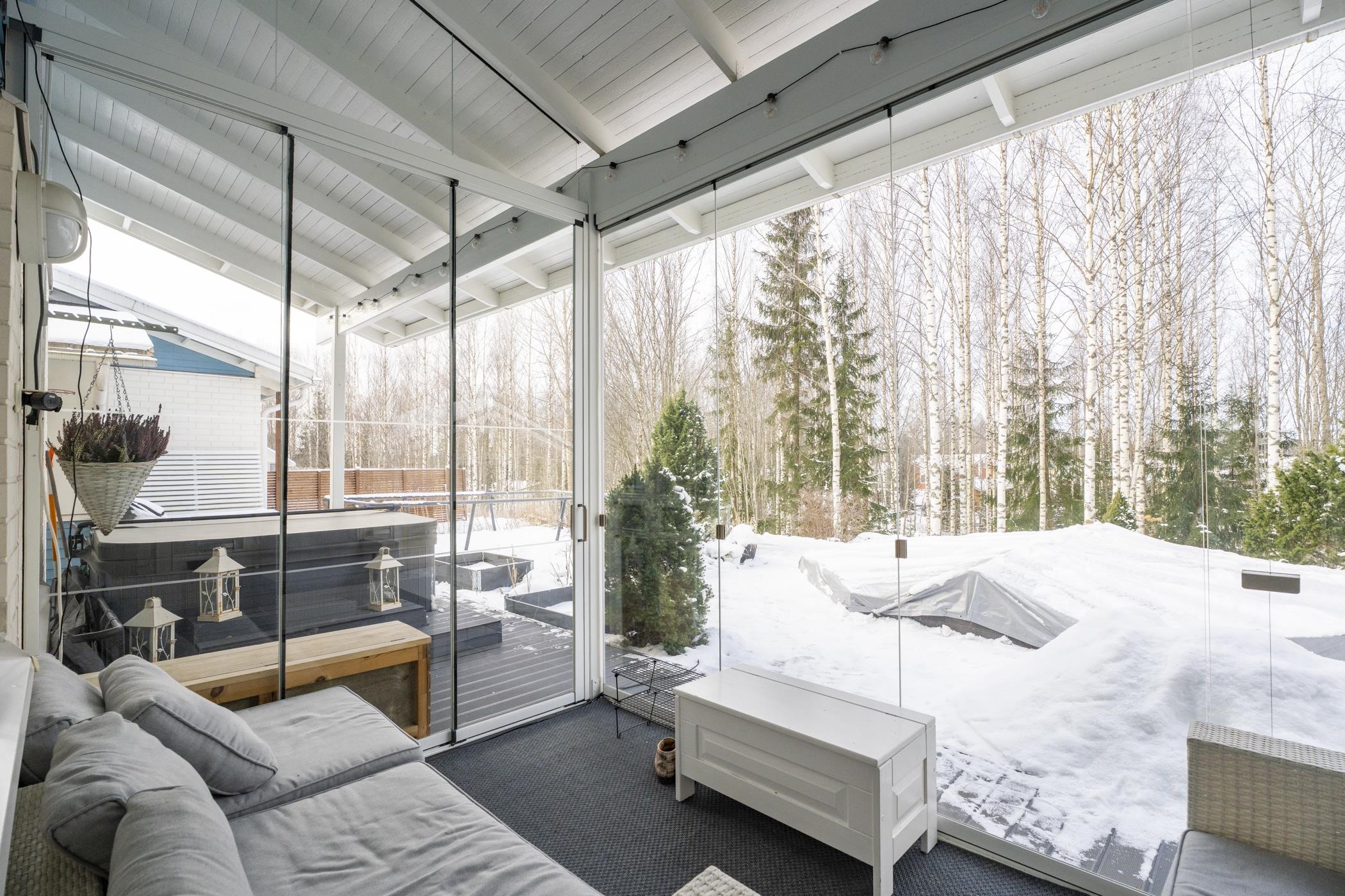 Ajattomat materiaalit sekä koko asunnon kattava vesikiertoinen lattialämmitys tuovat asumiseen mukavuutta ympäri vuoden. Tämän kodin ainutlaatuiset lisäarvot löytyvät omalta takapihalta: uima-allas, ympärivuotisessa käytössä oleva poreallas sekä oma puttausviheriö golfin harrastajalle. Tässä pihapiirissä viihtyy koko perhe!