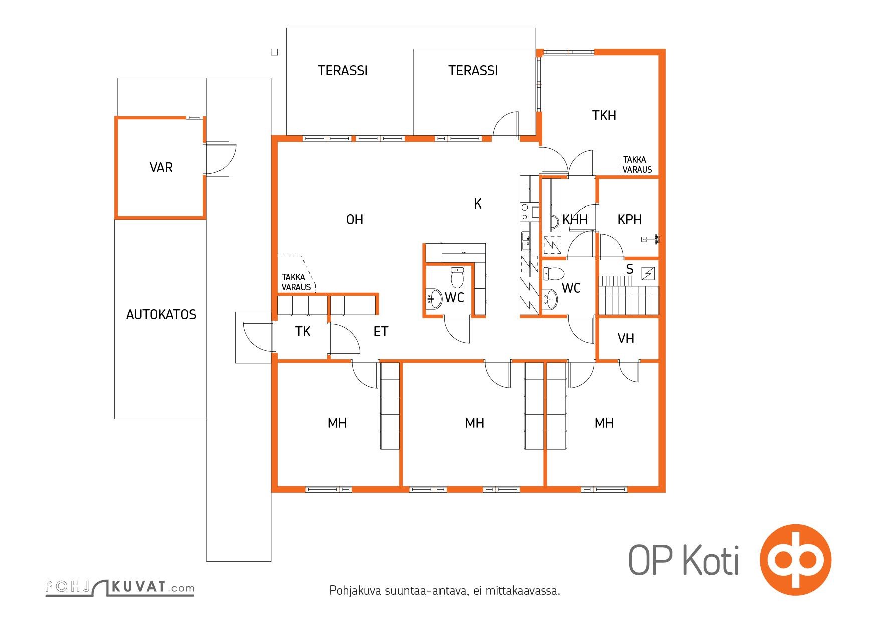 - 5h, k, s, 2x erill.wc, khh, vh, lasitettu terassi, puolilämmin varasto, autokatos