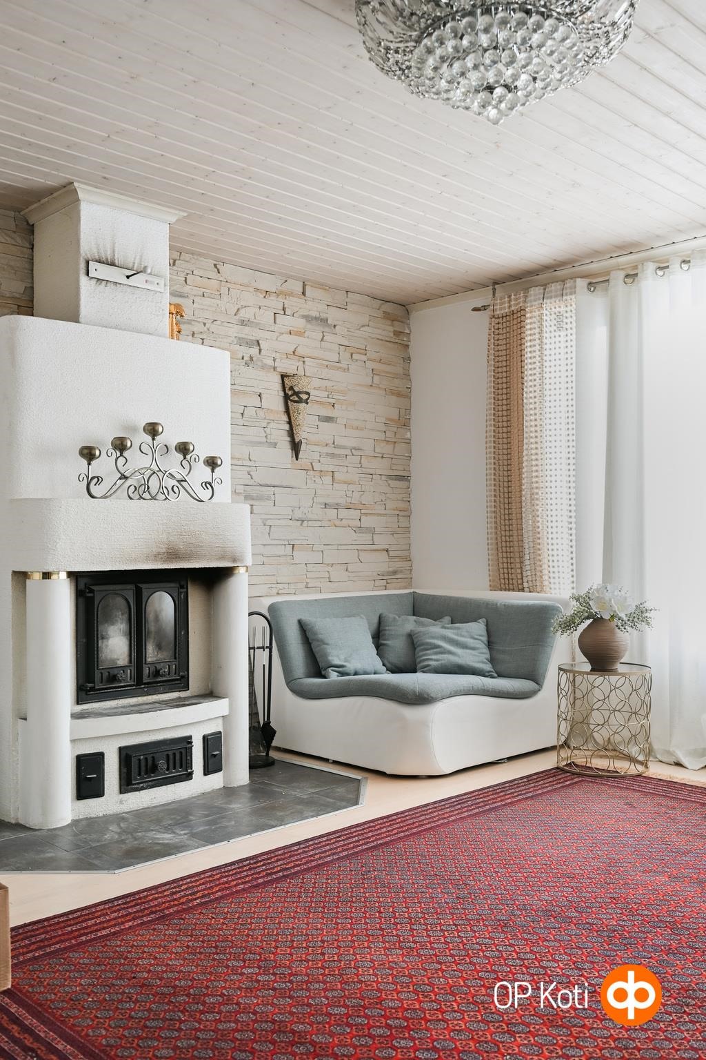 - Sähkö. Lisälämmönlähteenä varaava takka olohuoneessa.